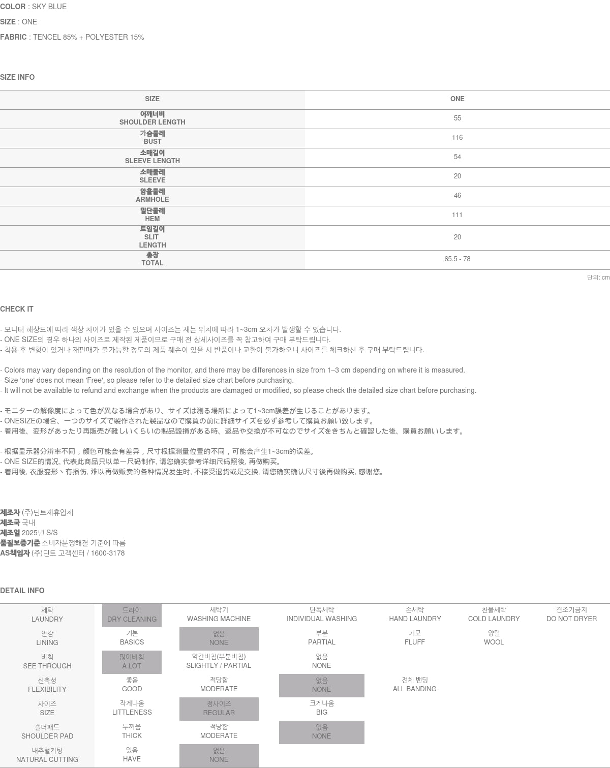Clothing from DINT Co., Ltd. may become damaged or deformed if machine washed or tumble dried. We strongly recommend following the care instructions provided below.