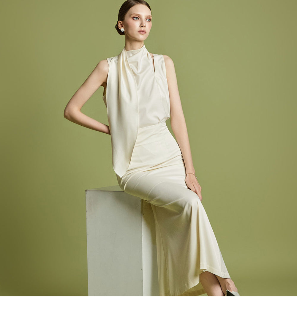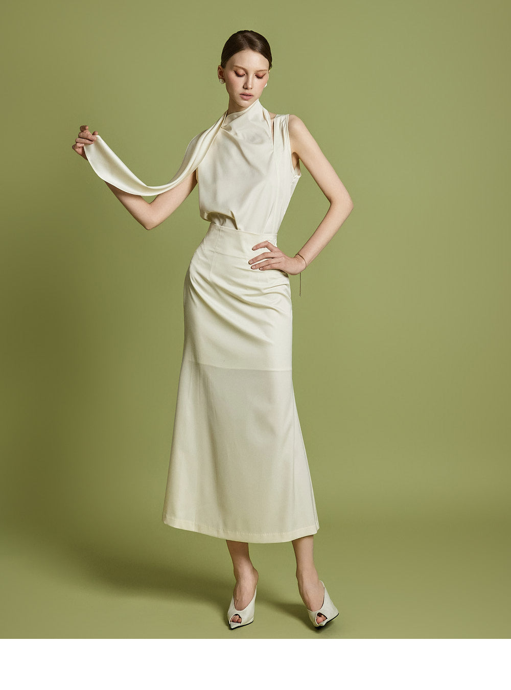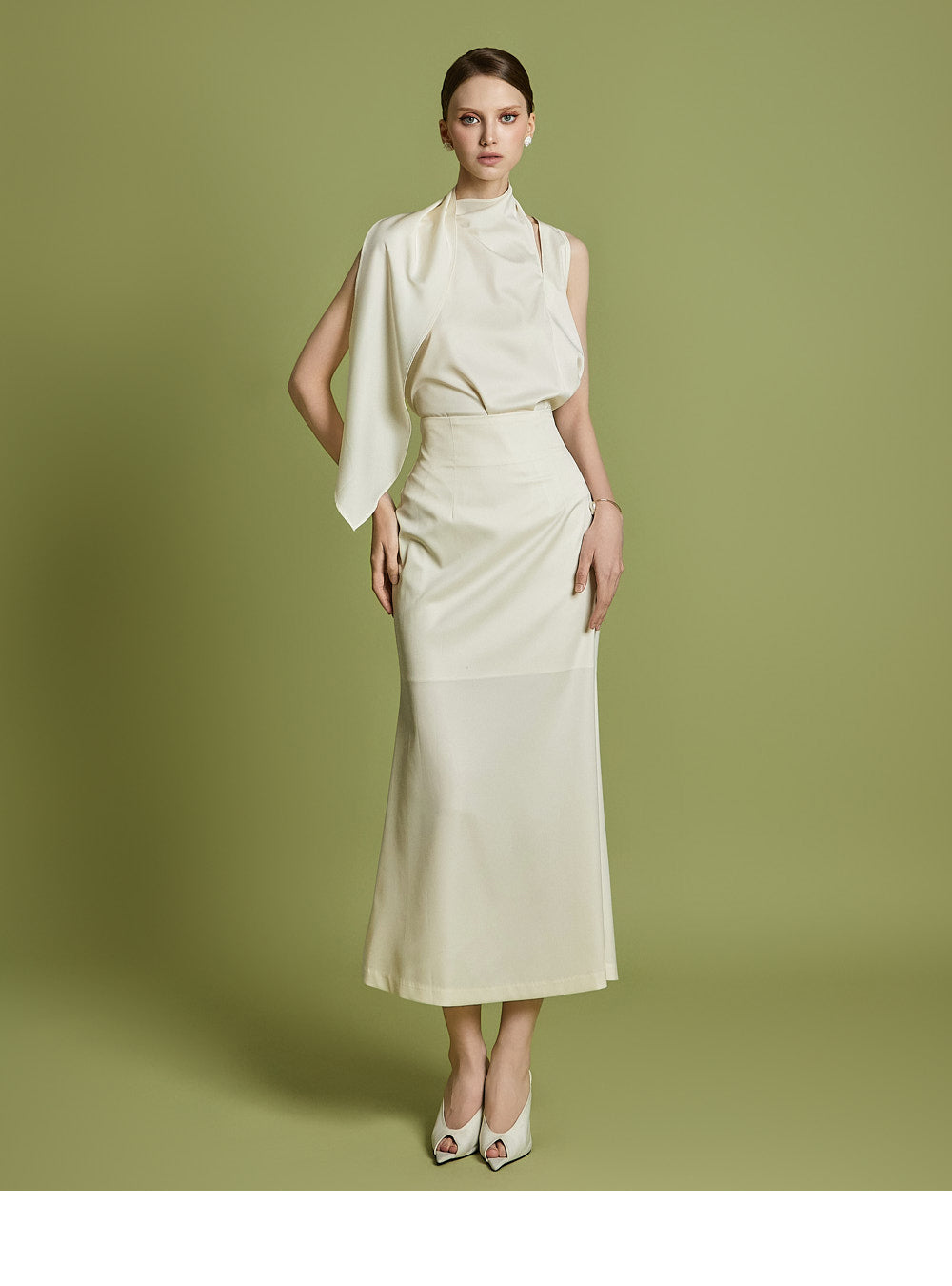 The slim-fit silhouette gently hugs the body, highlighting feminine curves.