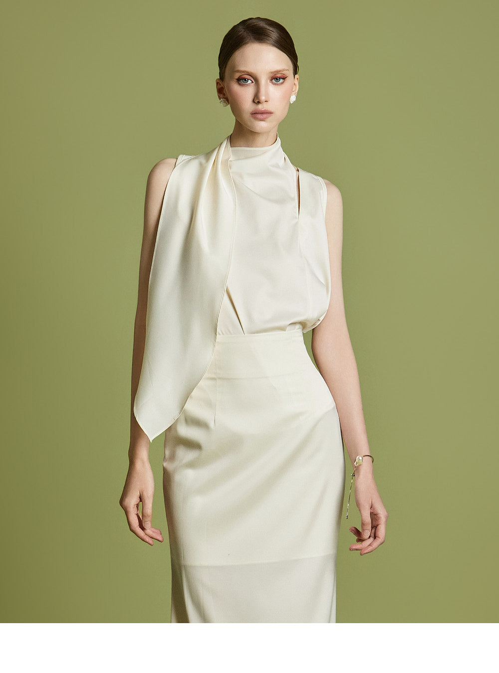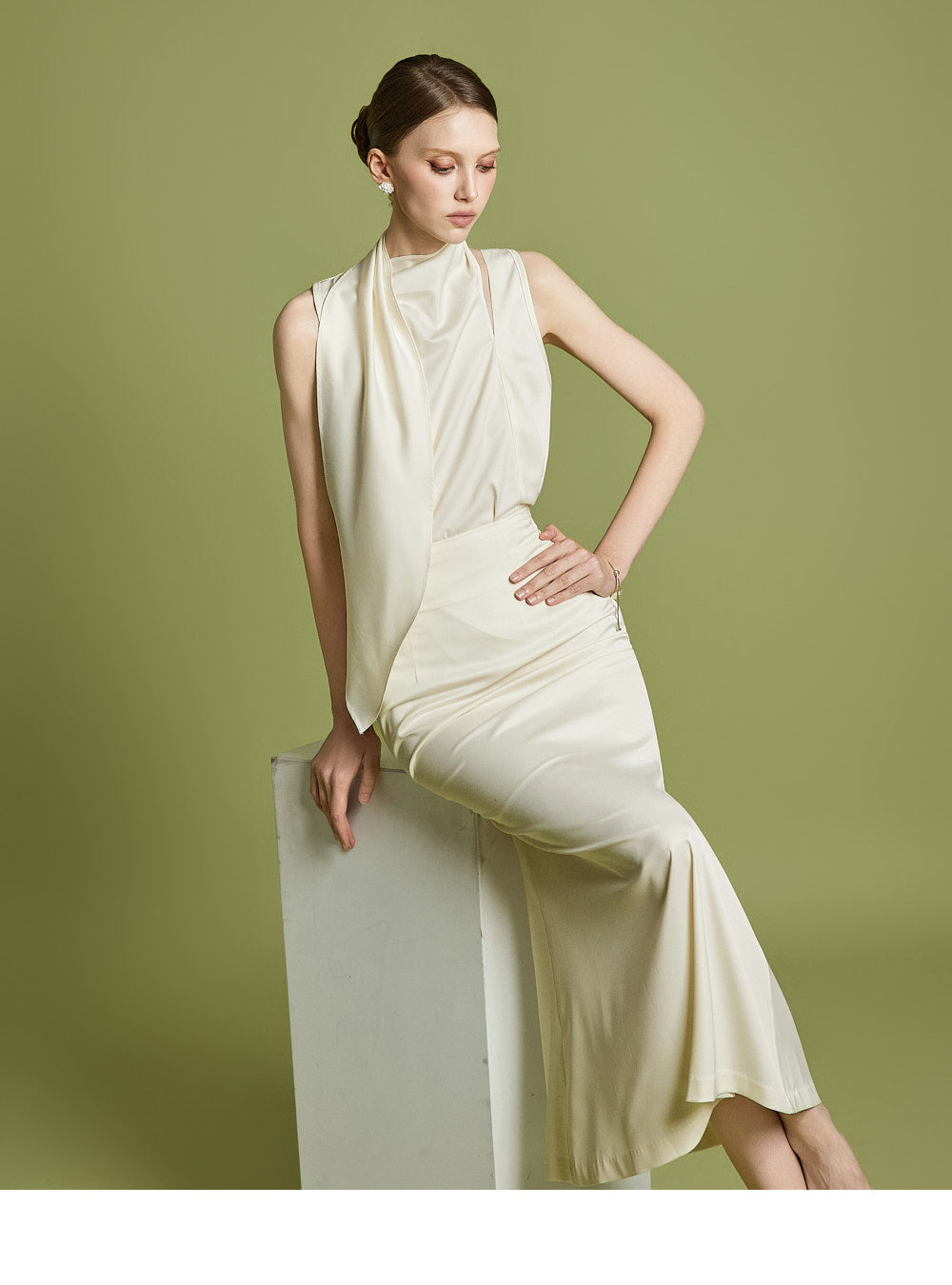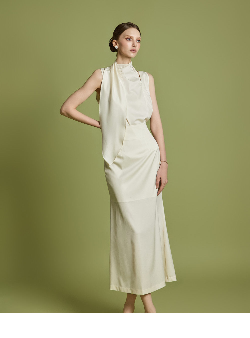 The slim-fit silhouette gently hugs the body, highlighting feminine curves.