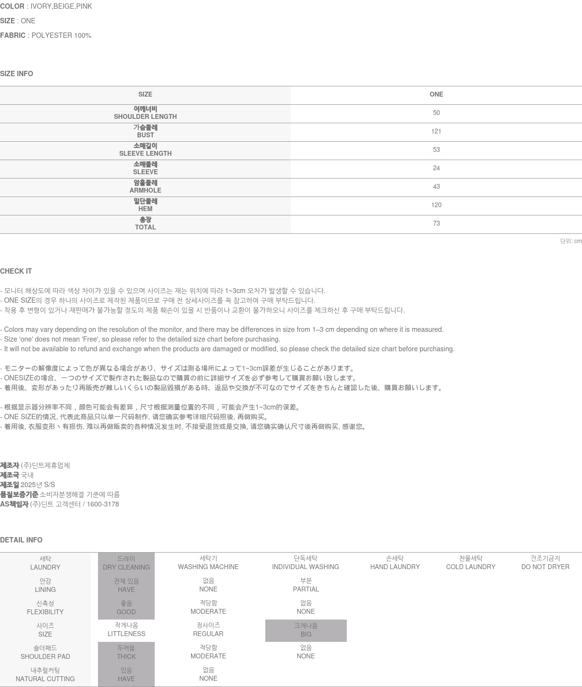 Clothing from DINT Co., Ltd. may become damaged or deformed if machine washed or tumble dried. We strongly recommend following the care instructions provided below.