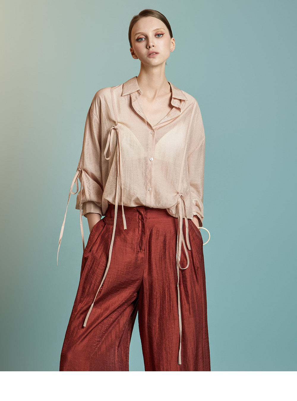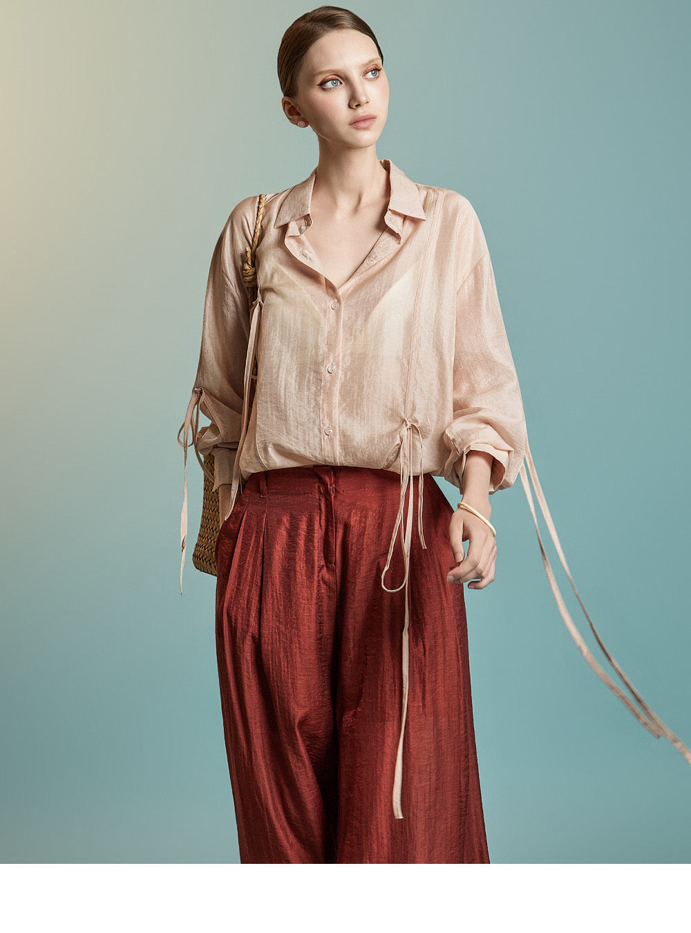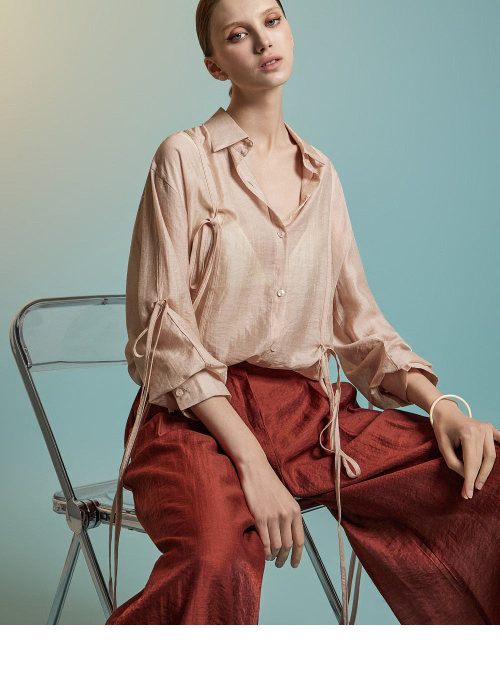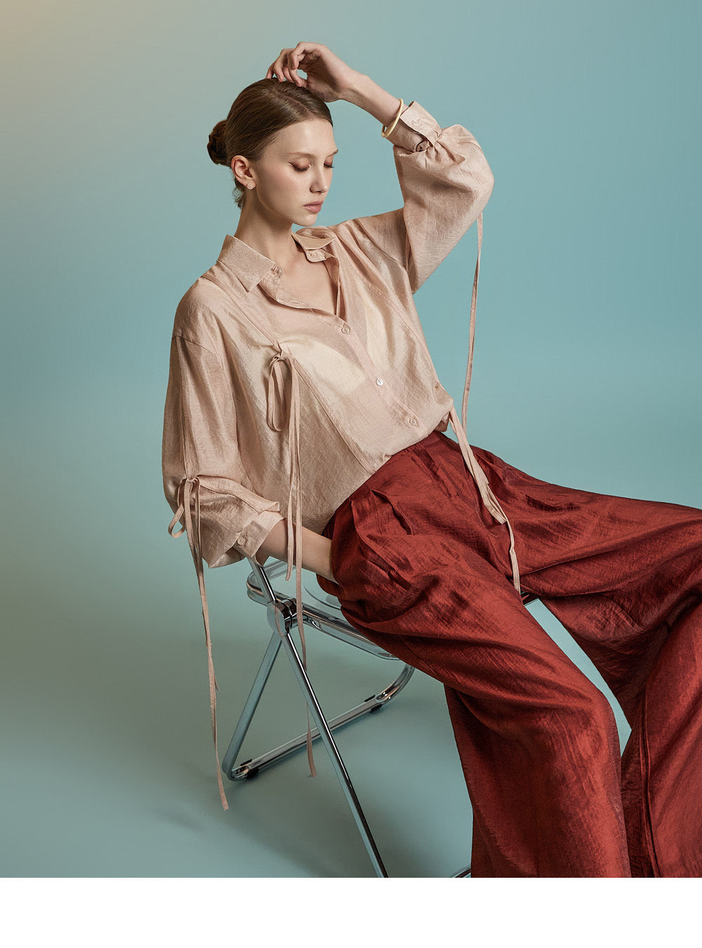 This is a stylish blouse with a refined mood.