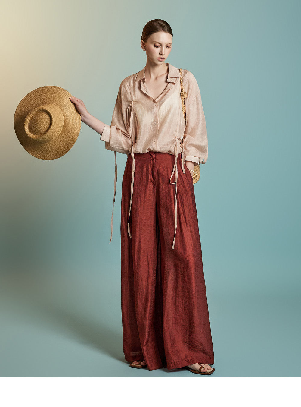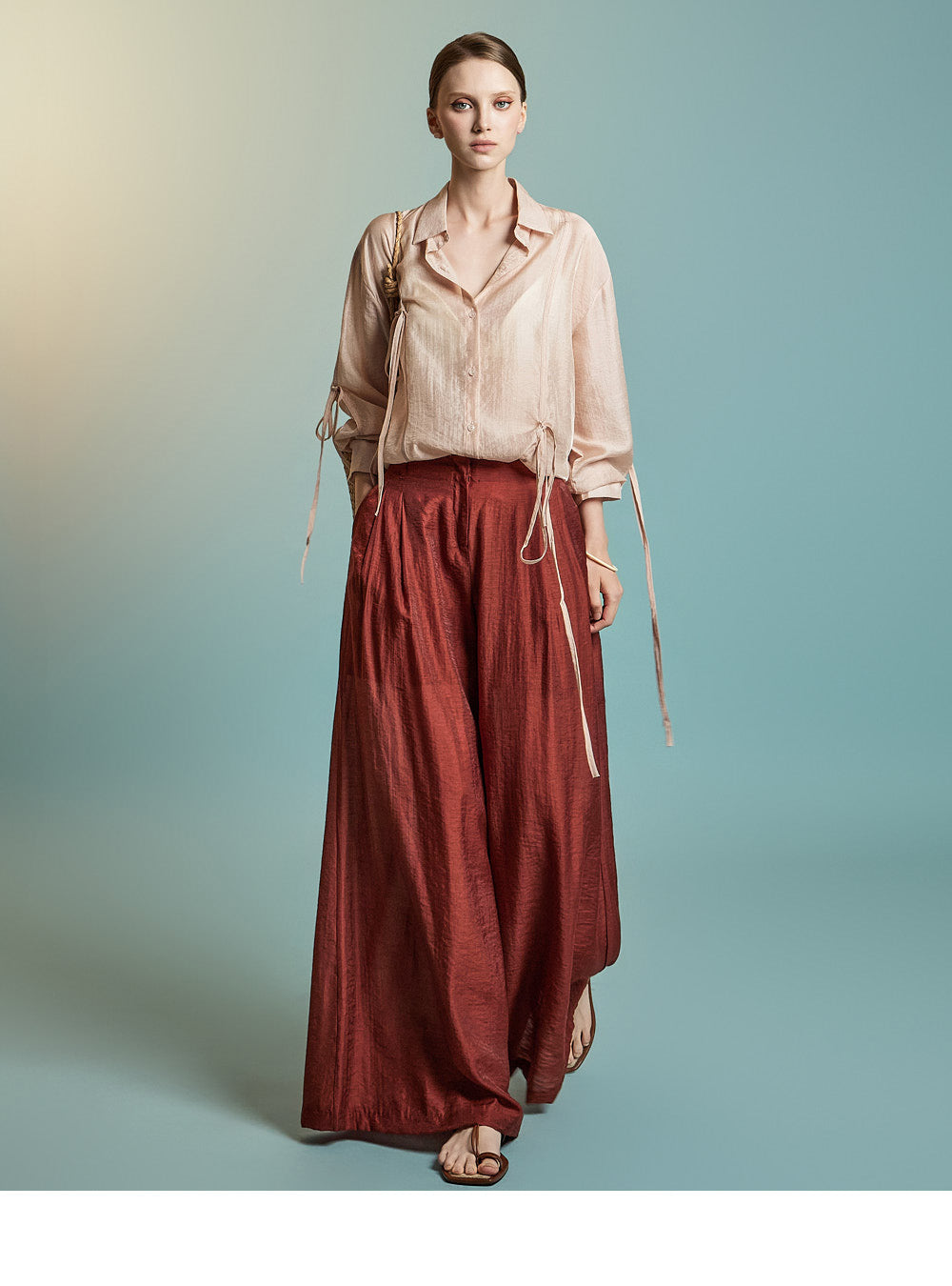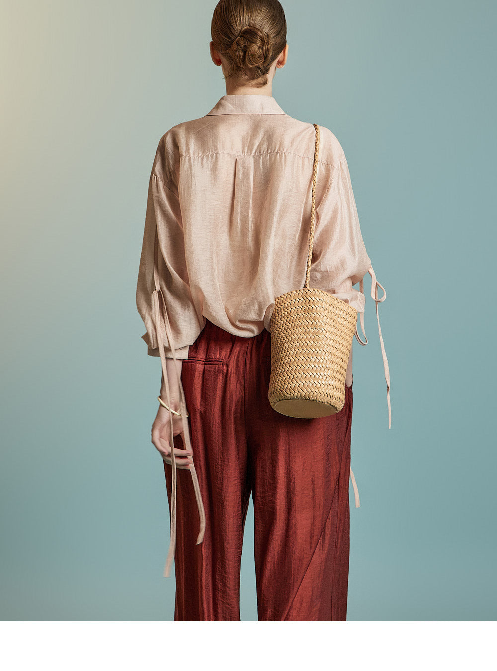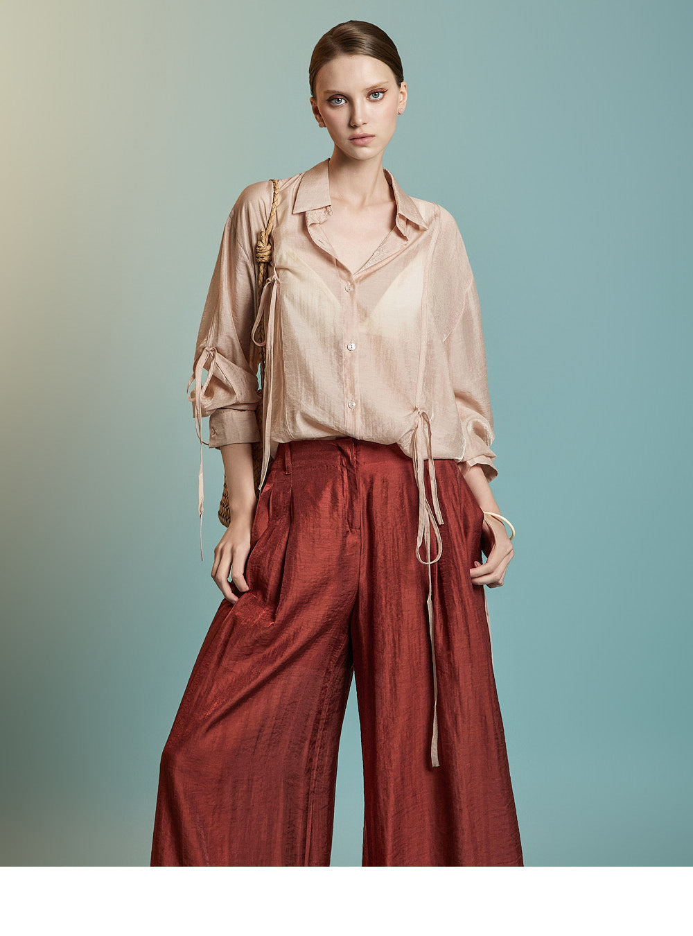 This is a stylish blouse with a refined mood.