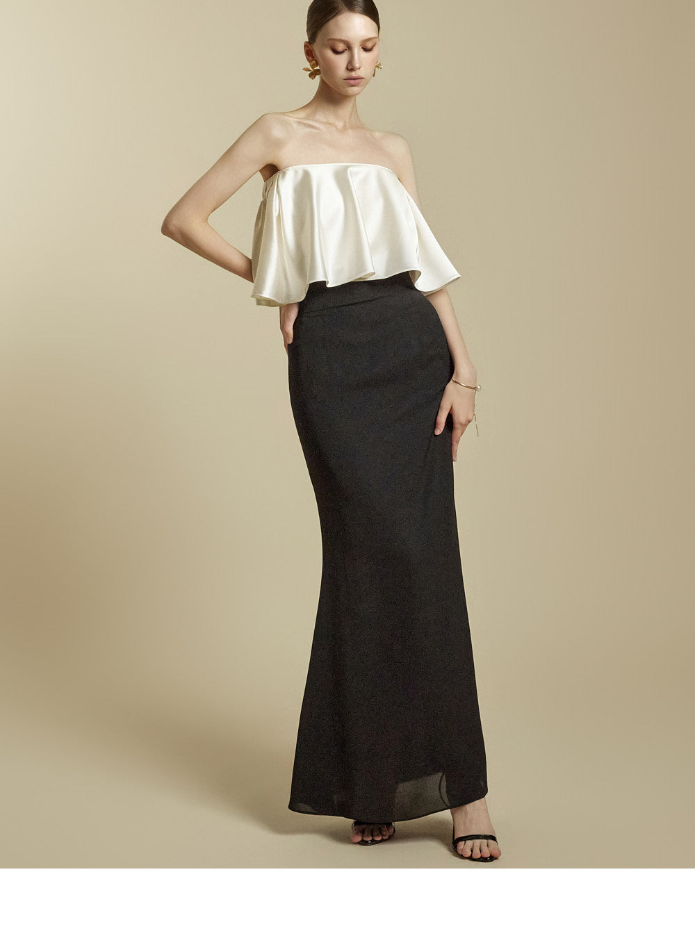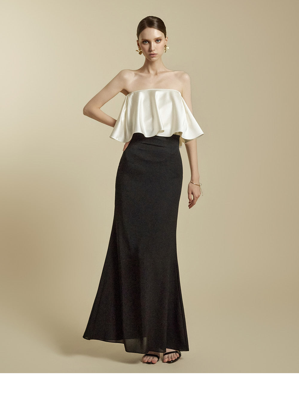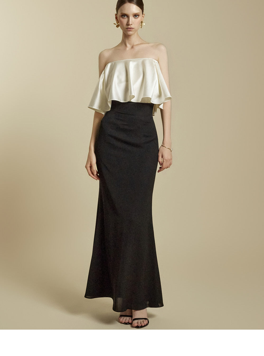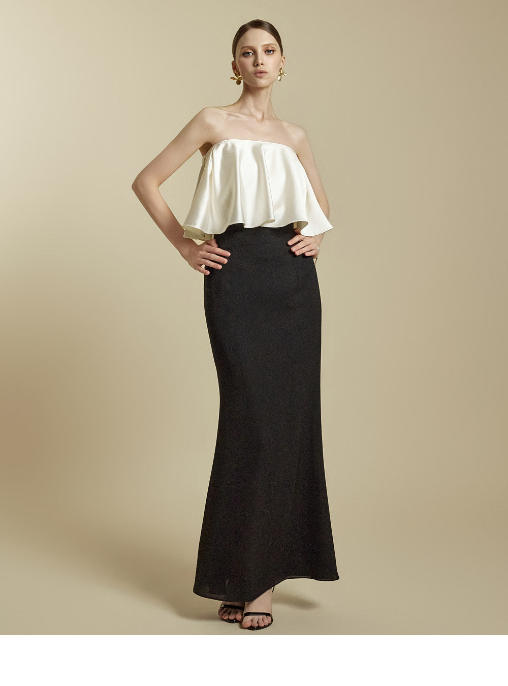 The double-layered ruffle fabric creates a lively, voluminous shape,