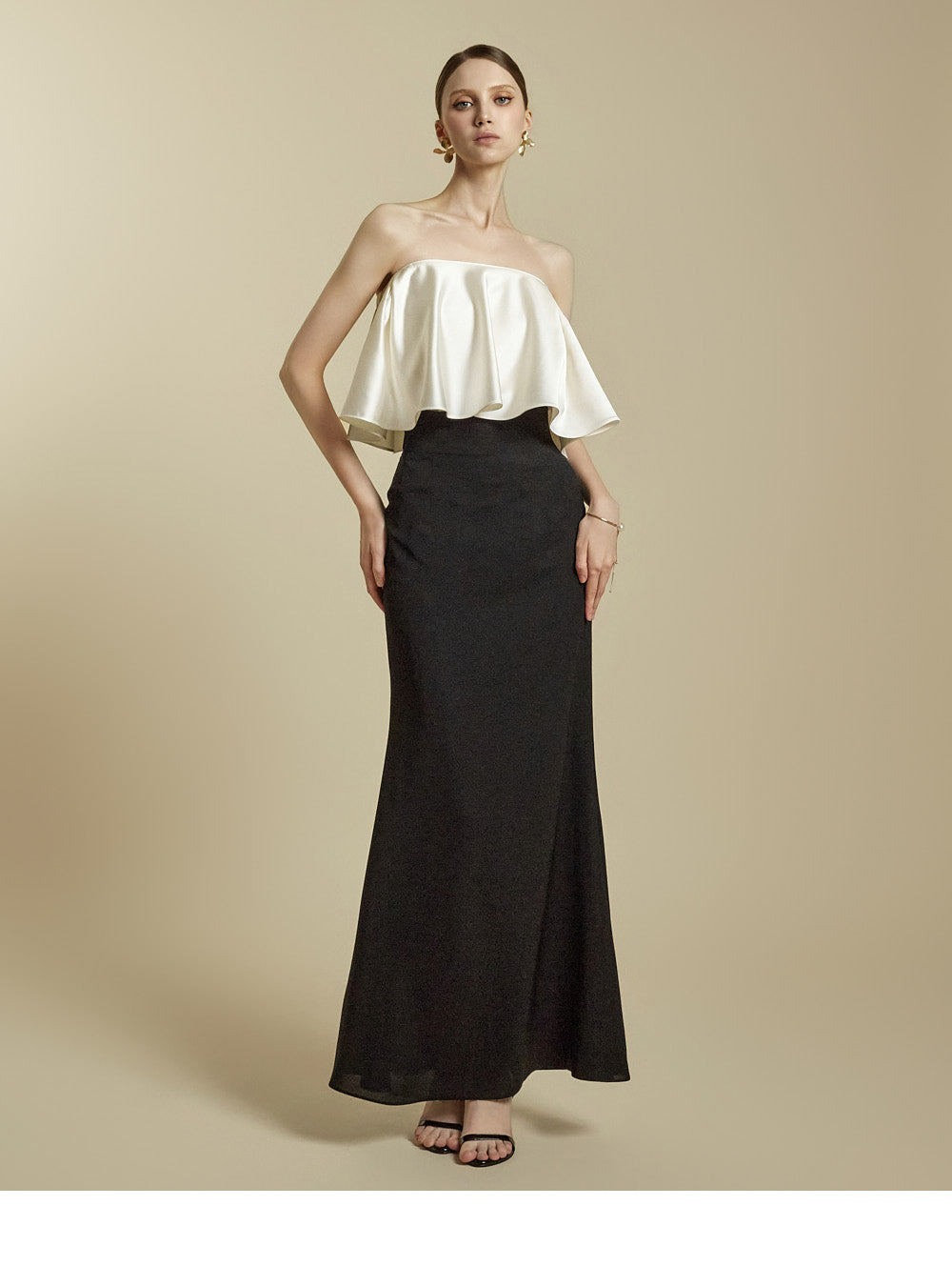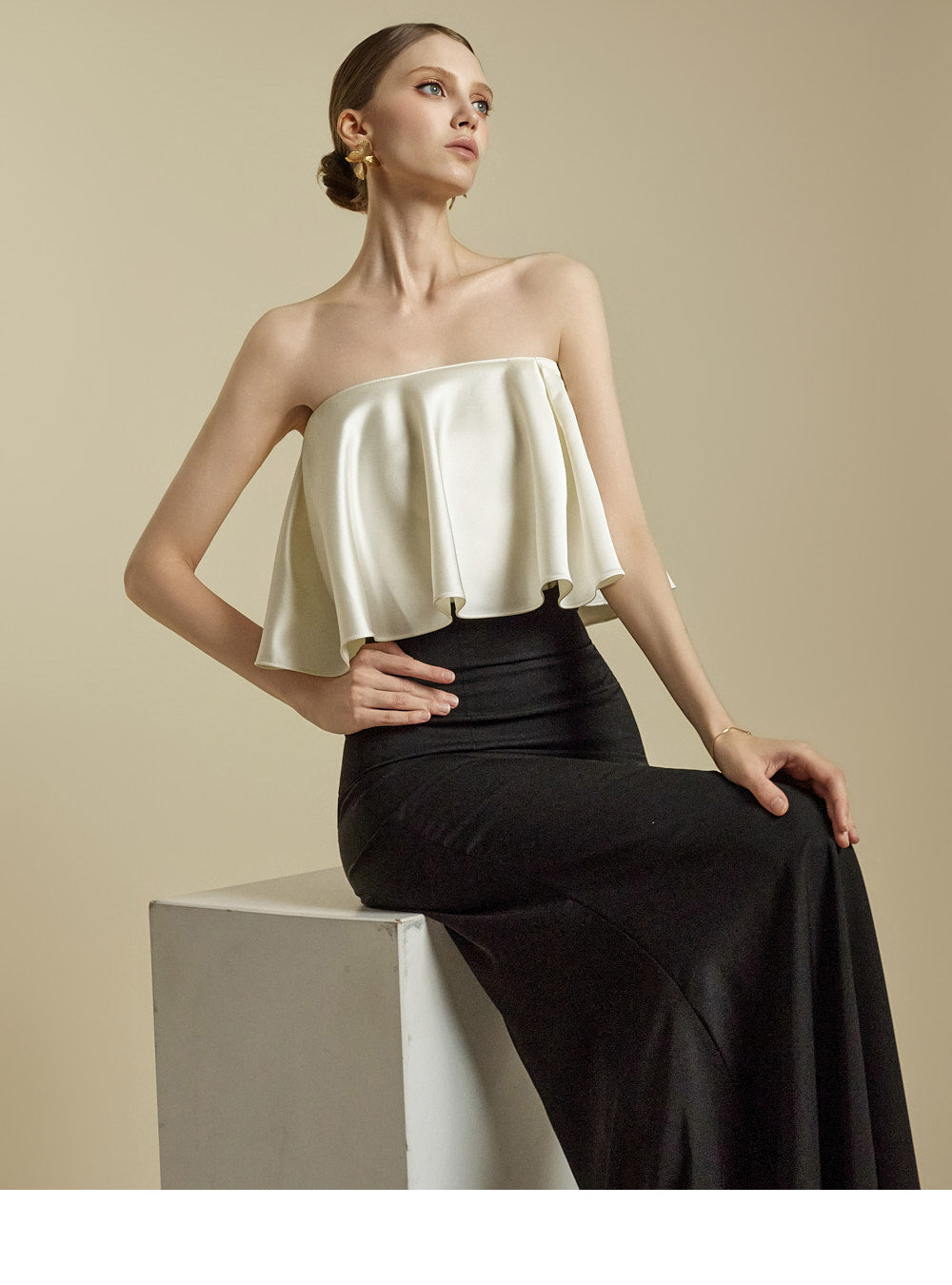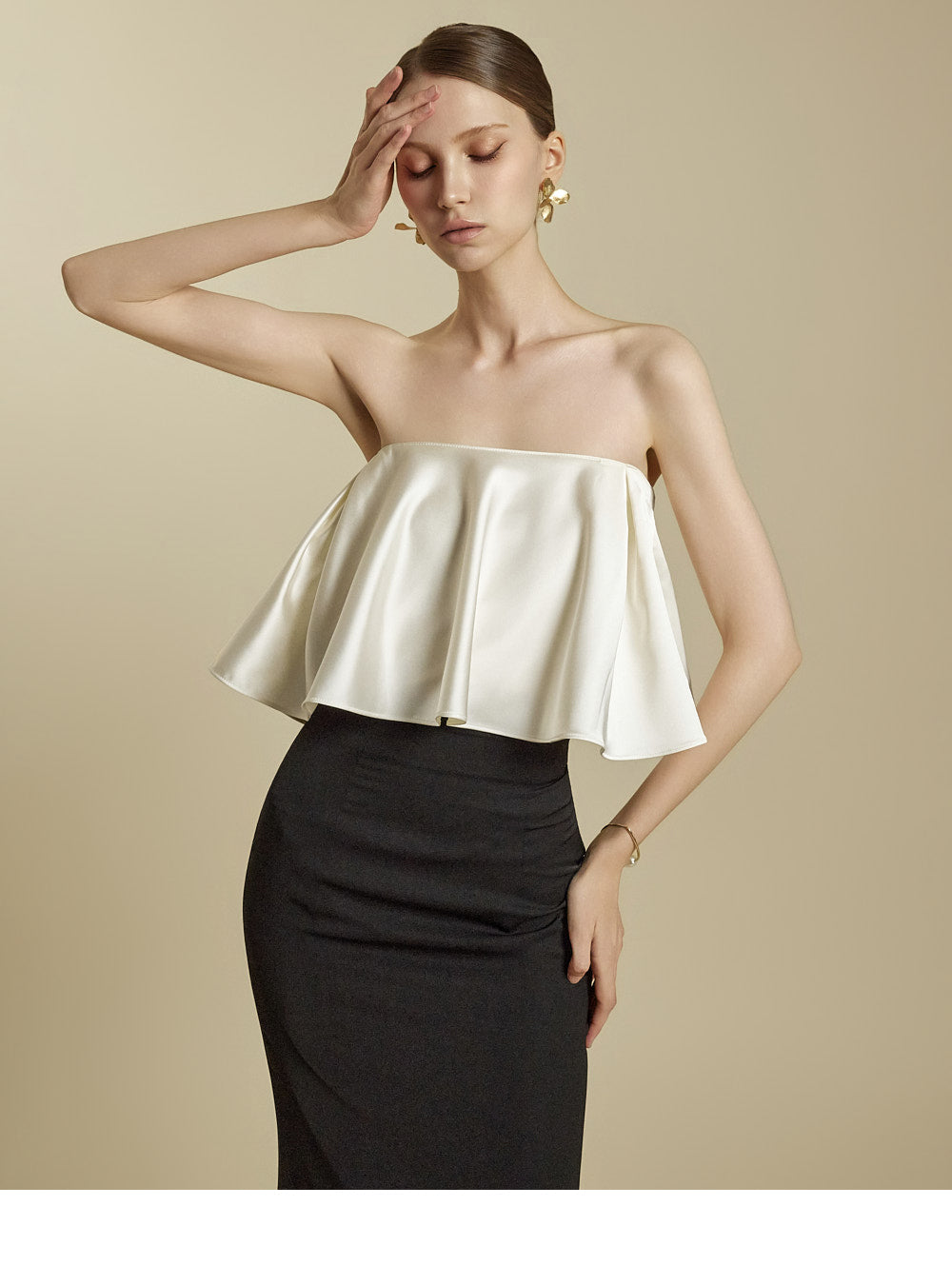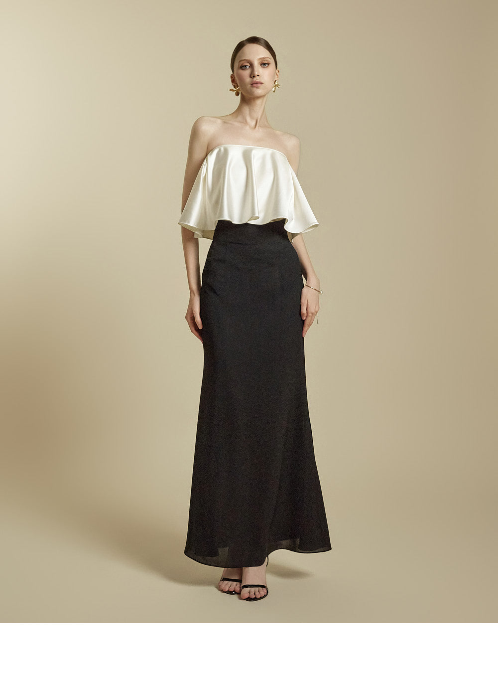 The double-layered ruffle fabric creates a lively, voluminous shape,