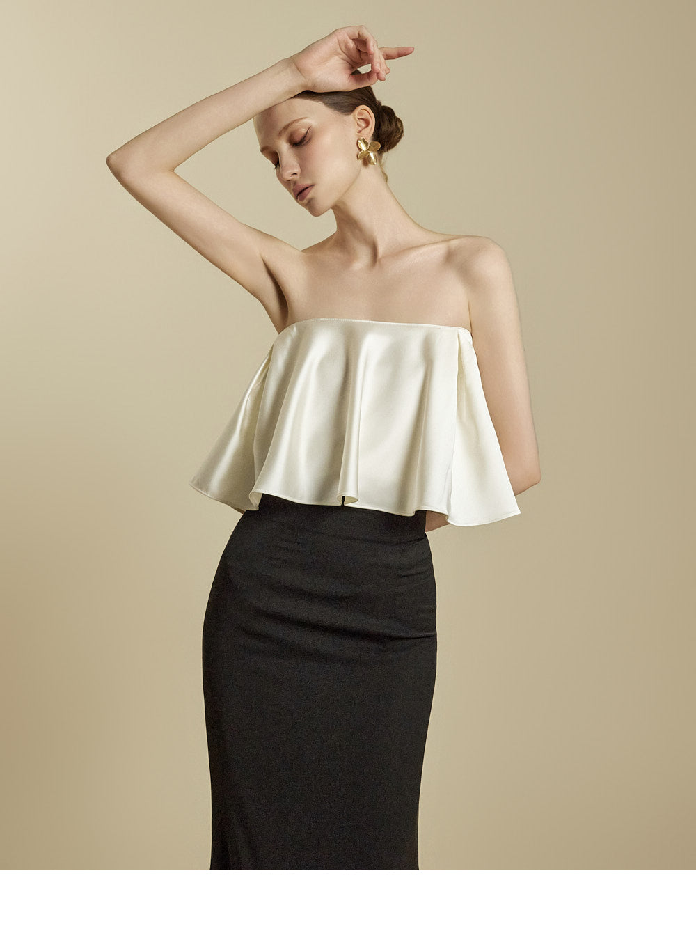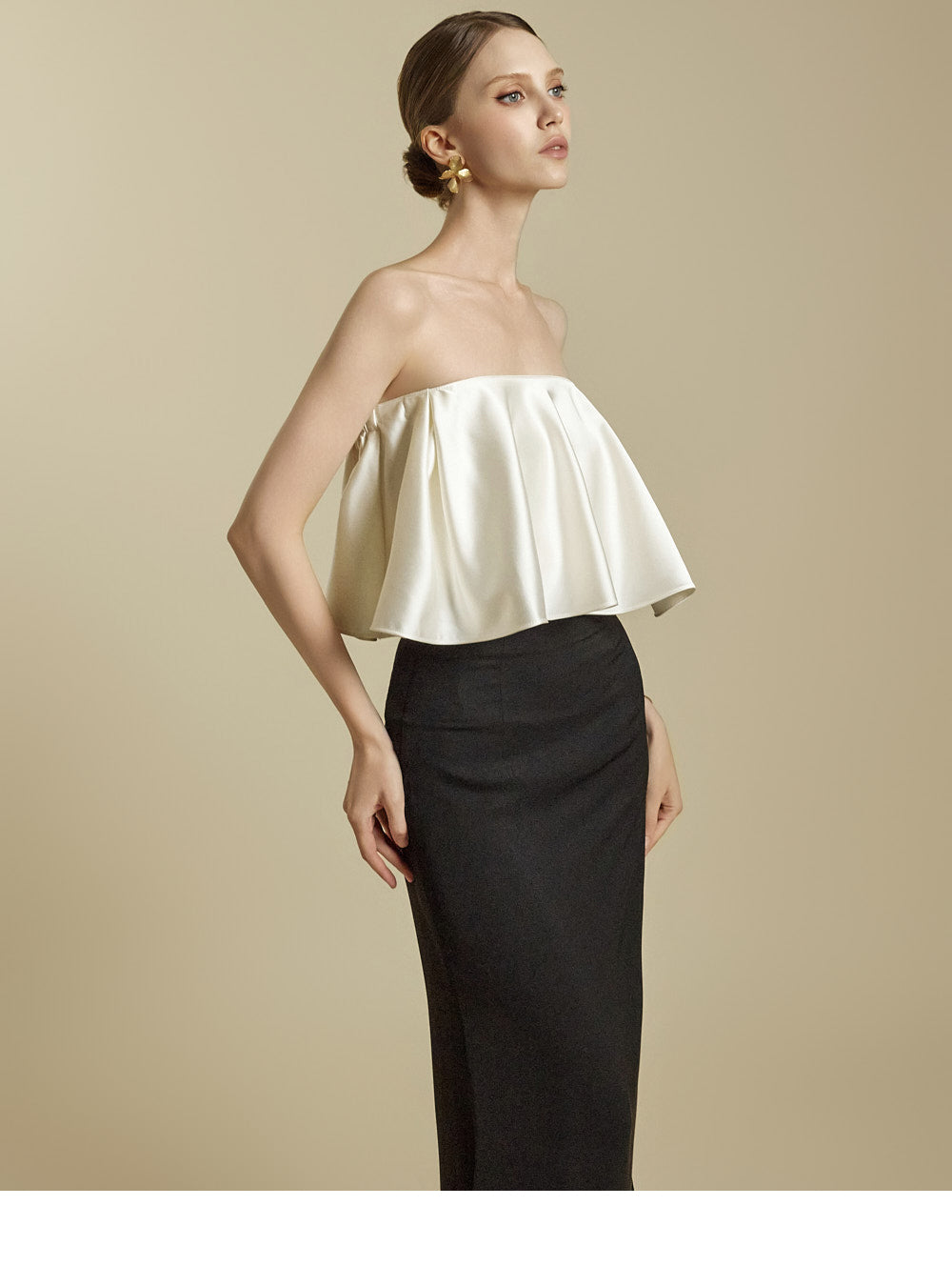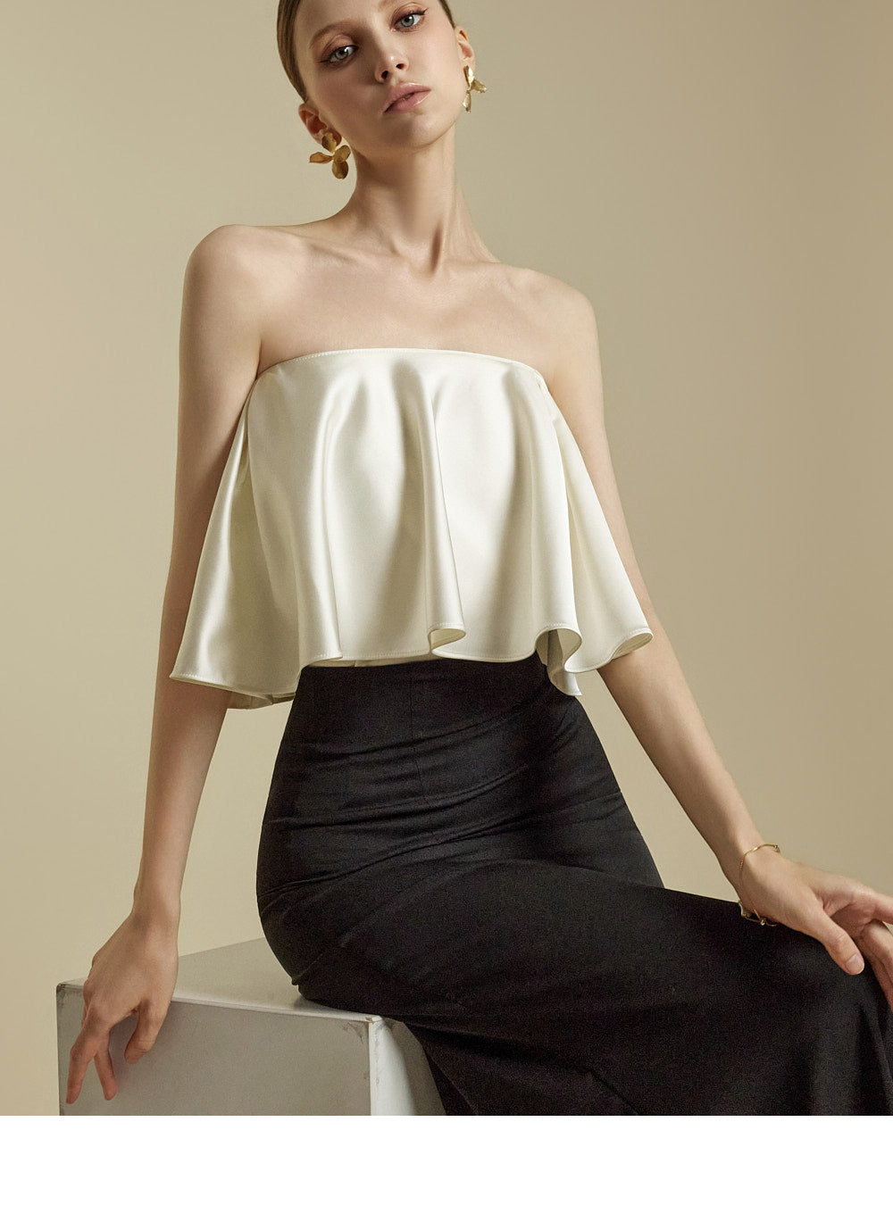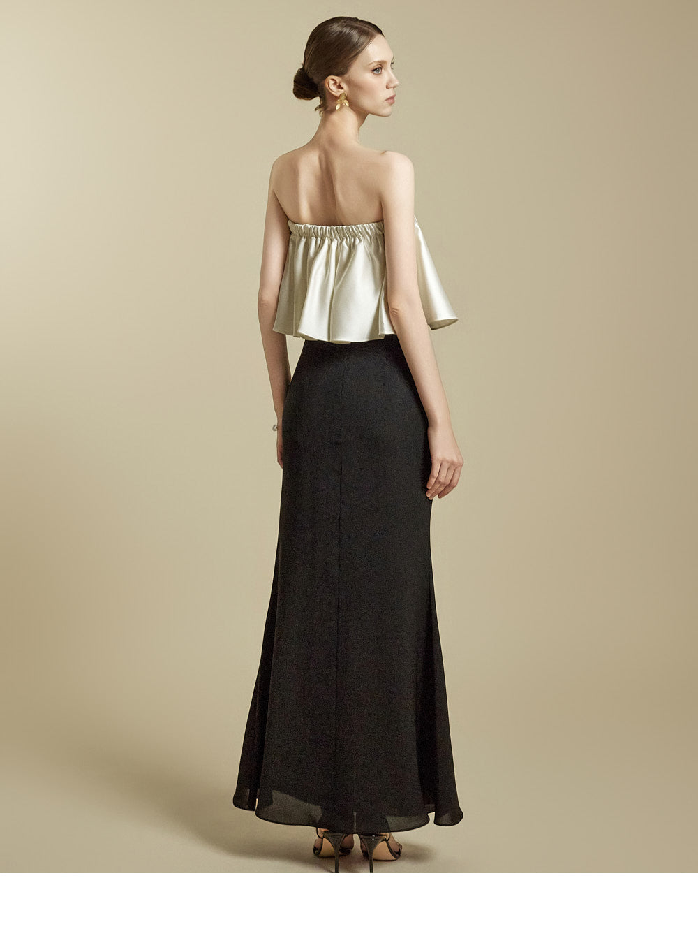 The double-layered ruffle fabric creates a lively, voluminous shape,