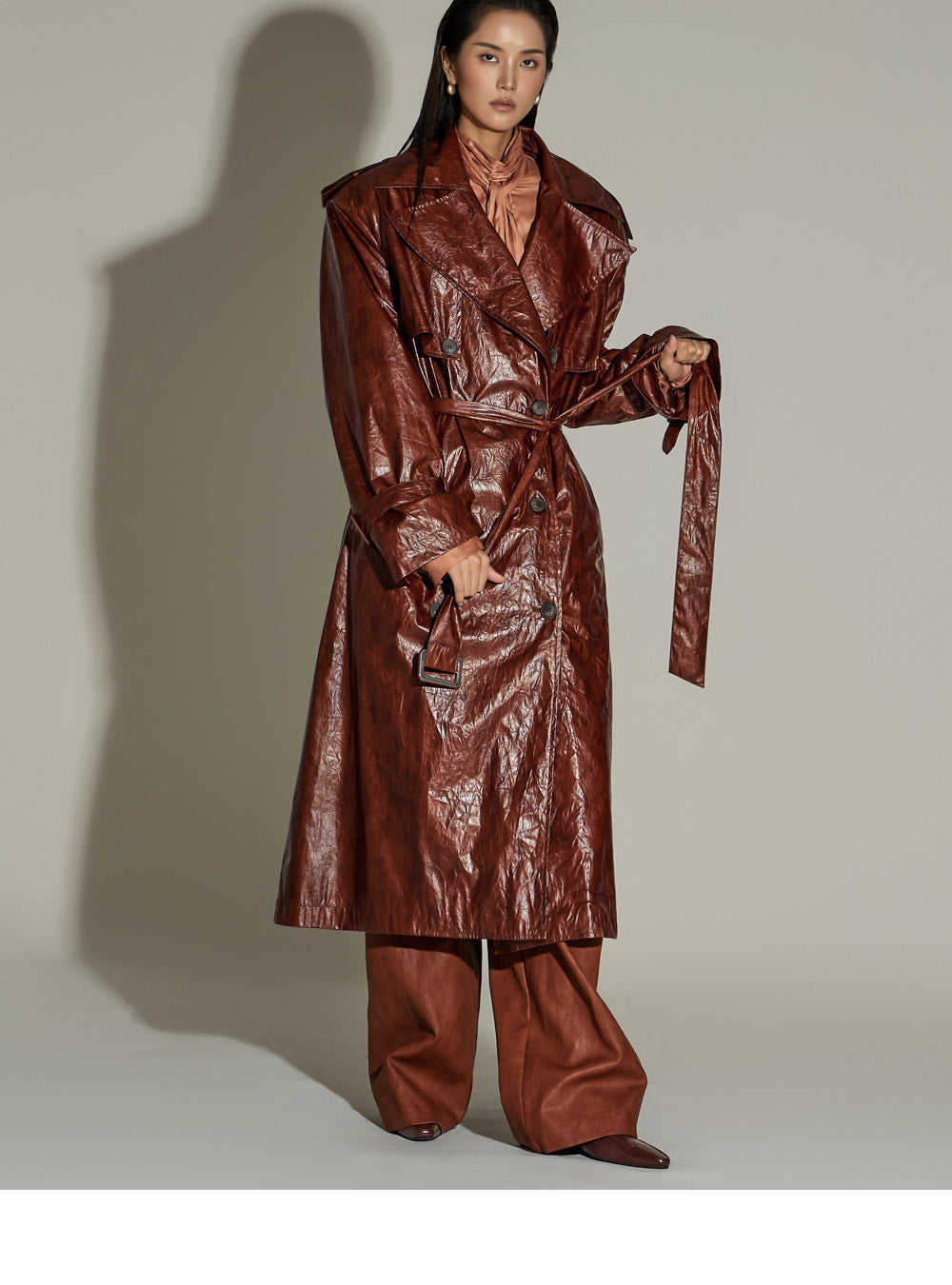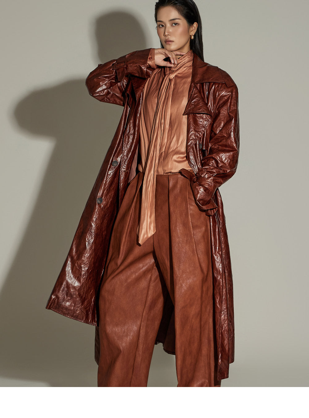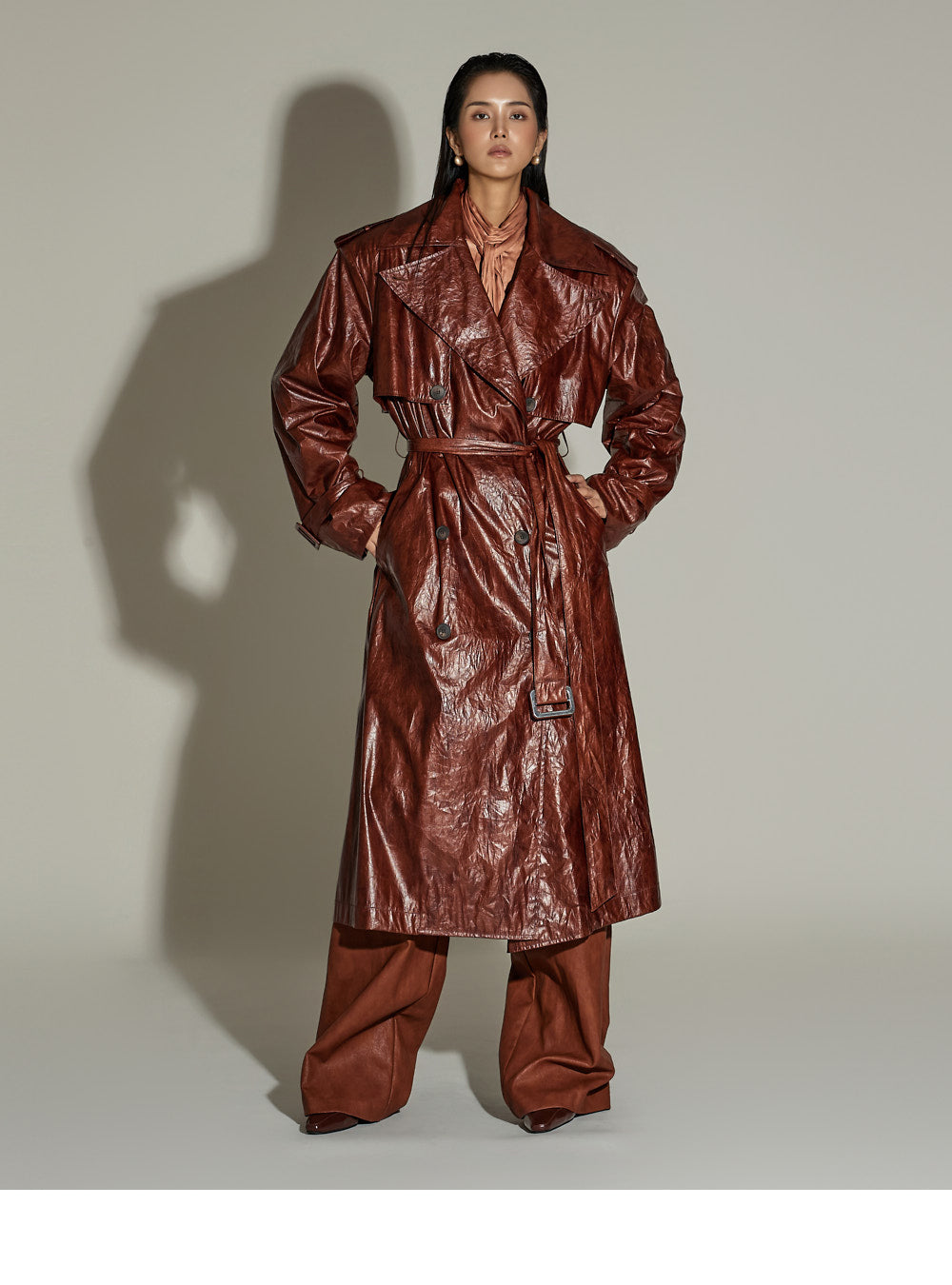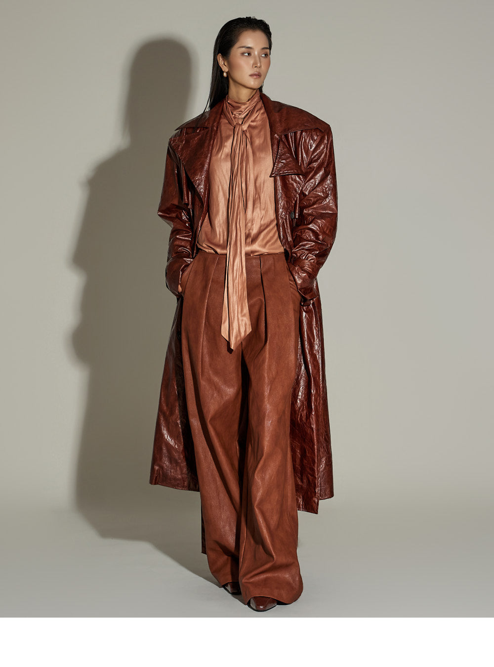creates a stylish silhouette, and the integrated scarf detail at the neck
