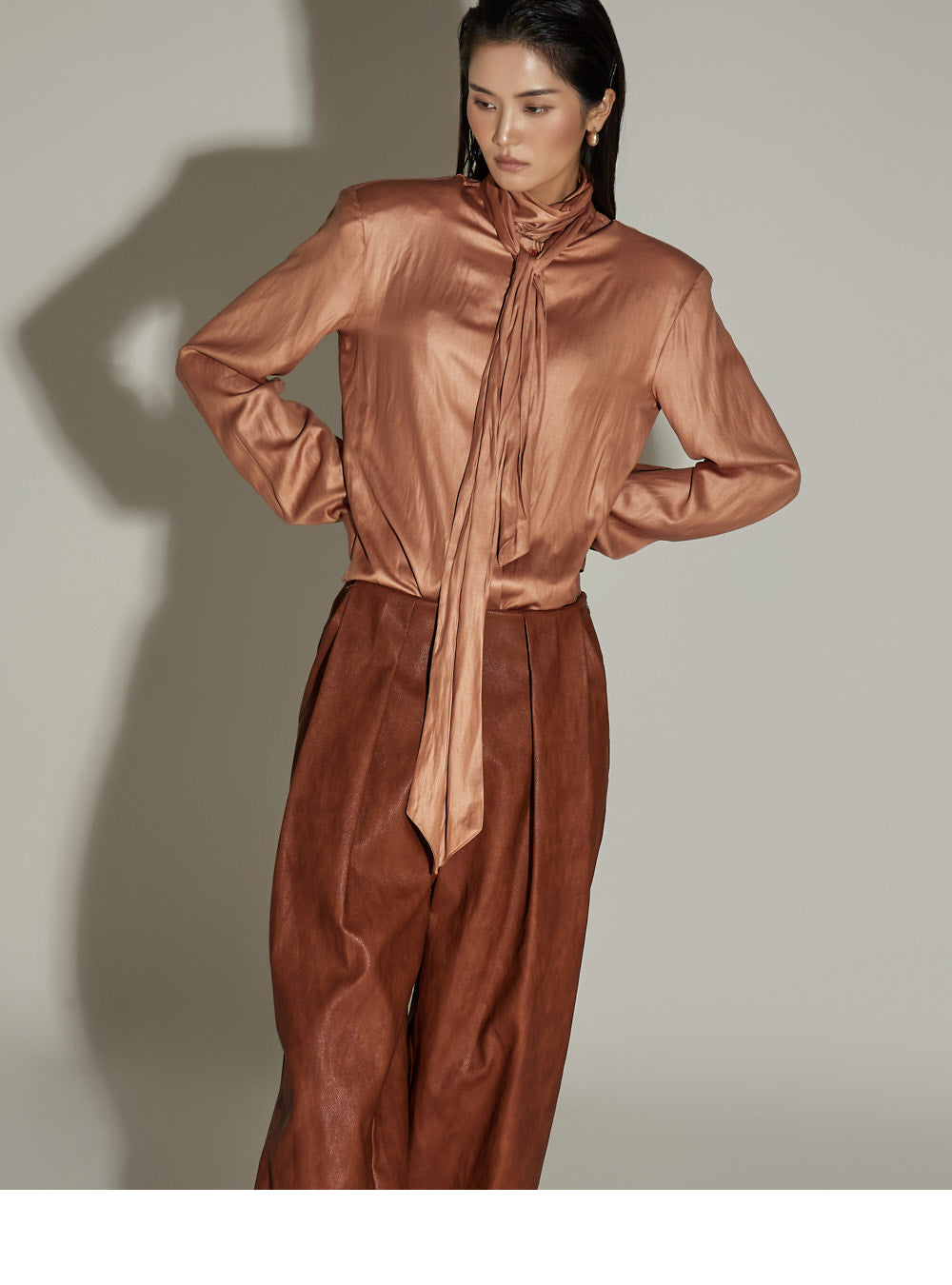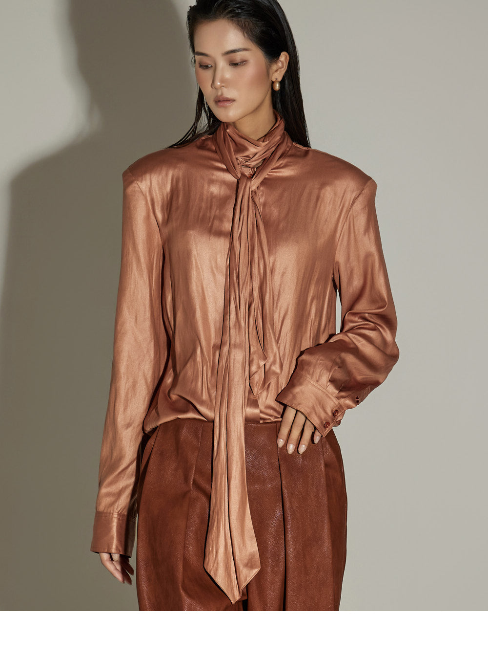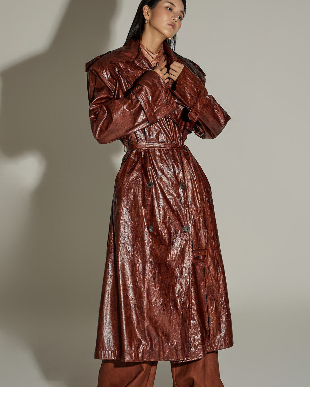 creates a stylish silhouette, and the integrated scarf detail at the neck