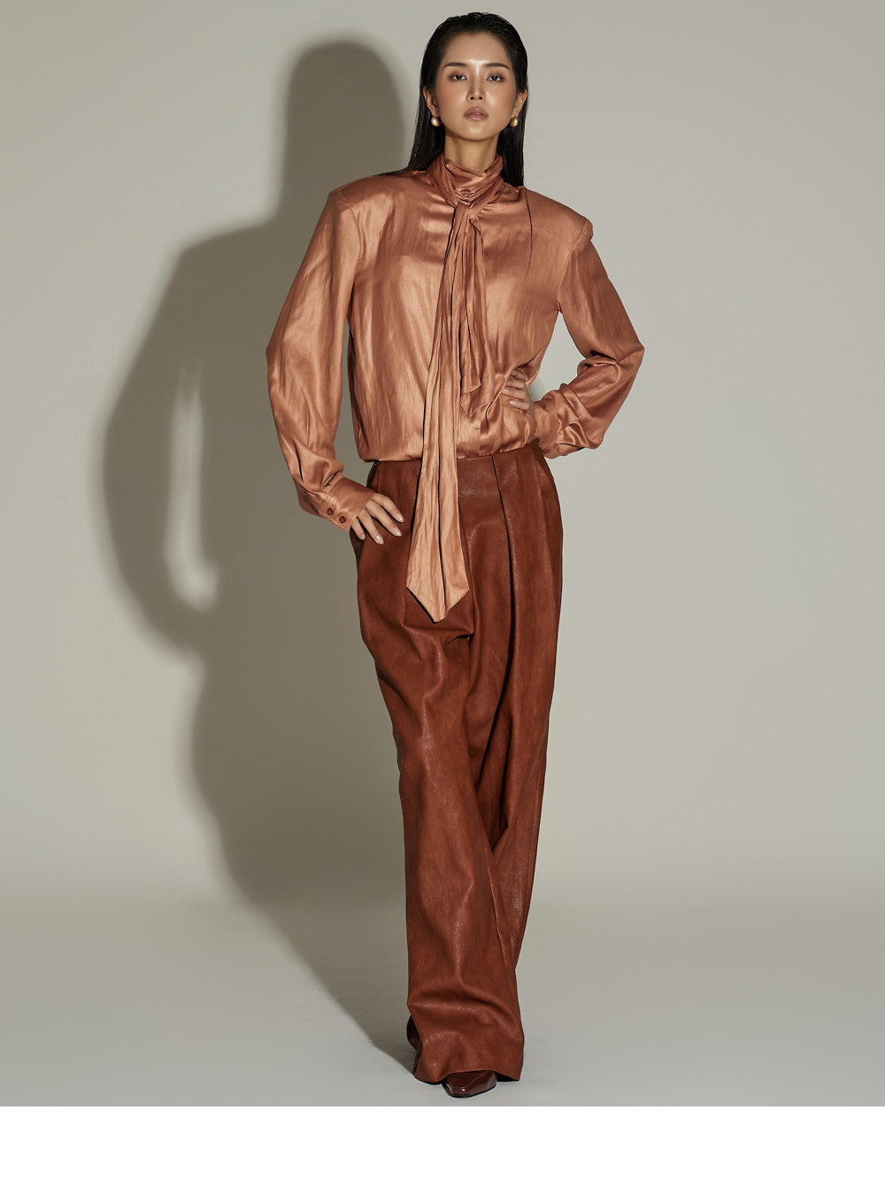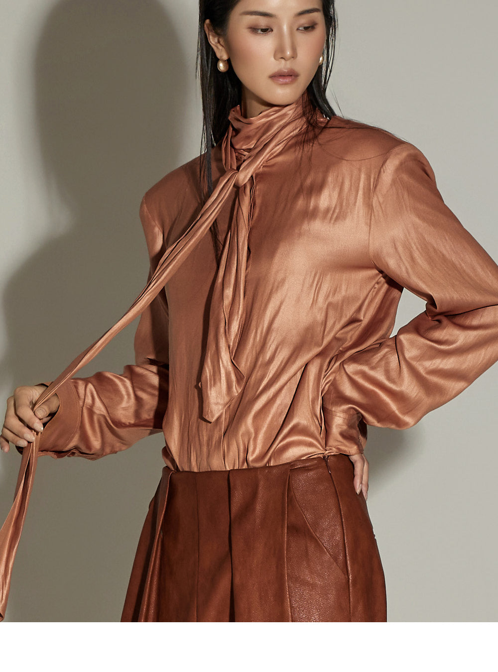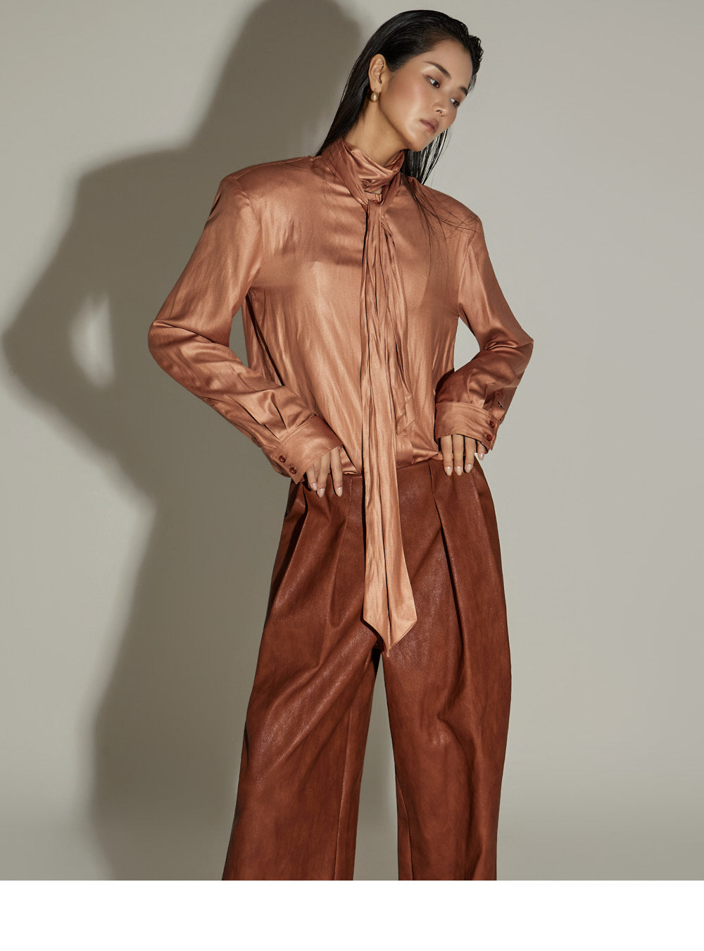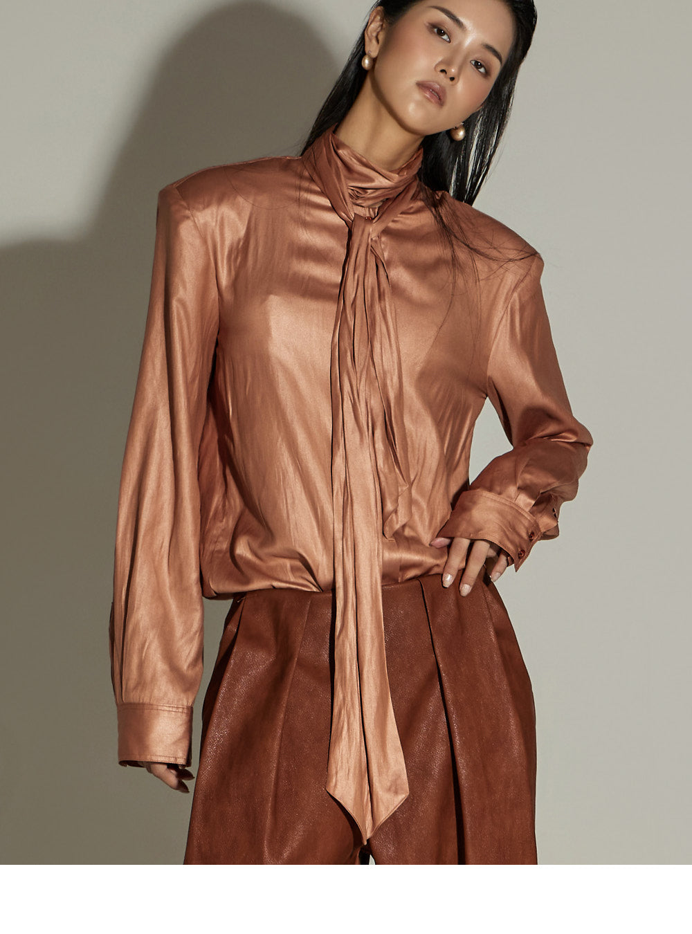 creates a stylish silhouette, and the integrated scarf detail at the neck