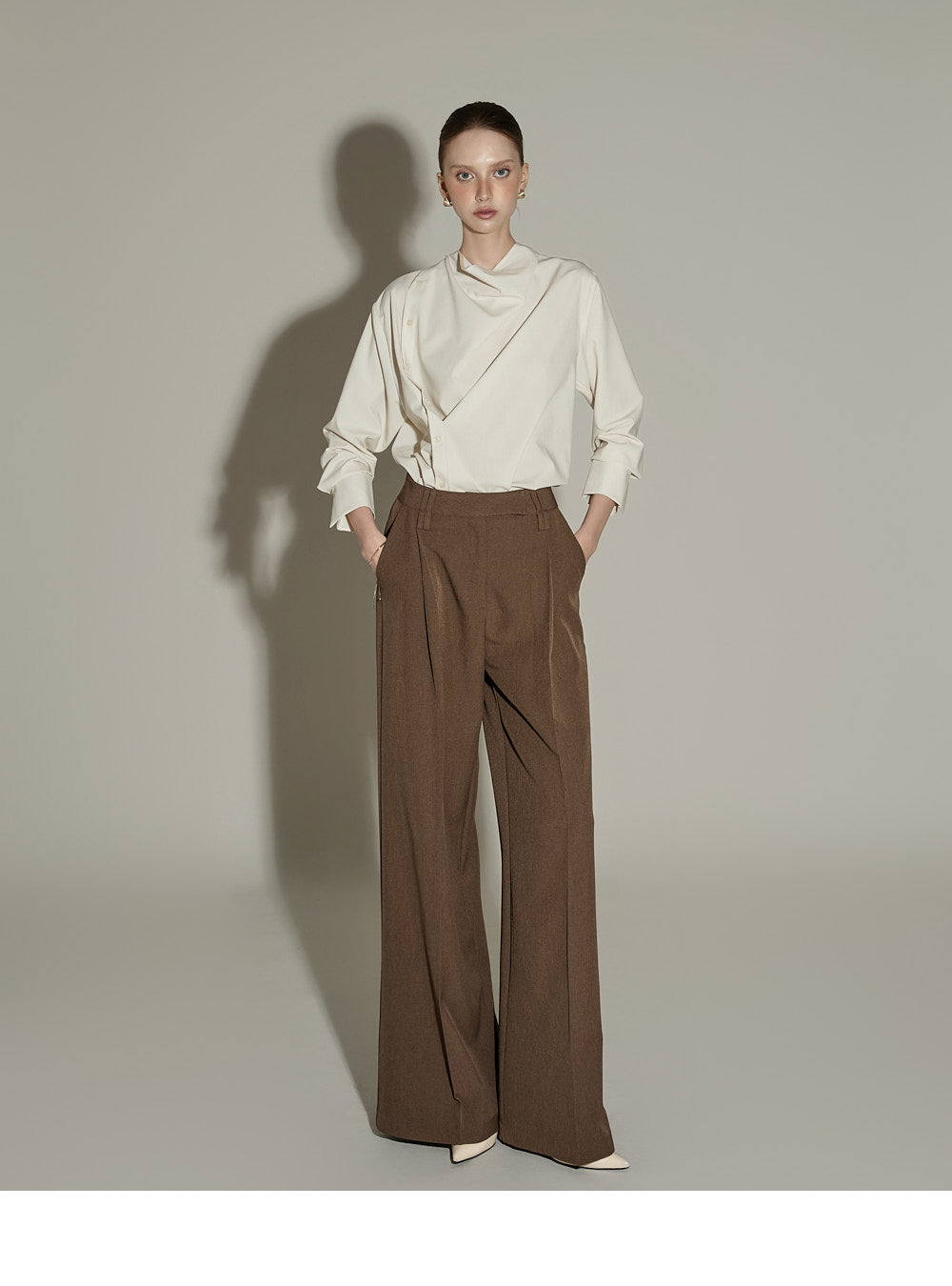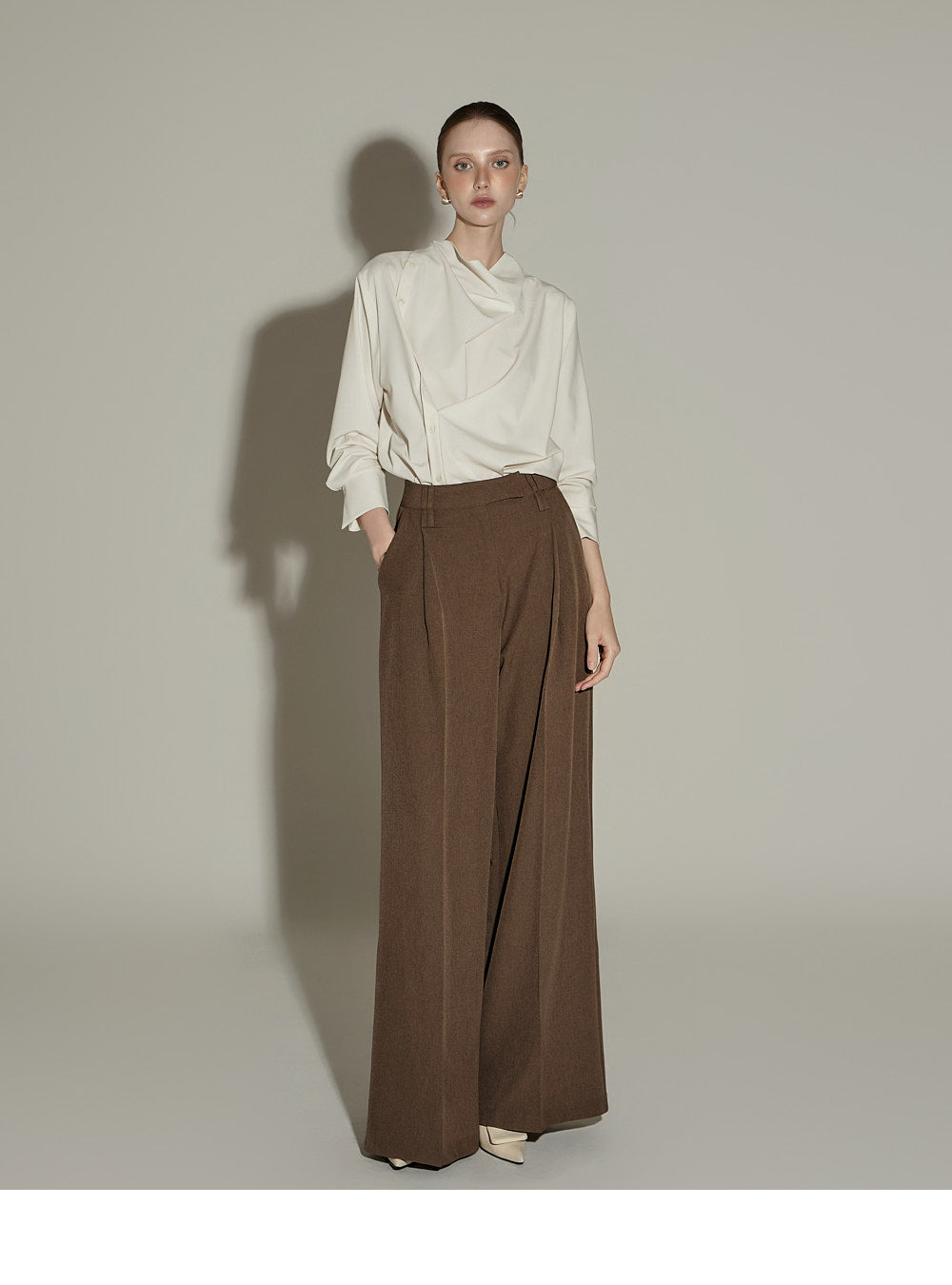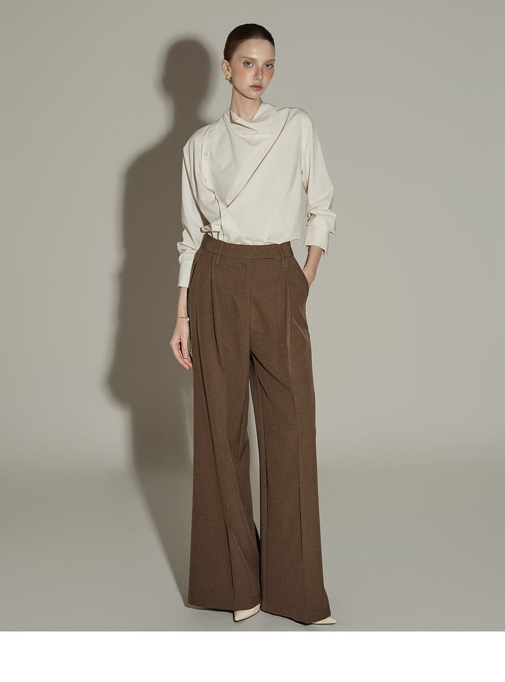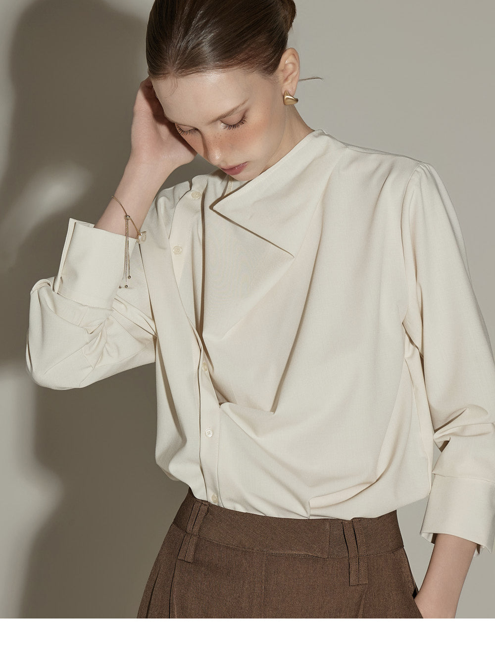 This casual side button draping shirt is crafted from a polyester, rayon, and spandex blend,