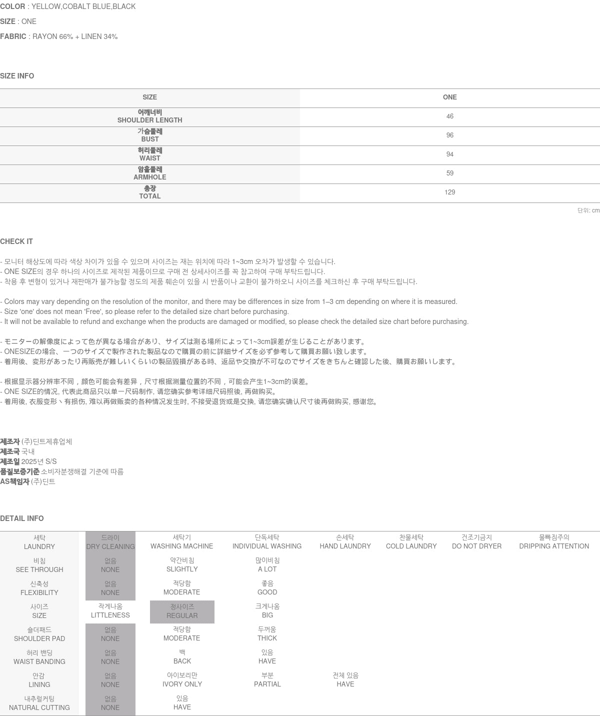 Clothing from DINT Co., Ltd. may become damaged or deformed if machine washed or tumble dried. We strongly recommend following the care instructions provided below.