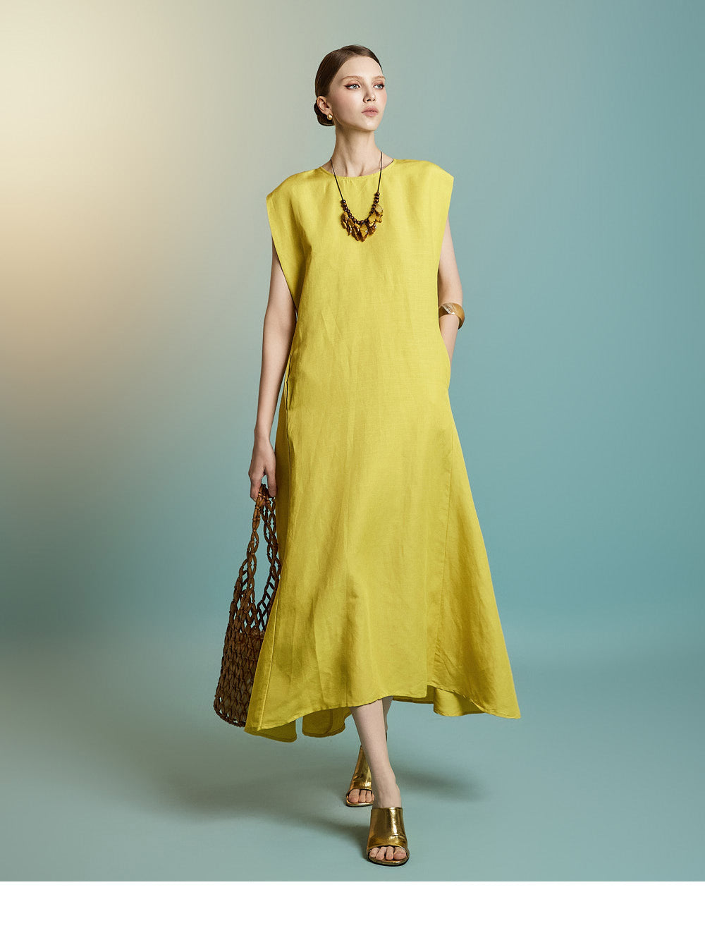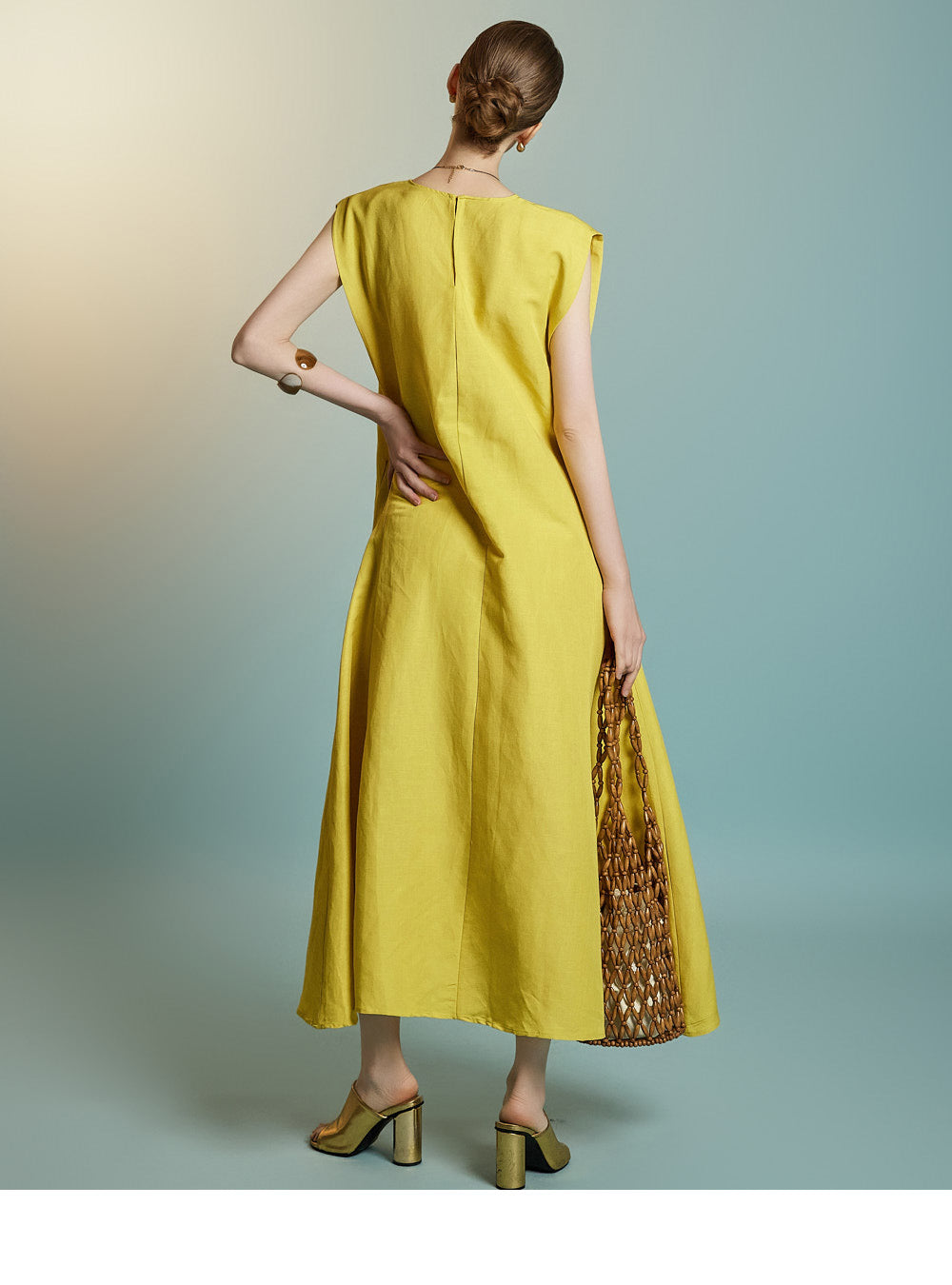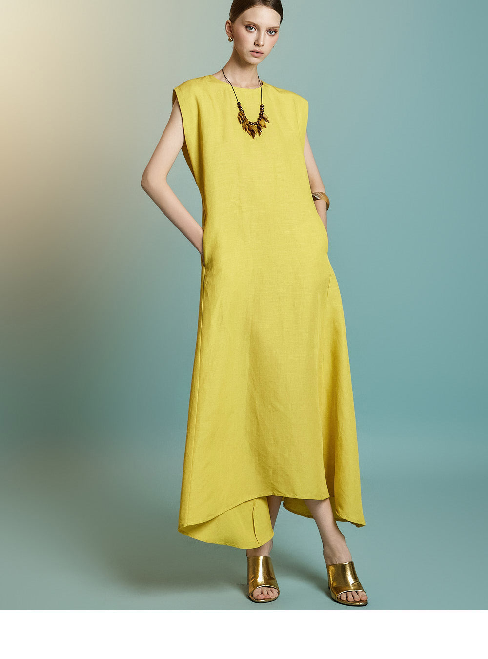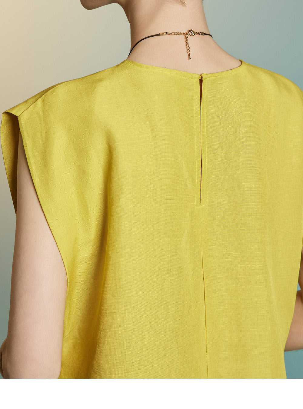 while the sleeveless design creates a simple yet feminine look.
