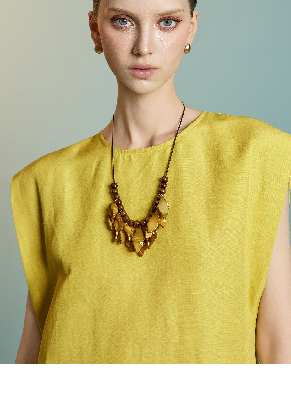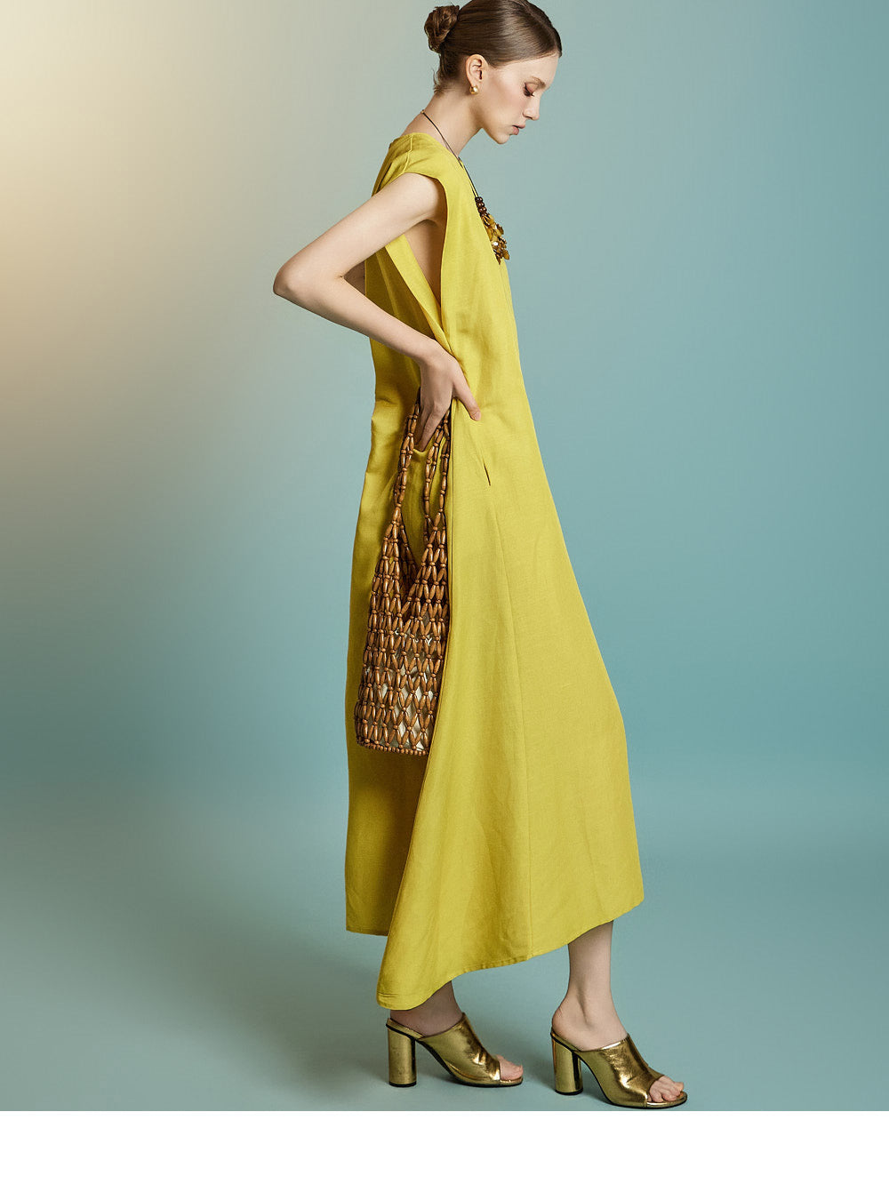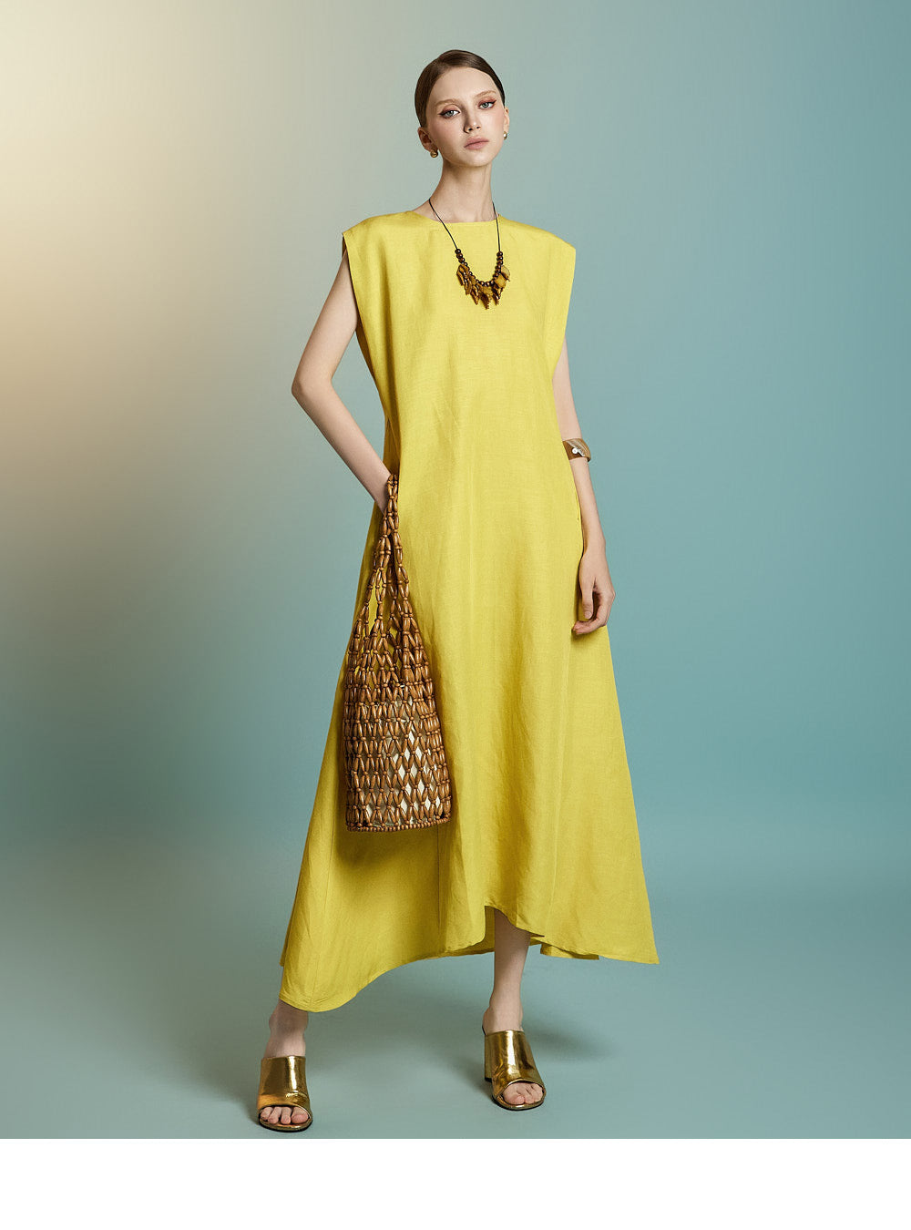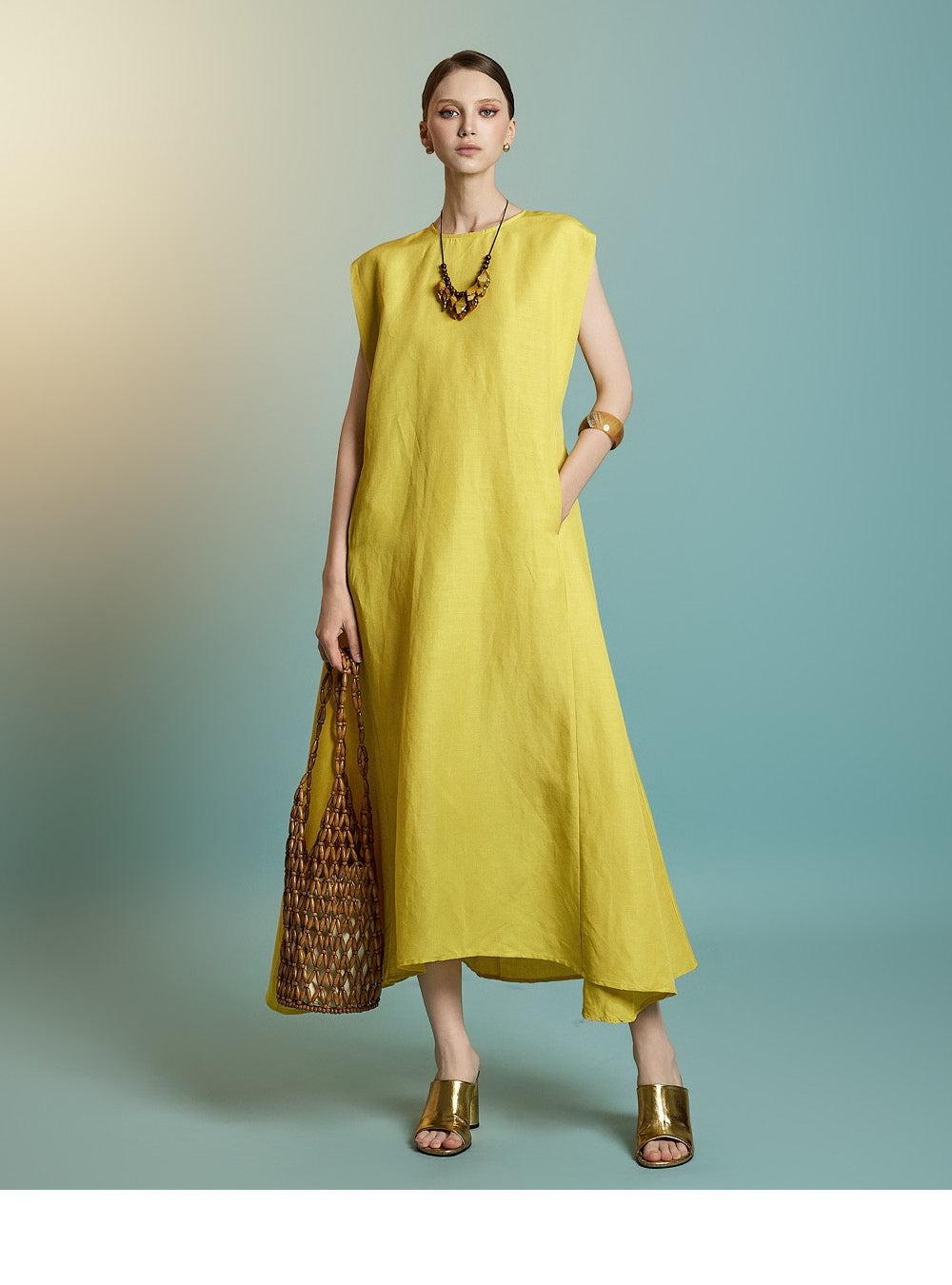 while the sleeveless design creates a simple yet feminine look.