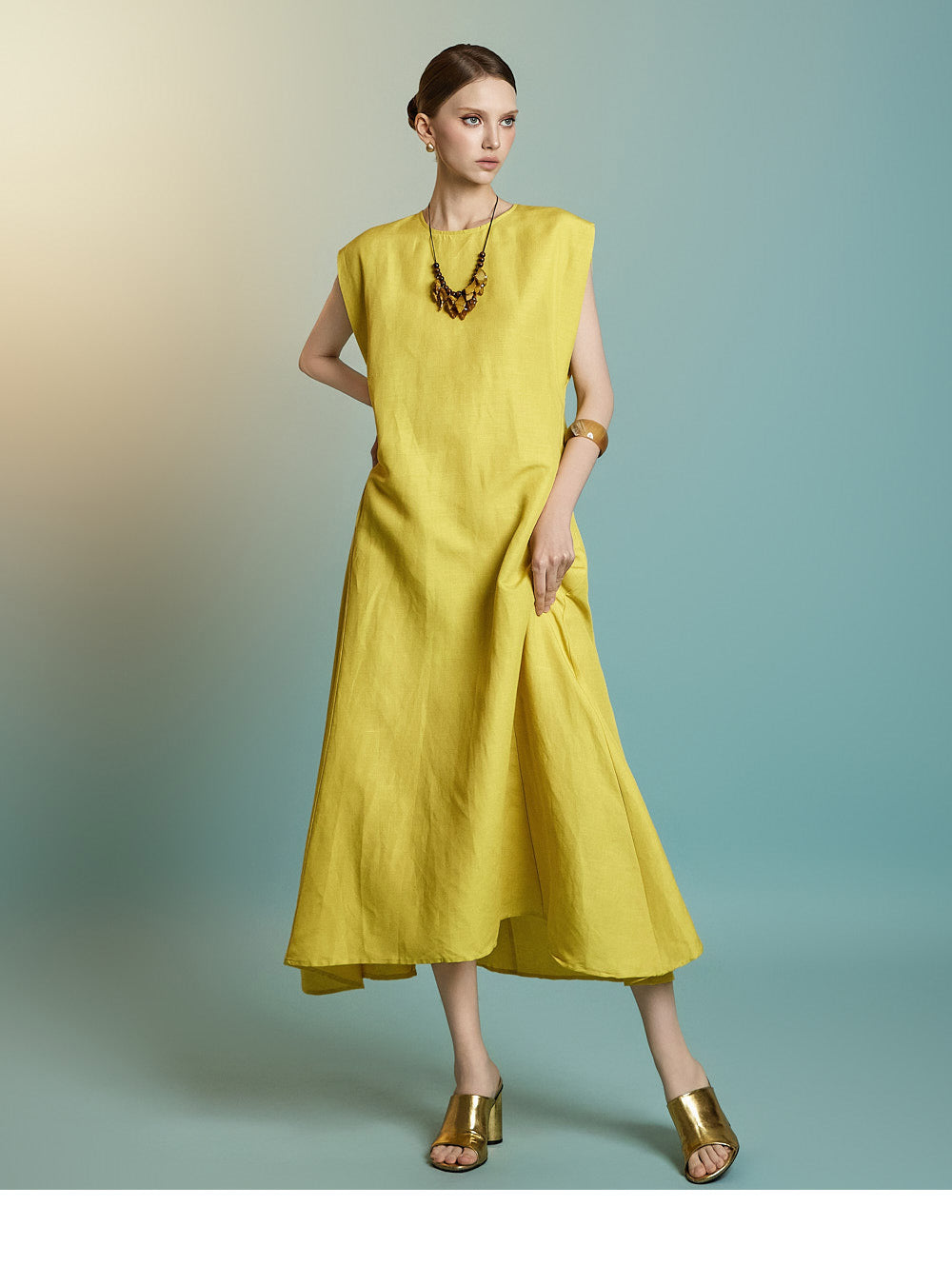 This feminine linen-blend dress offers a cool and lightweight feel.