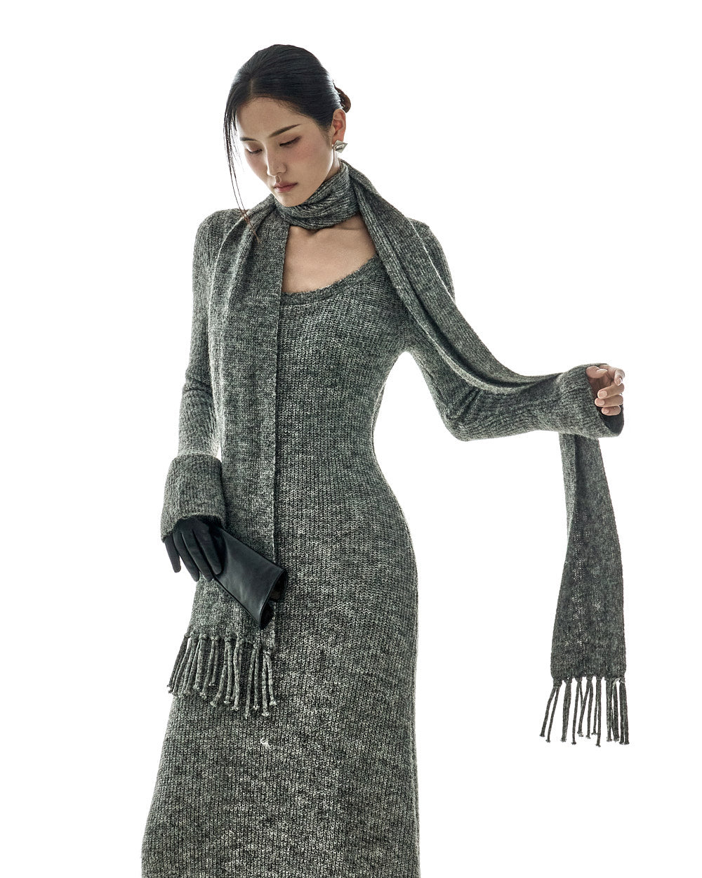 This casual muffler set knit dress is a stylish addition to your wardrobe.