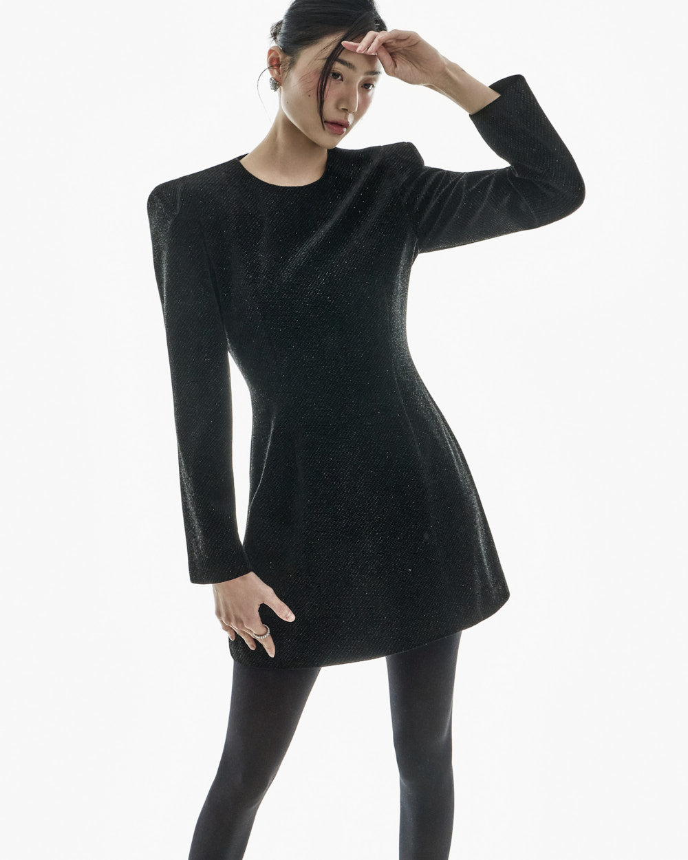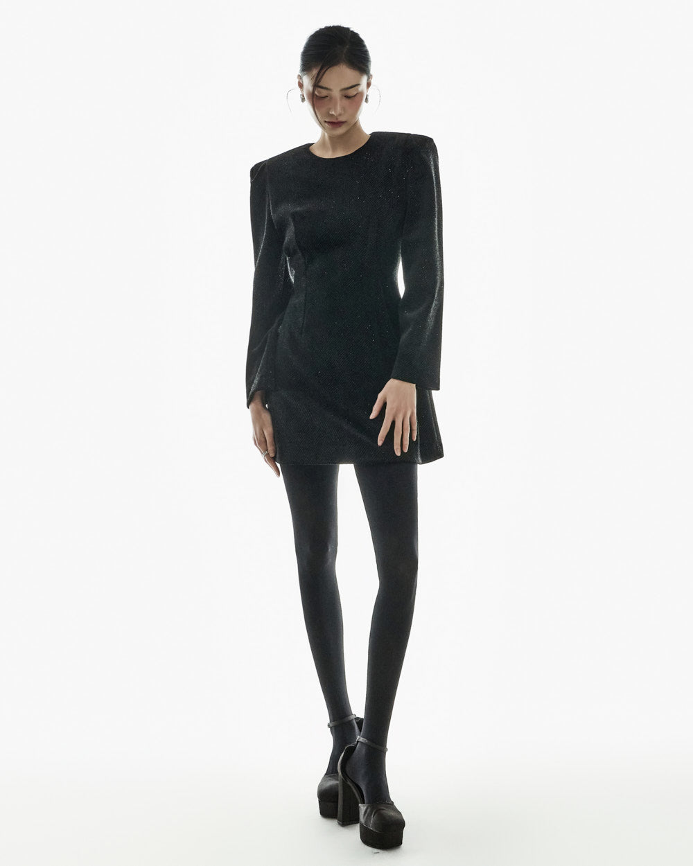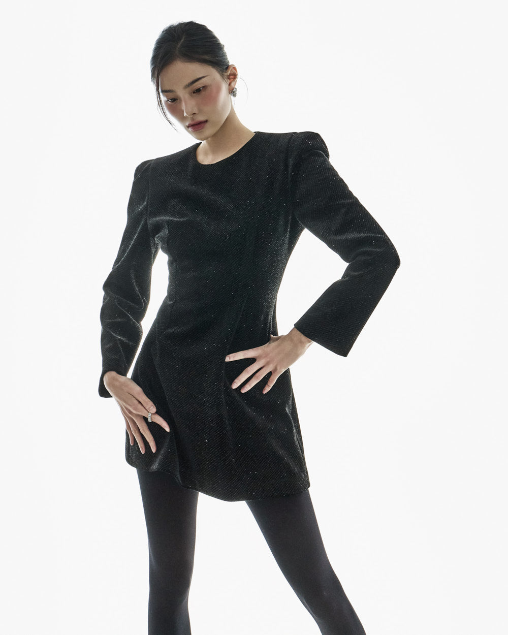 This moody pearl mini dress.