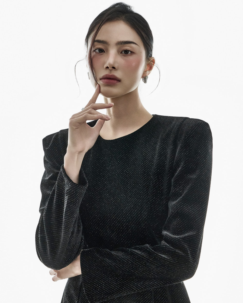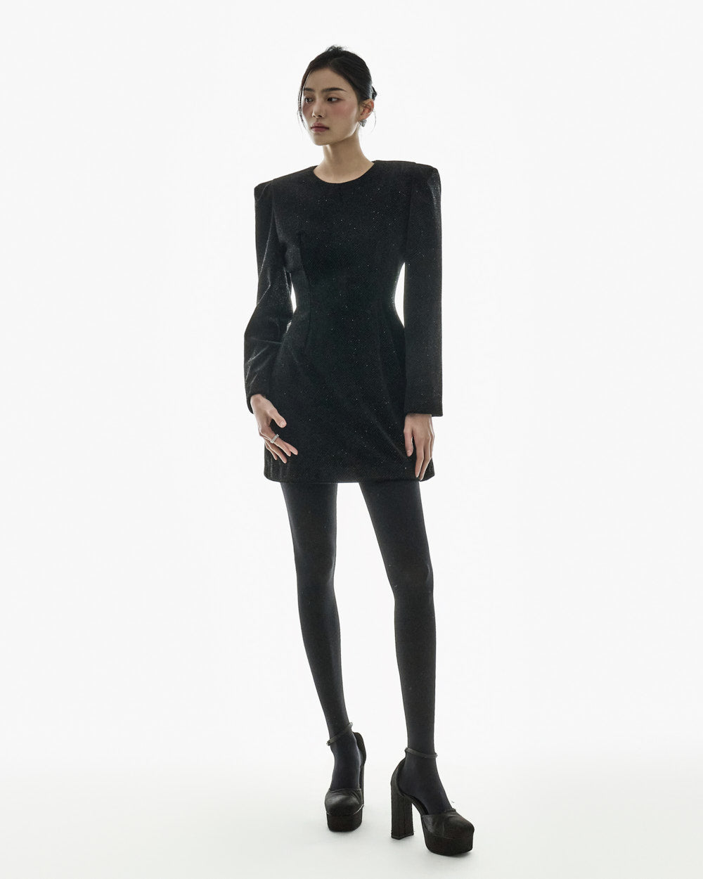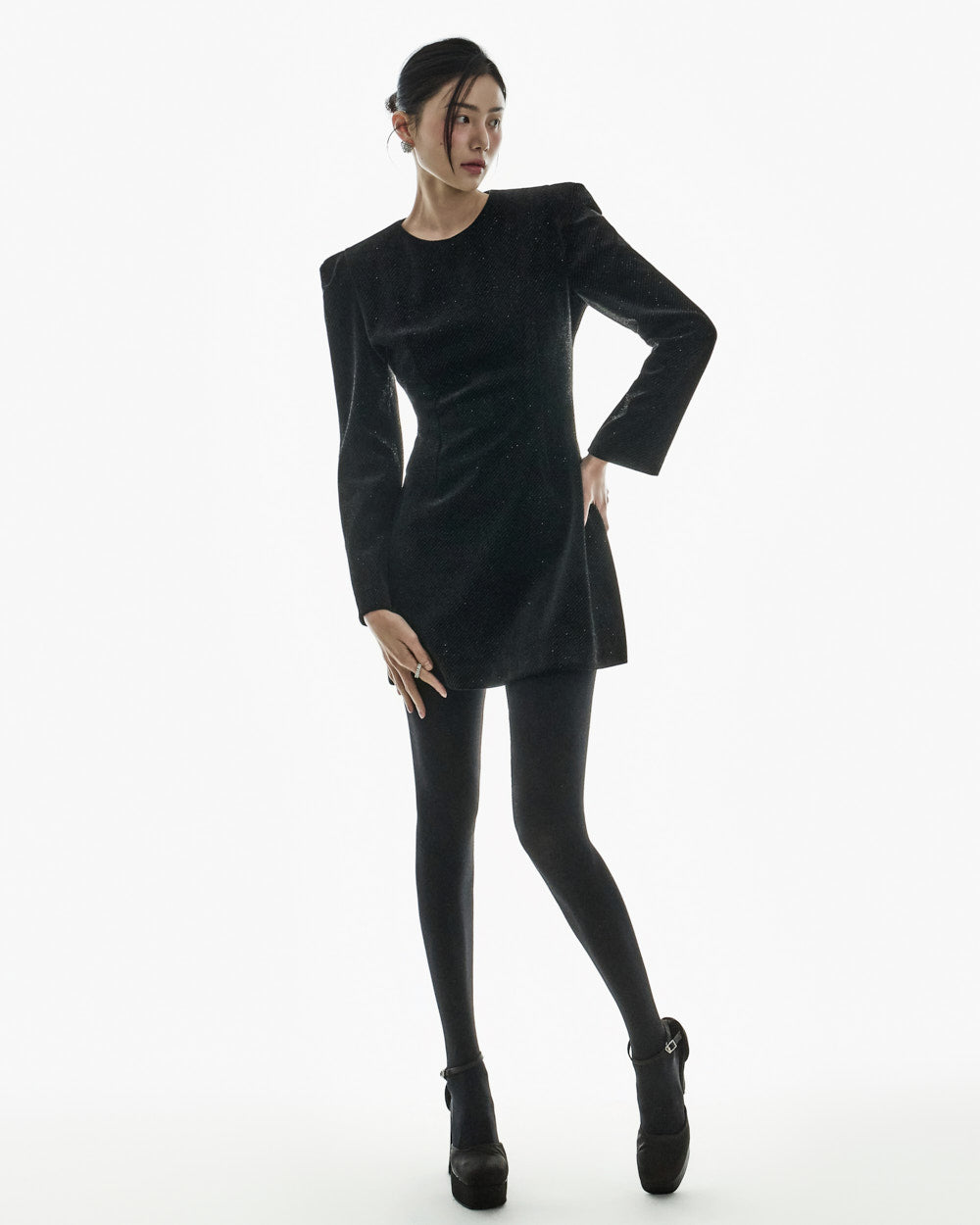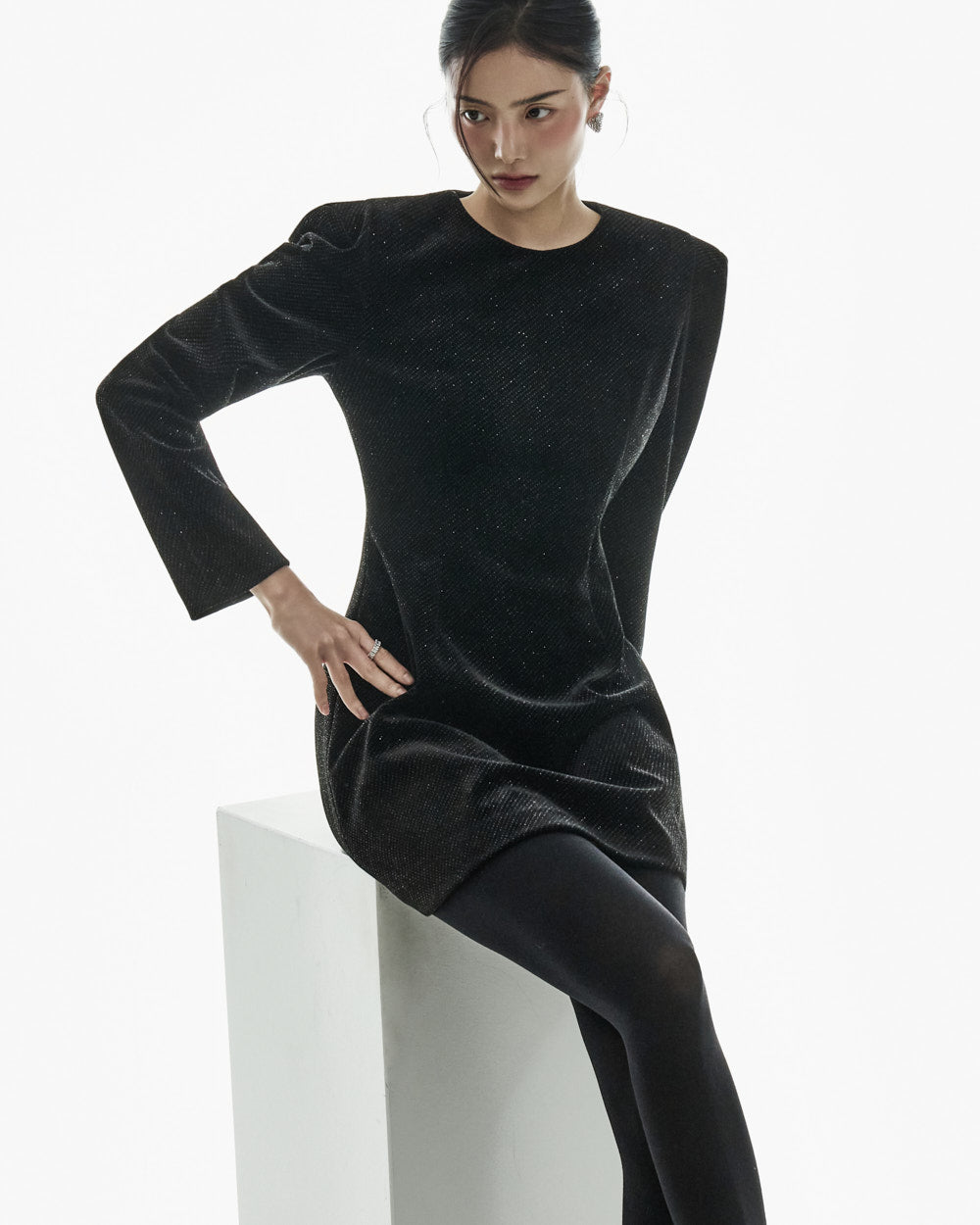 This moody pearl mini dress.