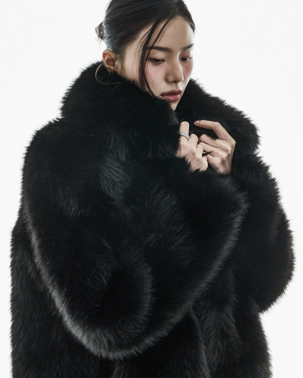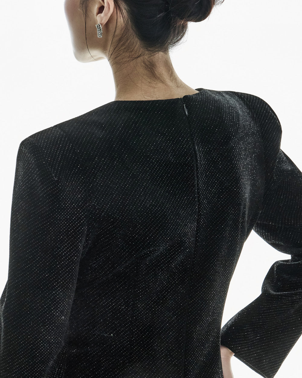 The puffed shoulder detail and padding create a voluminous upper body,