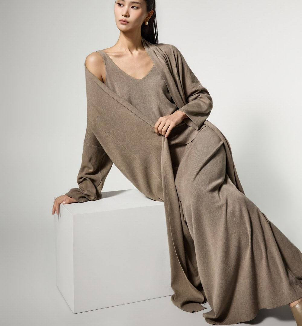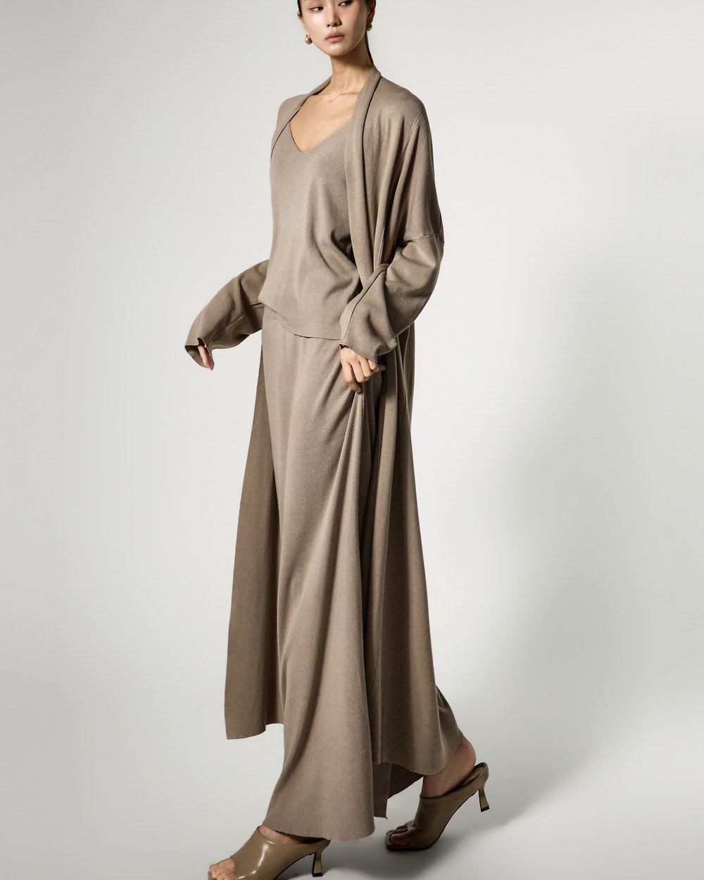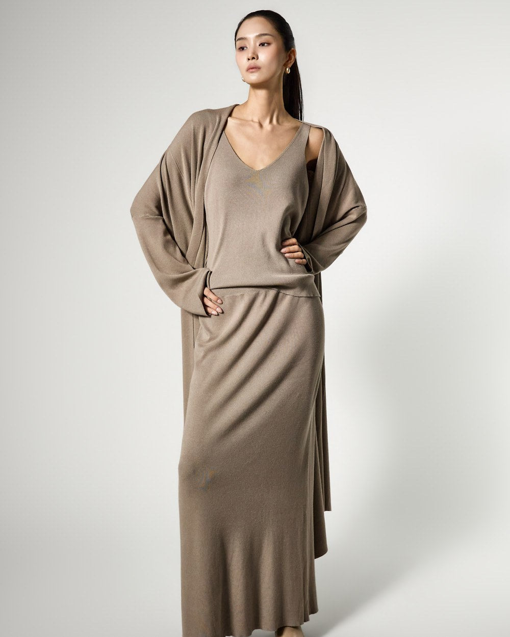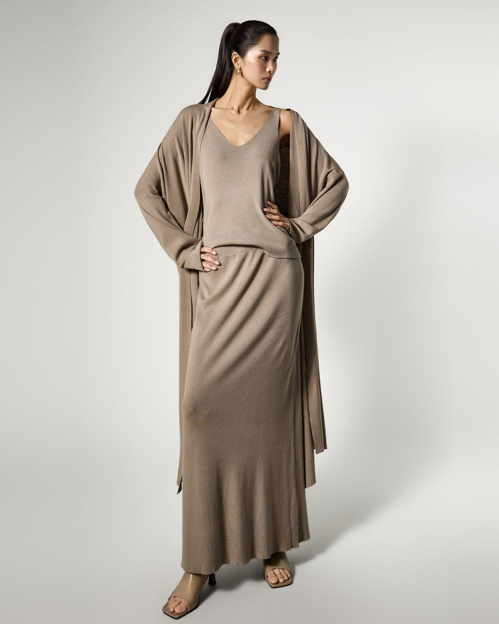 The long cardigan adds a sophisticated accent to the overall style with its naturally flowing fit.