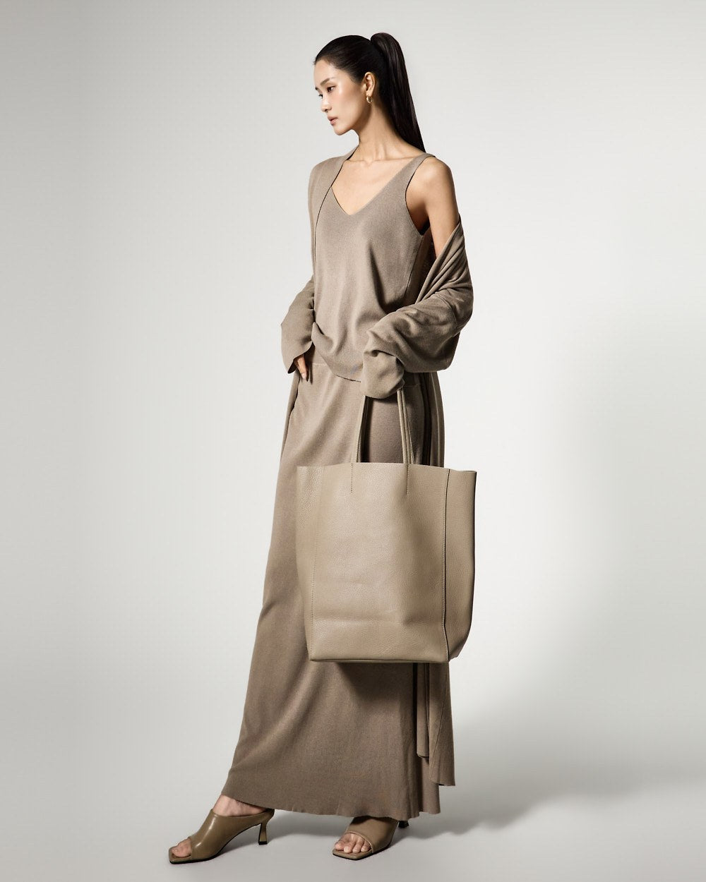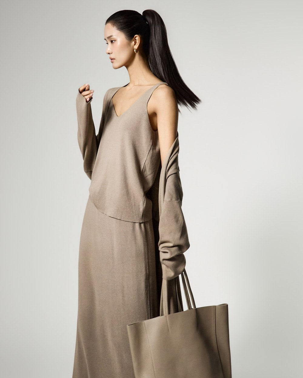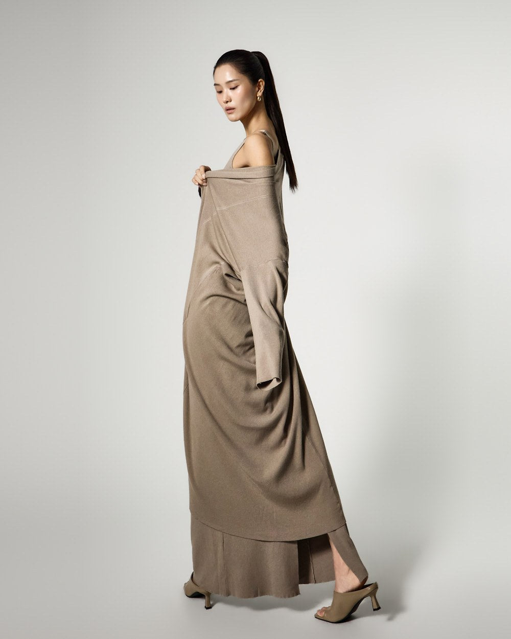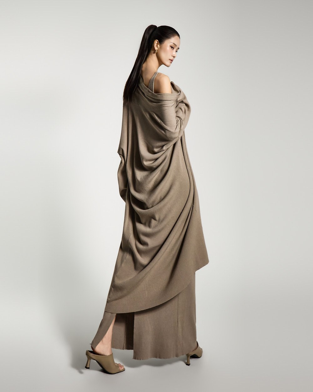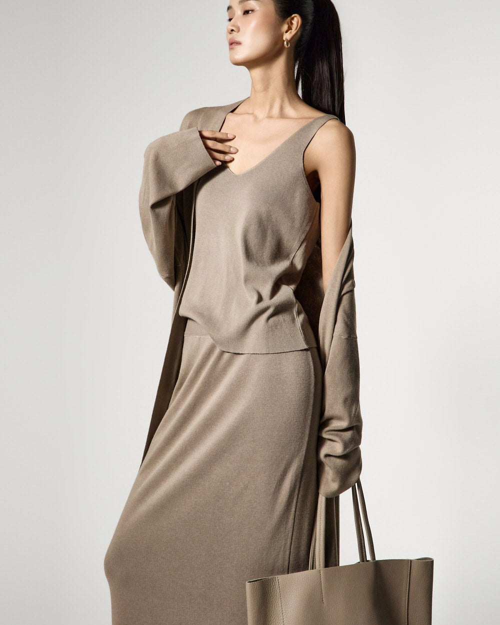 The long cardigan adds a sophisticated accent to the overall style with its naturally flowing fit.