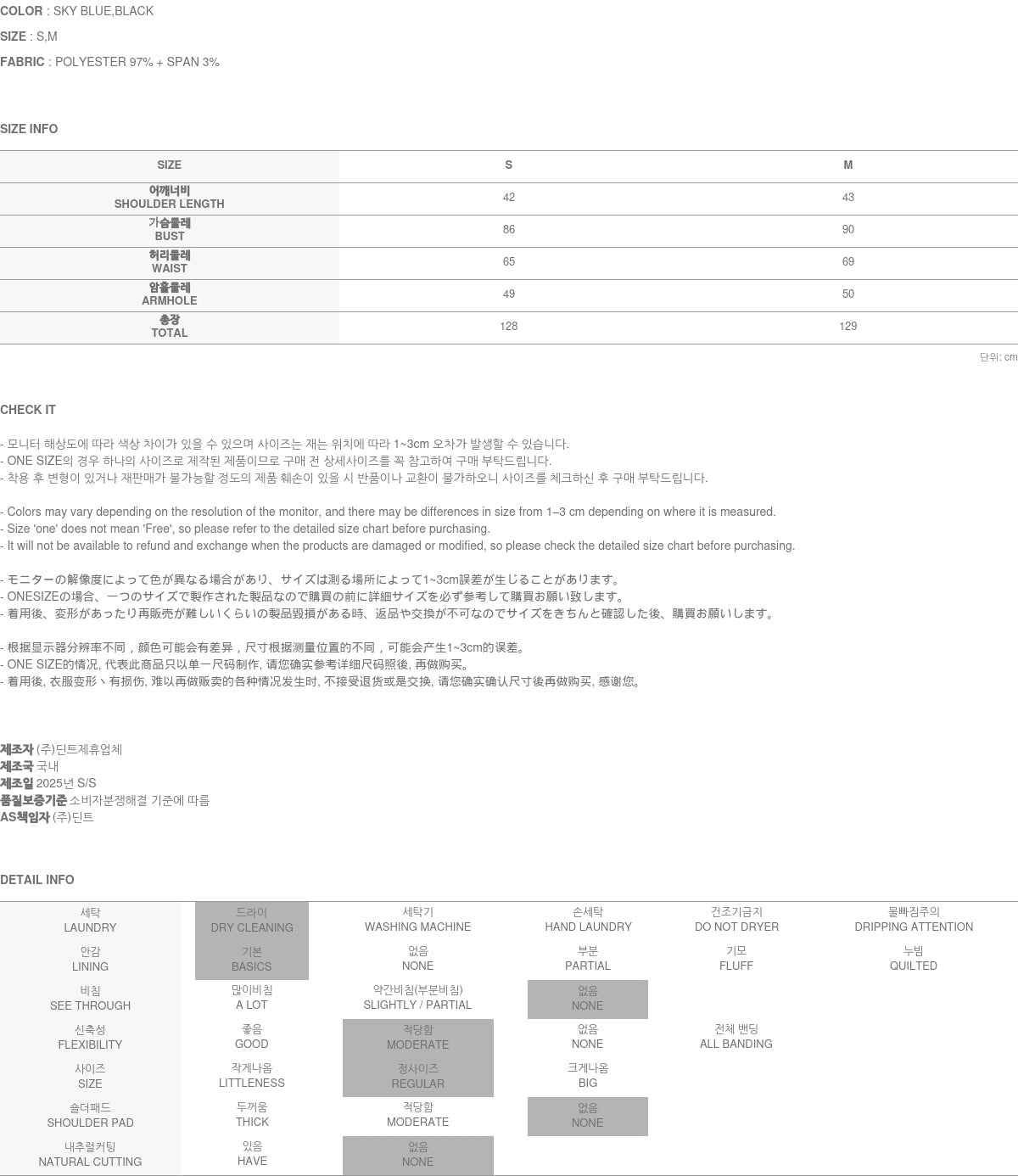 The model is 171CM tall and is wearing size S in??SKY BLUE.