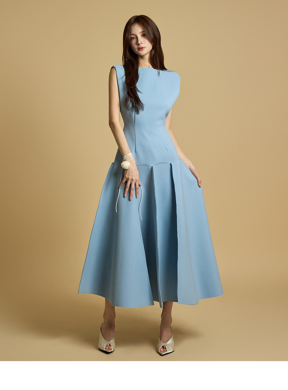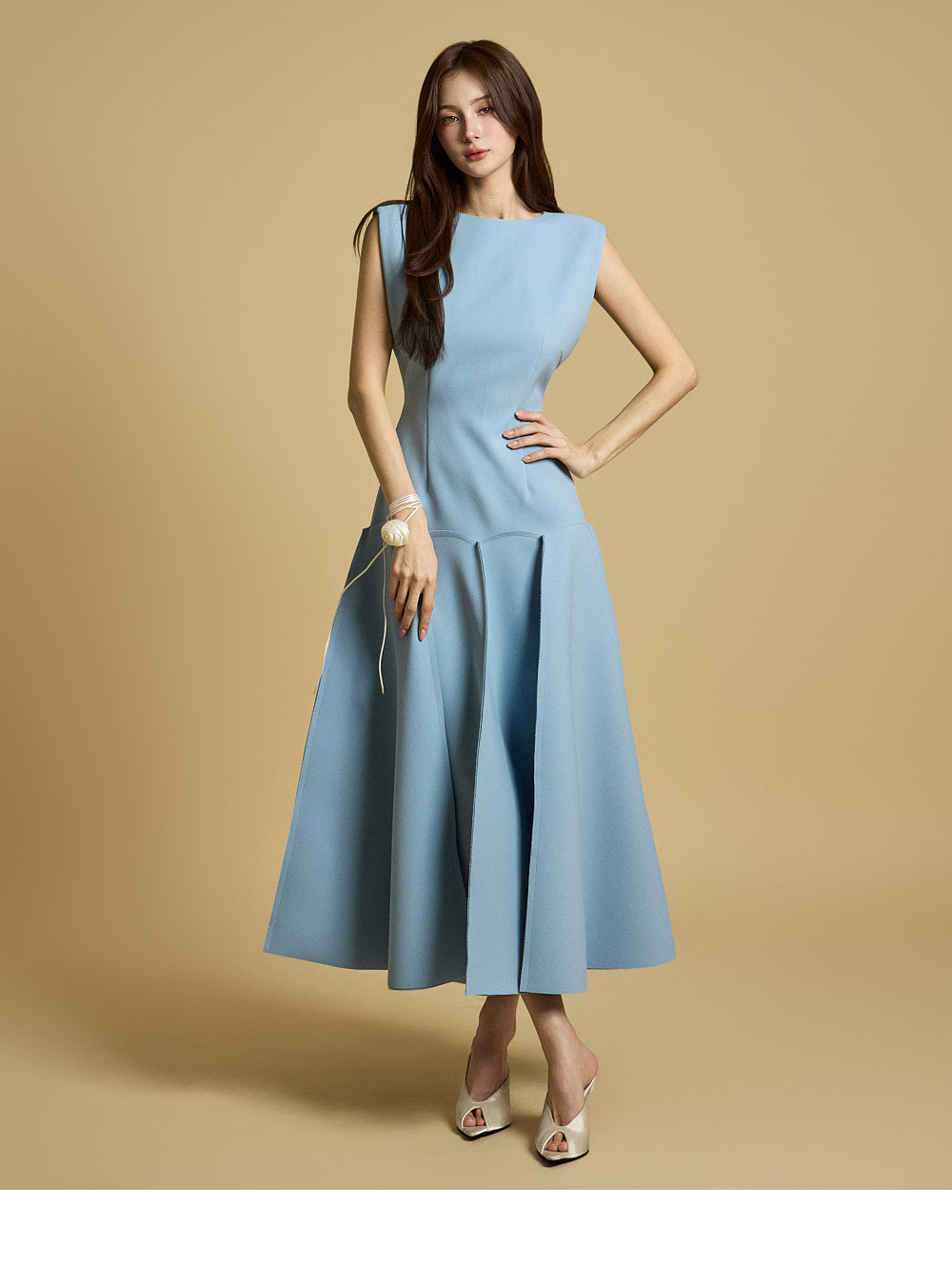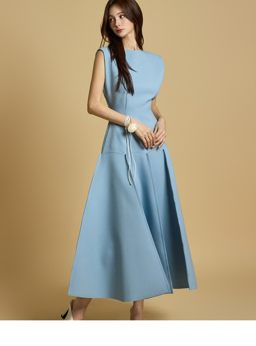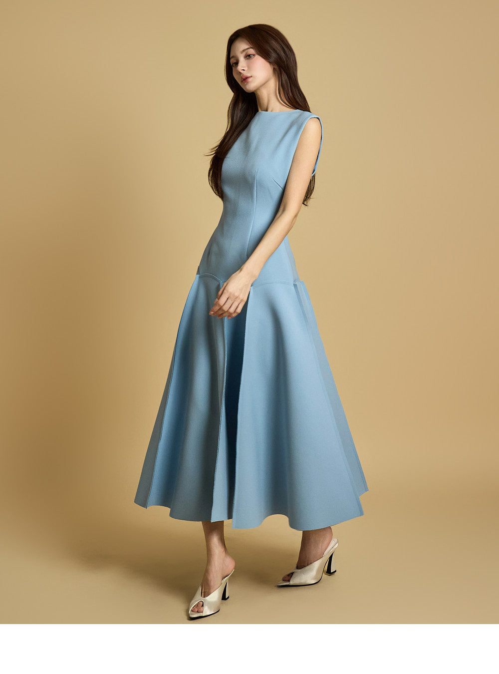 This is a flared dress with a chic and feminine mood.