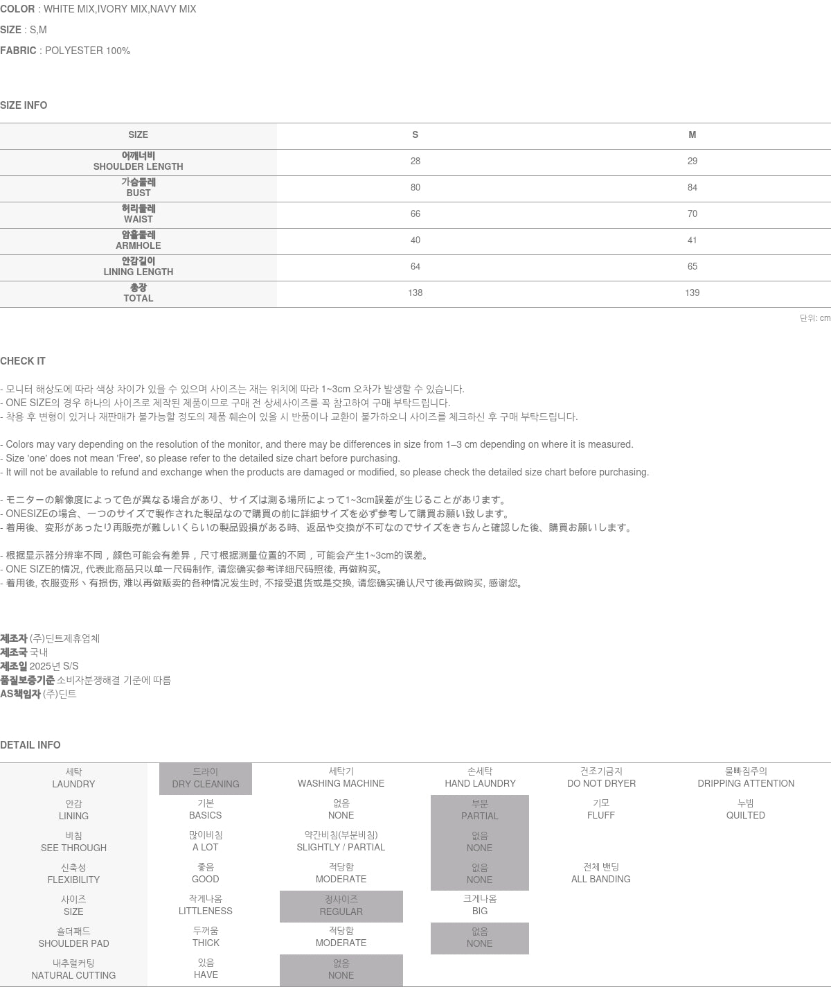 Clothing from DINT Co., Ltd. may become damaged or deformed if machine washed or tumble dried. We strongly recommend following the care instructions provided below.