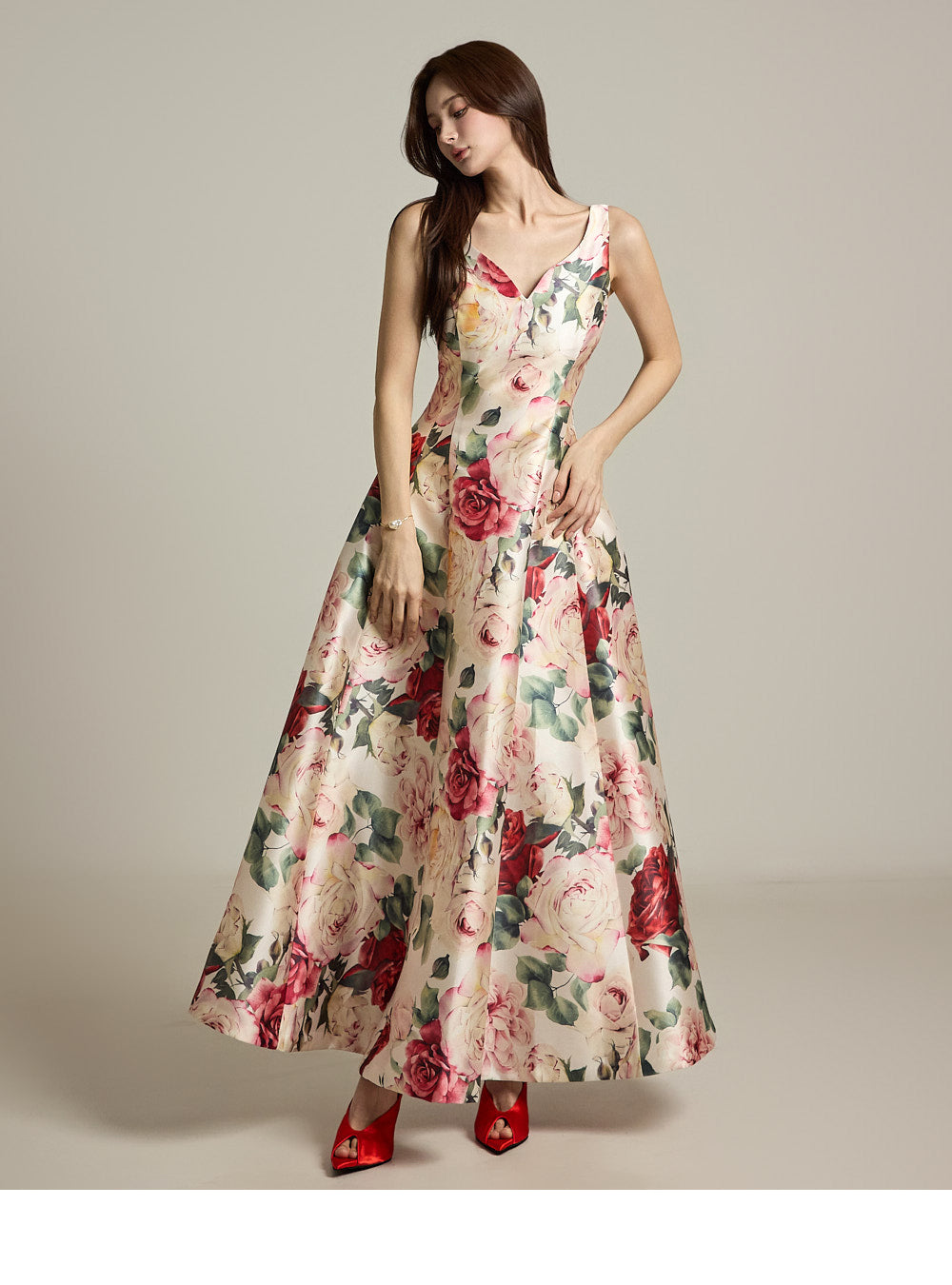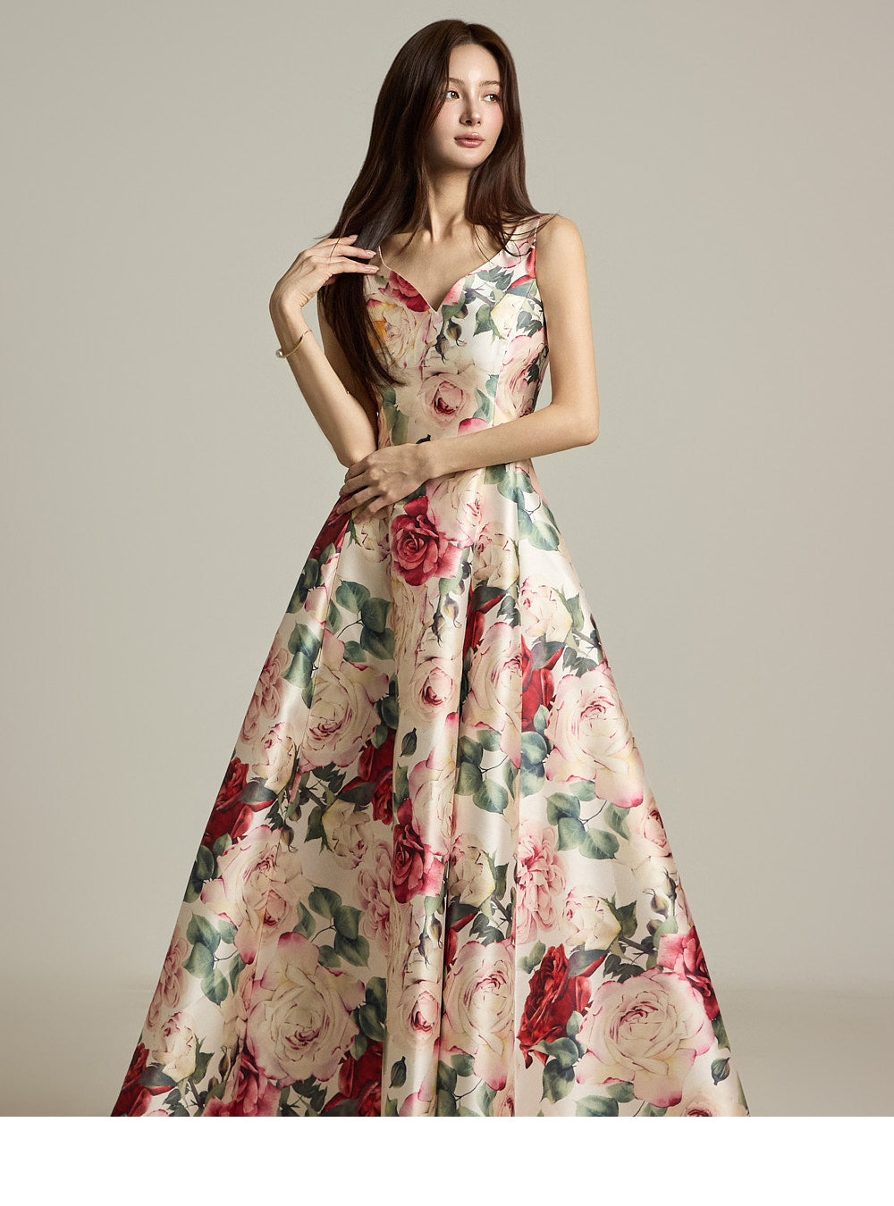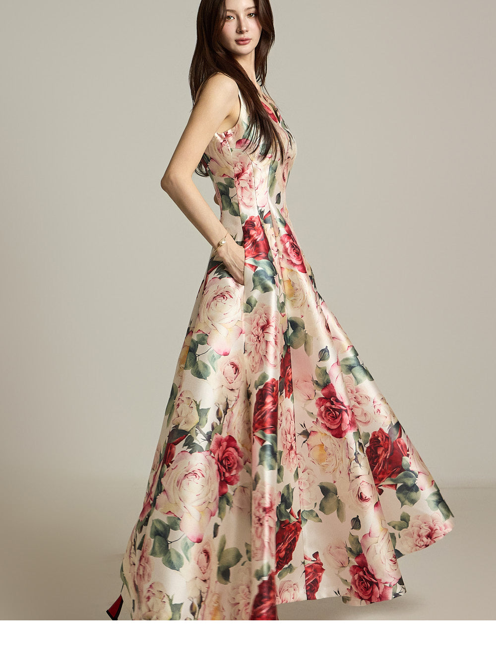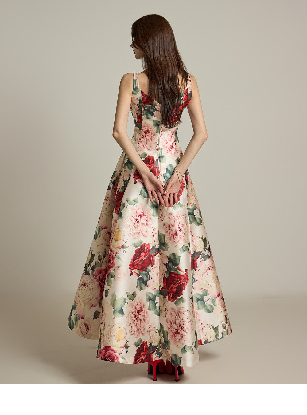 The floral pattern makes it perfect for evening or formal dress looks.