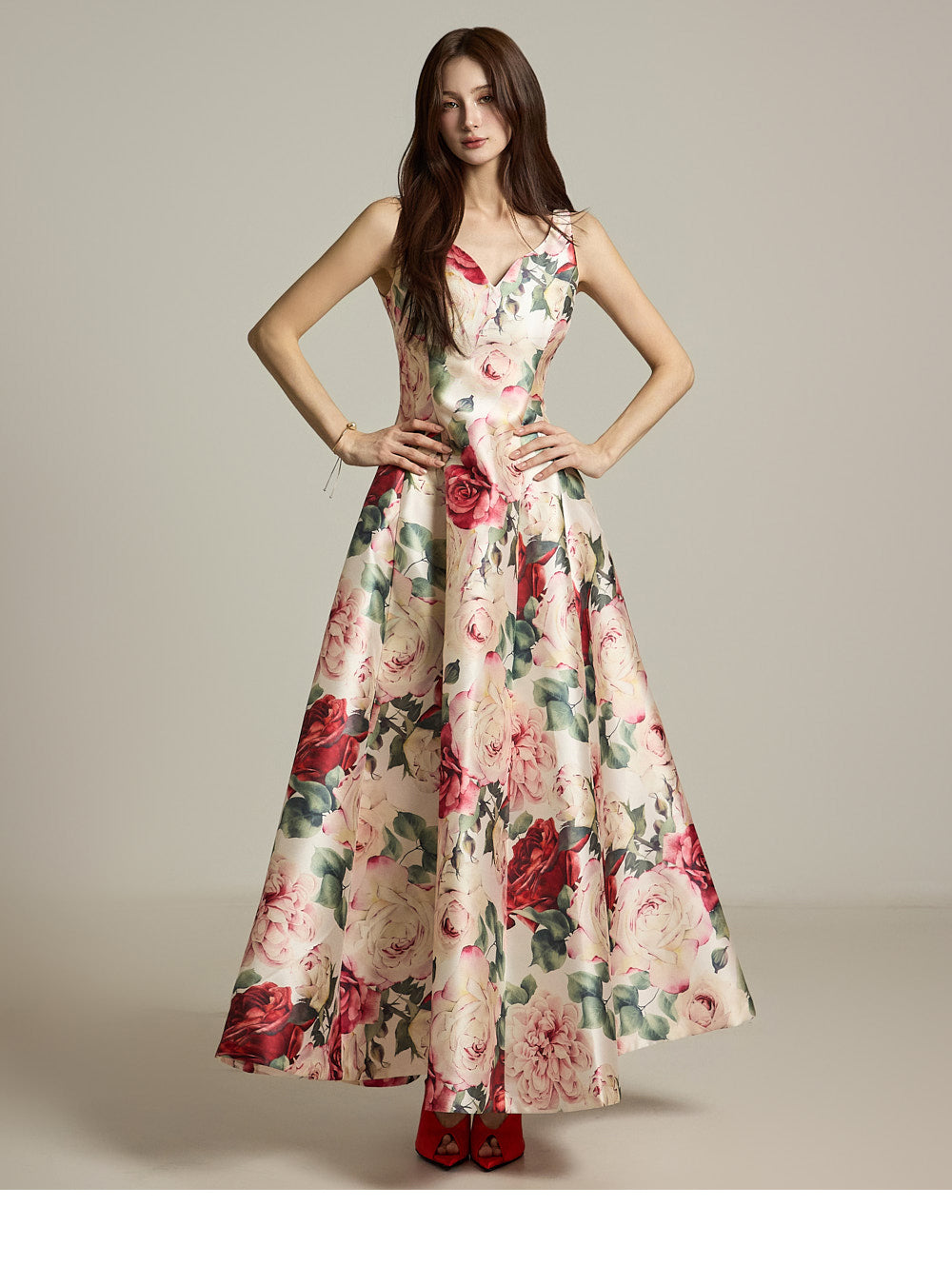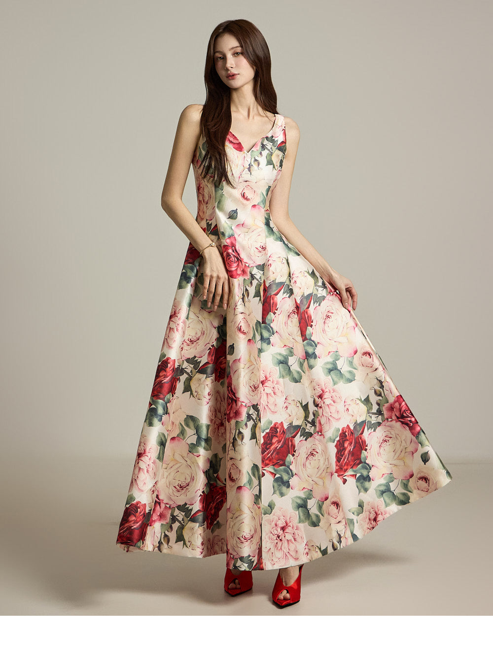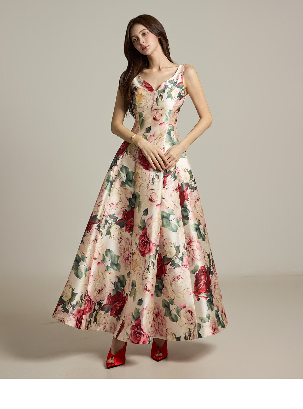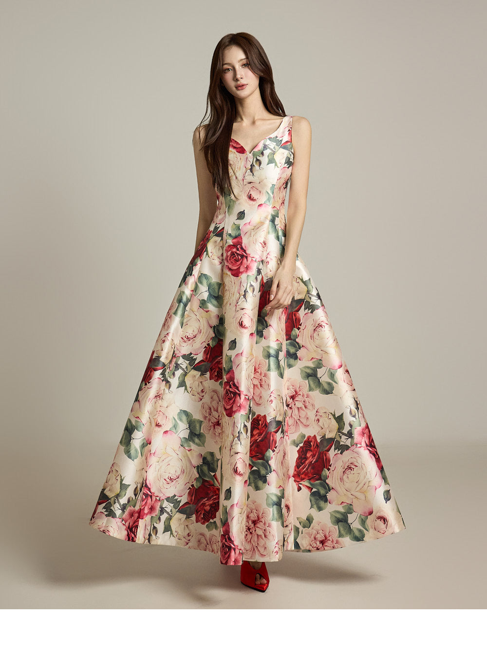 The floral pattern makes it perfect for evening or formal dress looks.