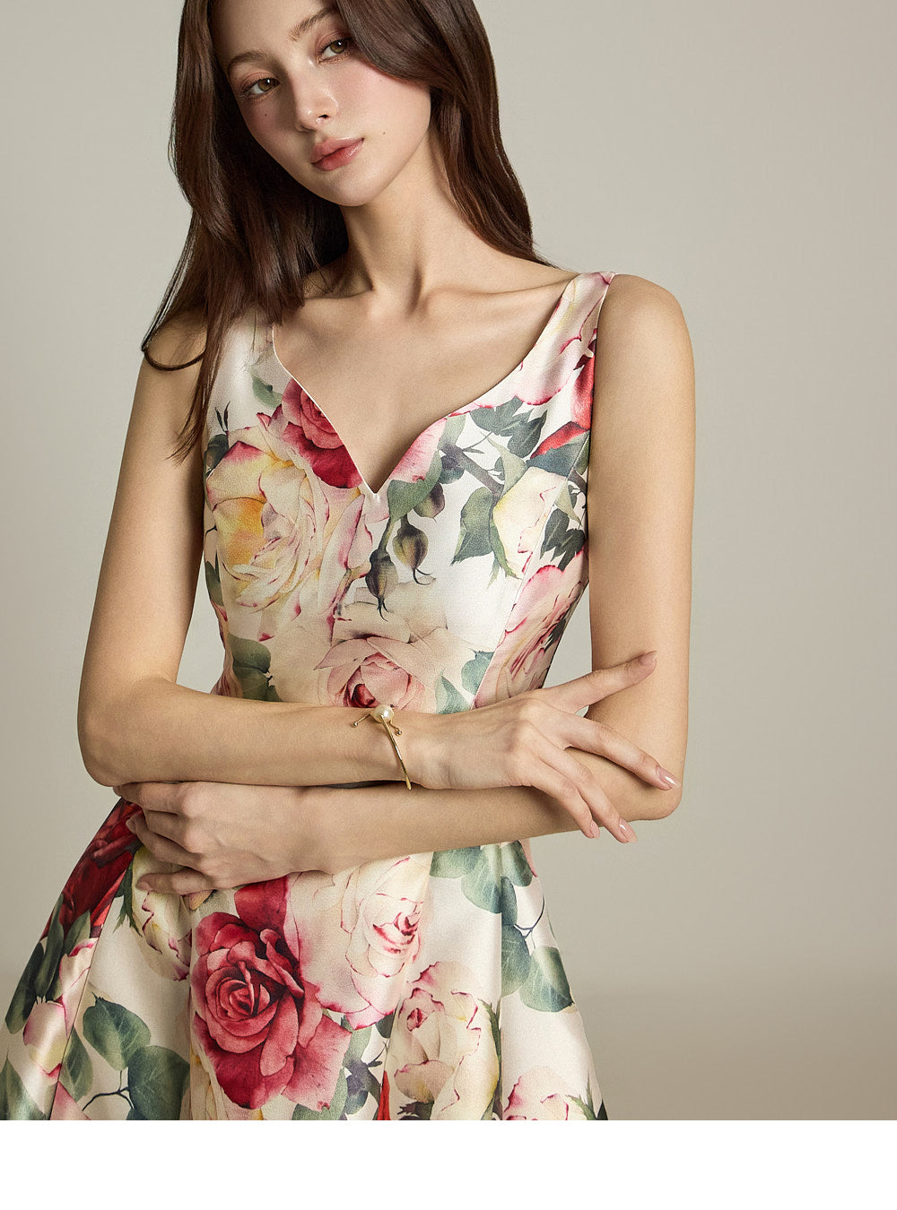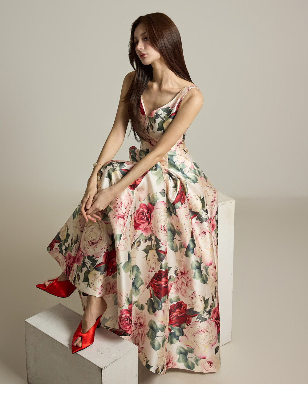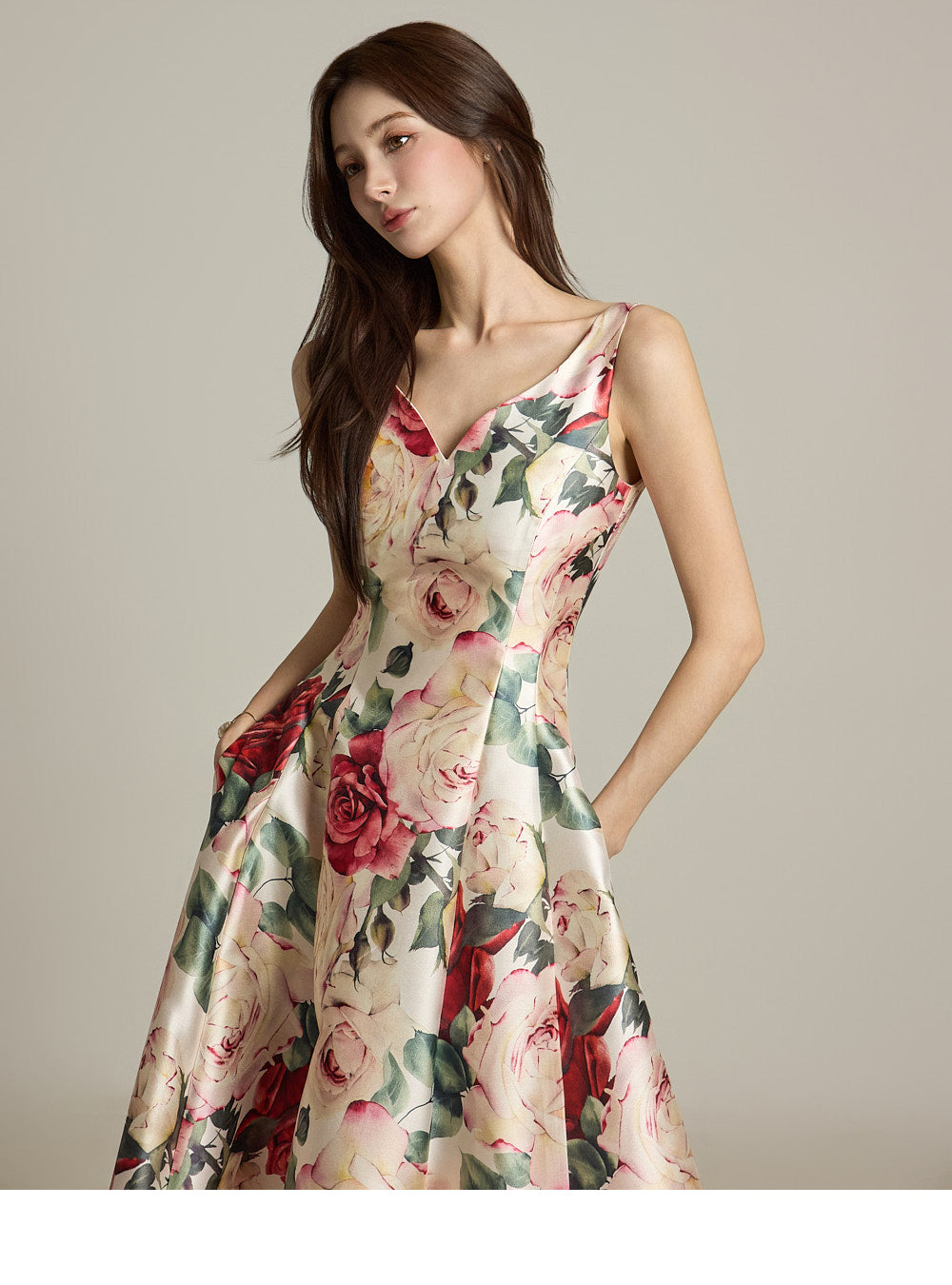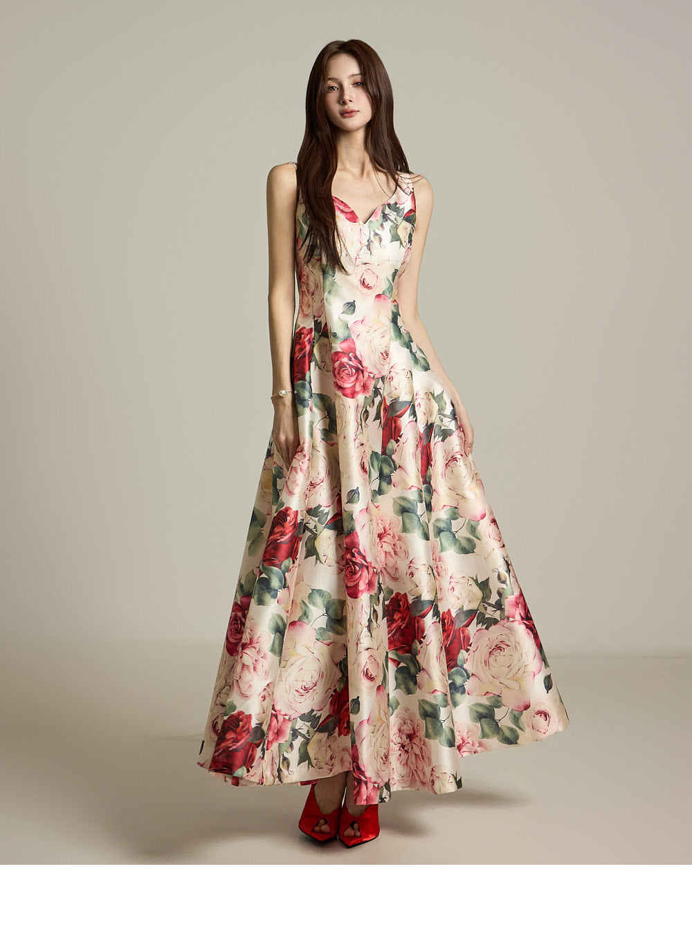 The floral pattern makes it perfect for evening or formal dress looks.