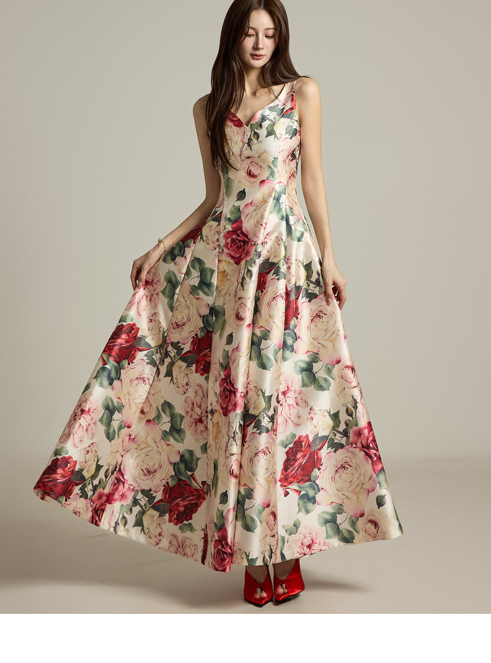 The A-line silhouette and long length create a graceful