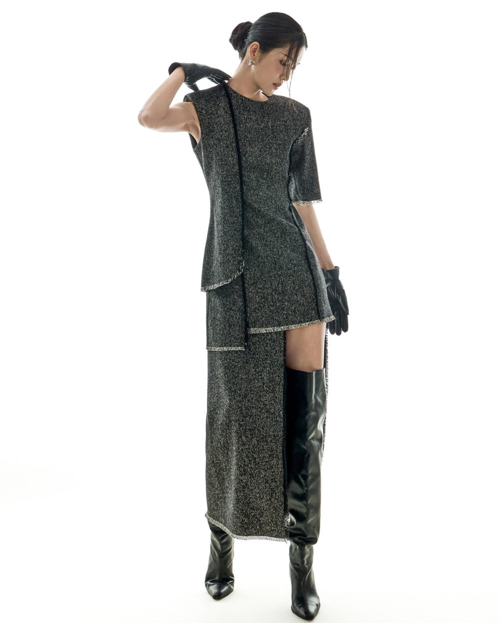 Model is 173cm tall and is wearing size S in BLACK.