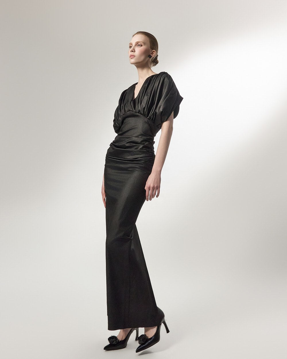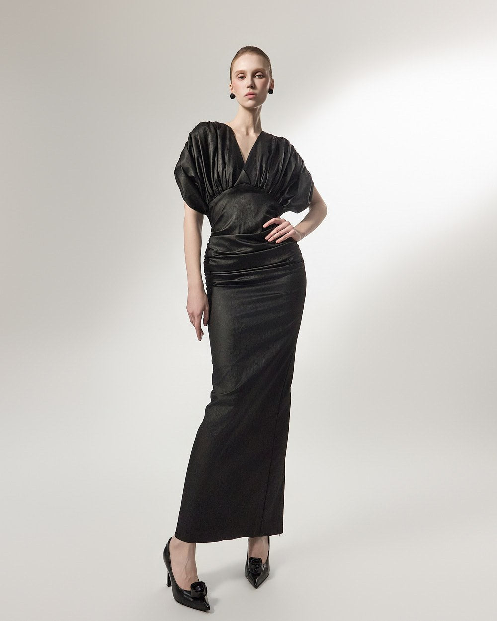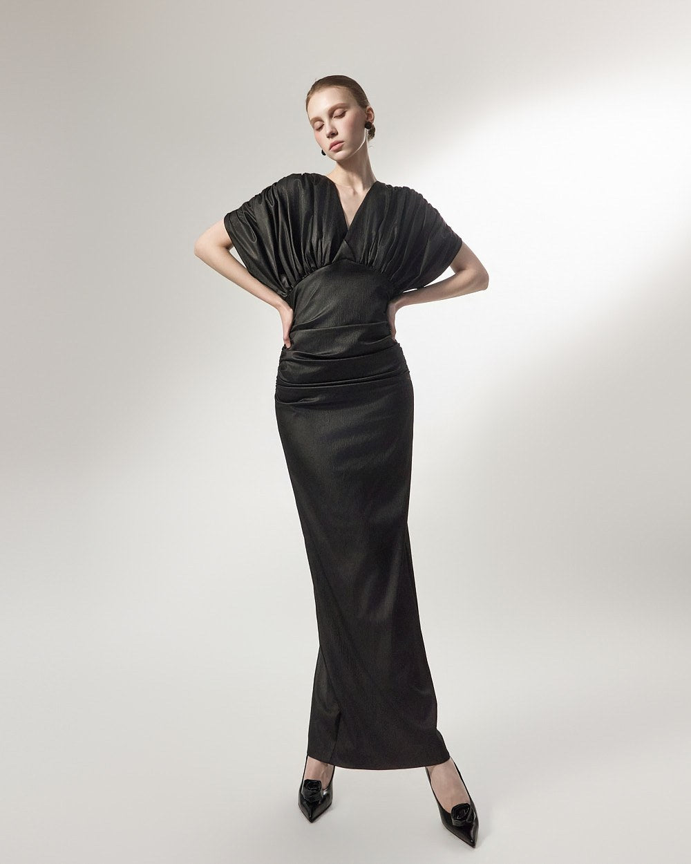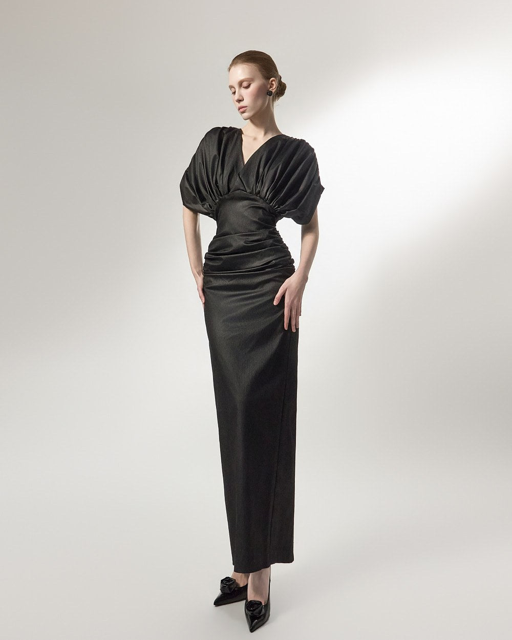 The added shirring detail at the waist gently wraps around the body,