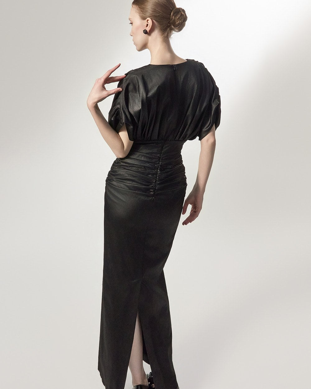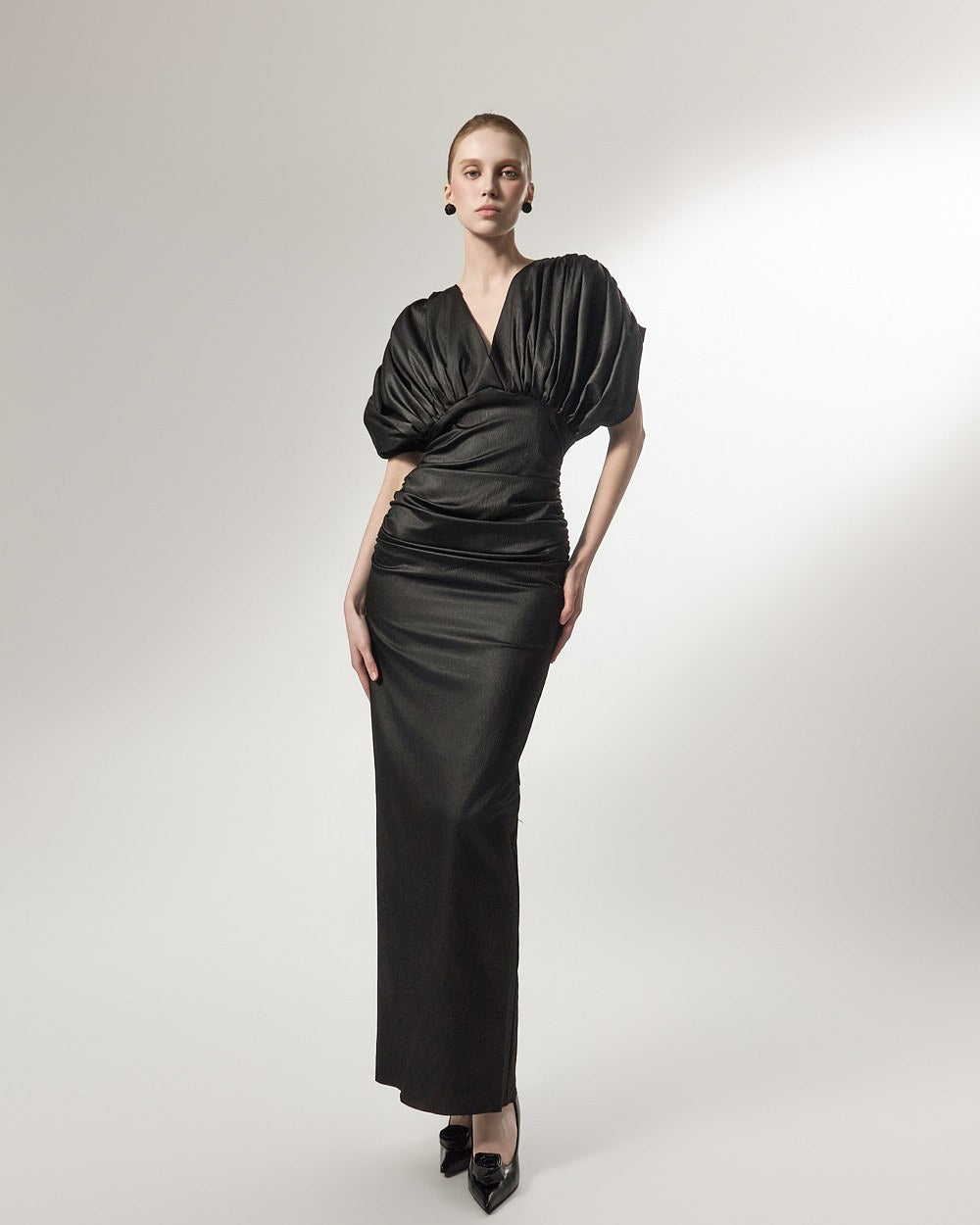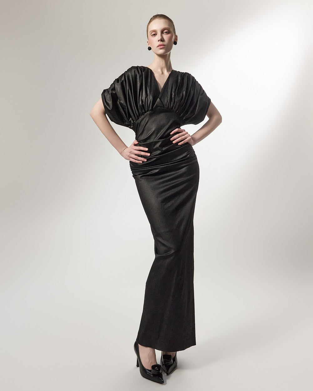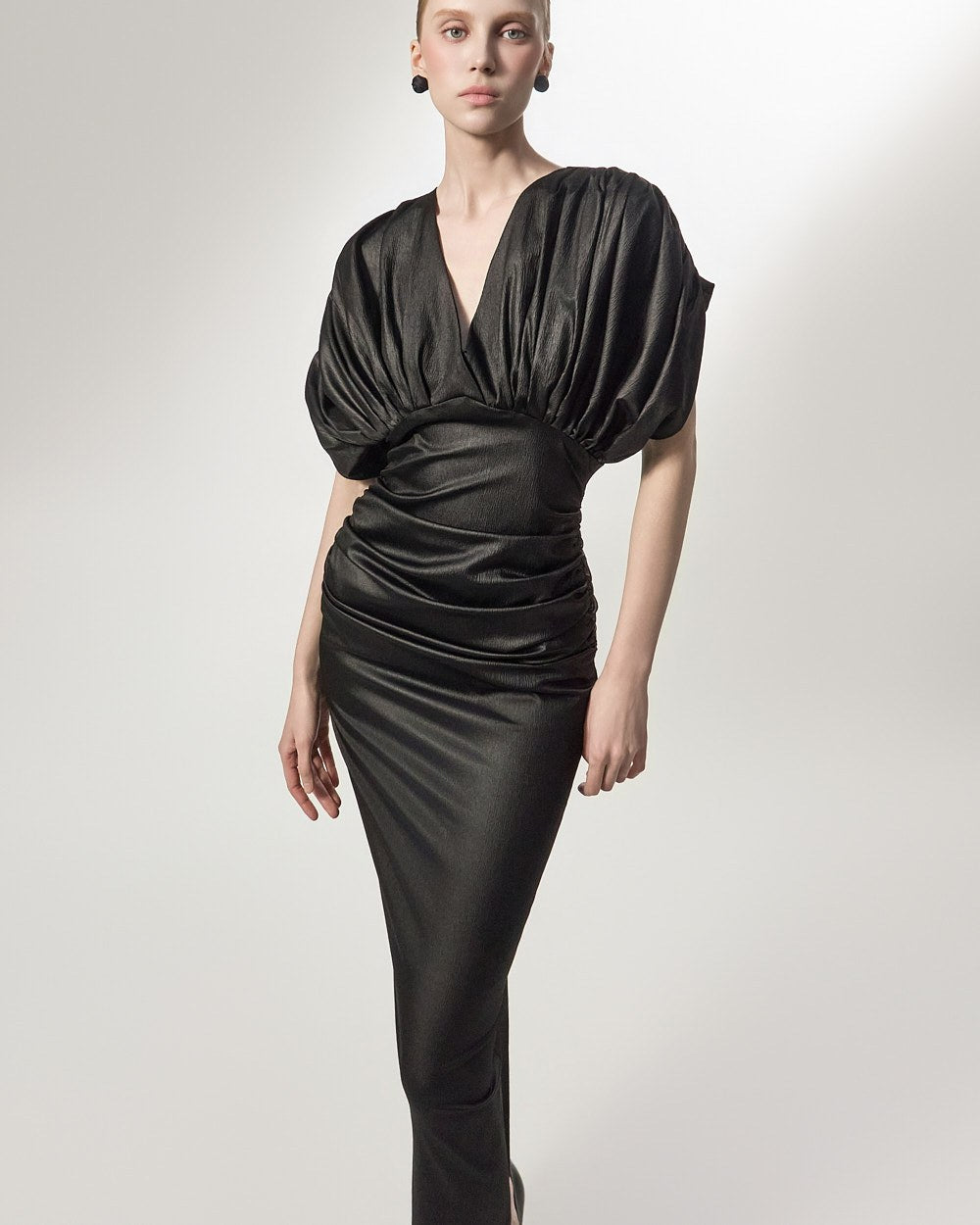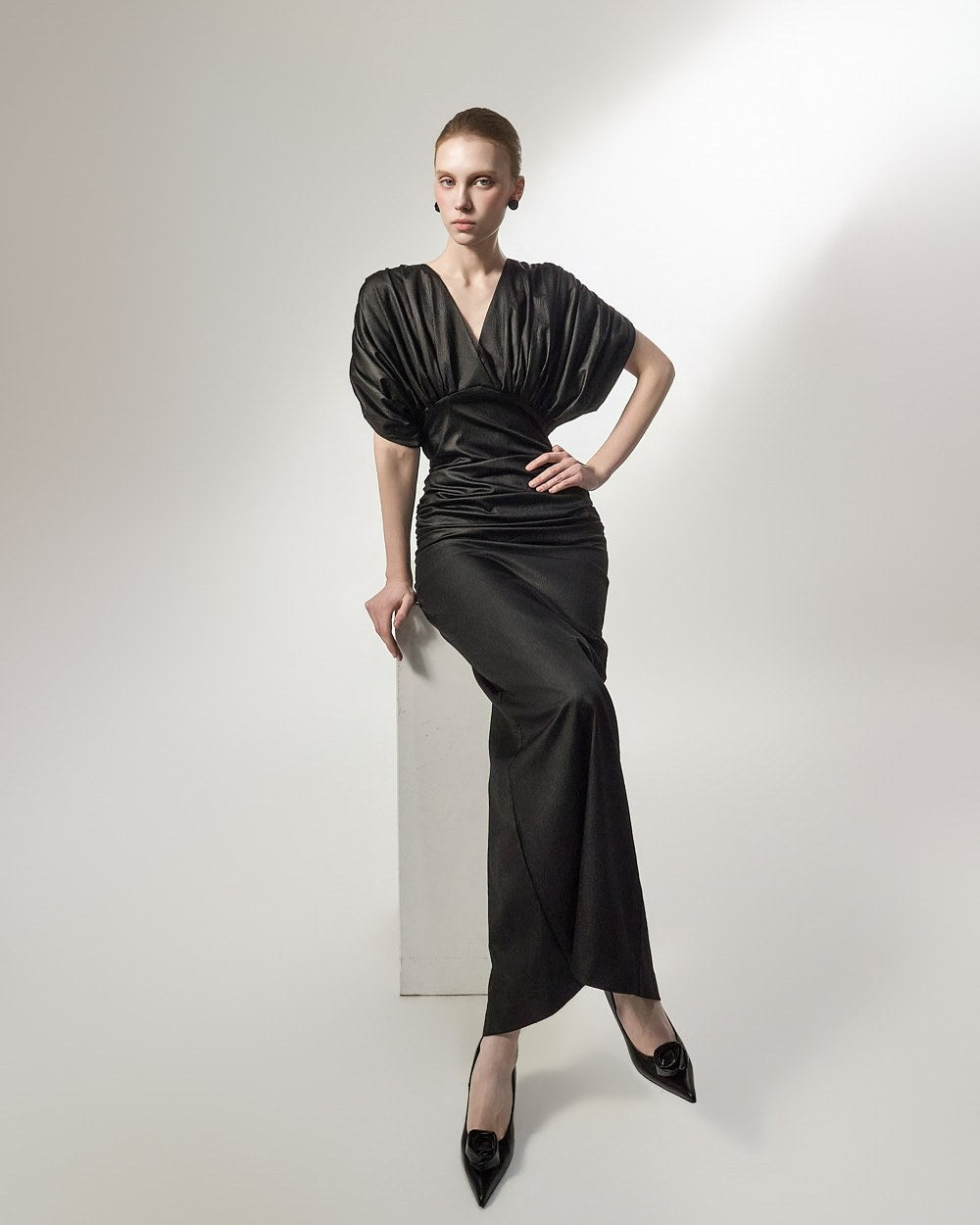 The added shirring detail at the waist gently wraps around the body,