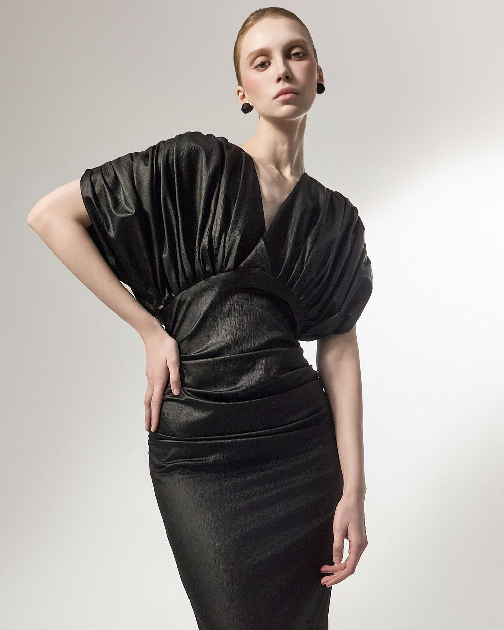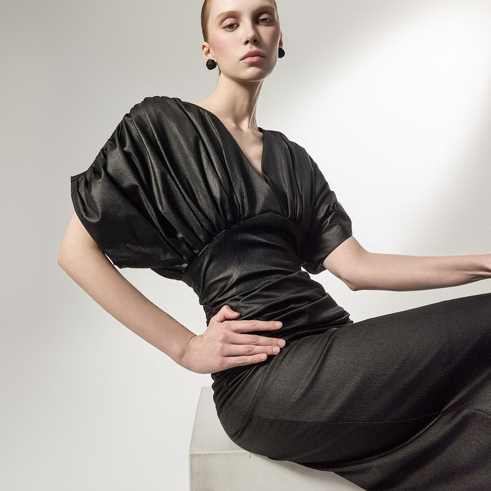 D9603 Drape V-Neck Dress