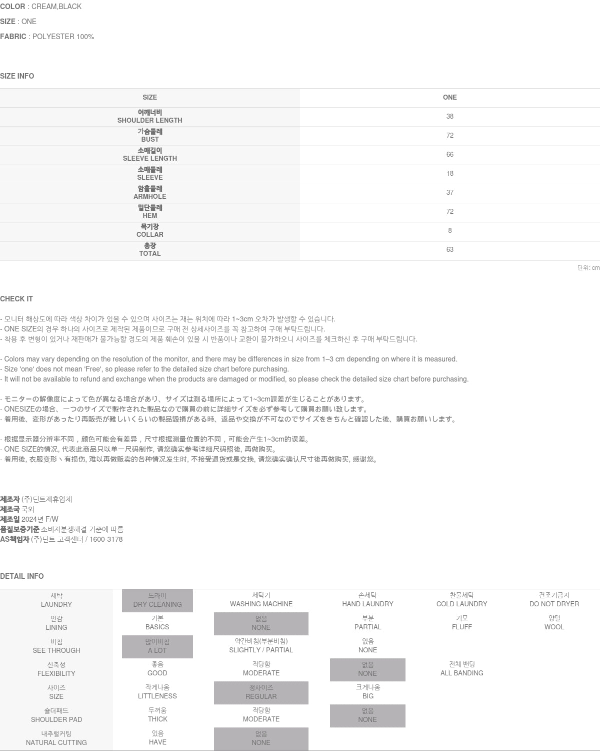 Clothing from DINT Co., Ltd. may become damaged or deformed if machine washed or tumble dried. We strongly recommend following the care instructions provided below.