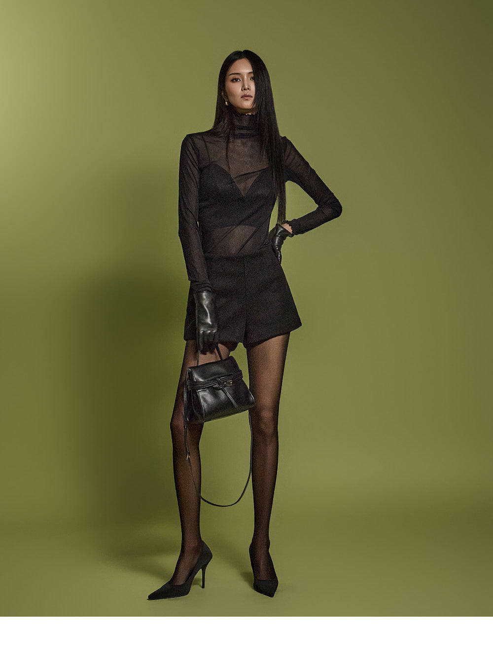 The model is 173CM tall and is wearing ONE size in the BLACK color.