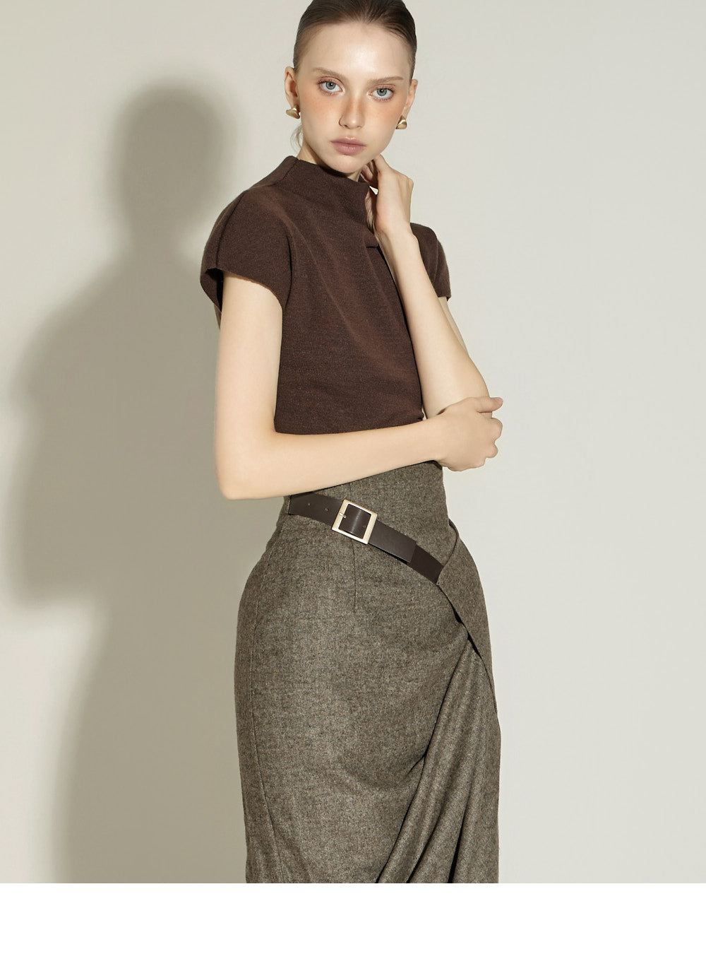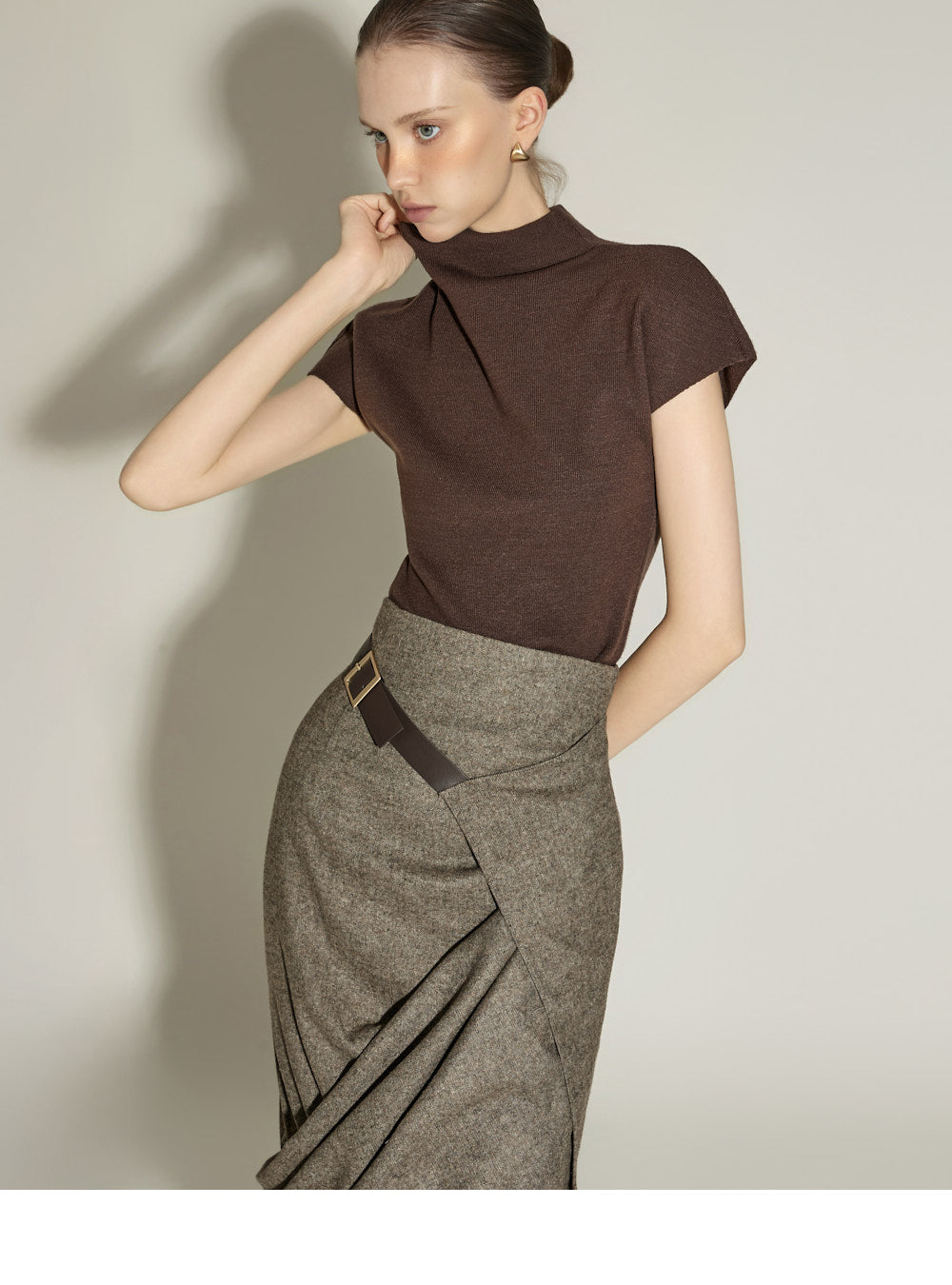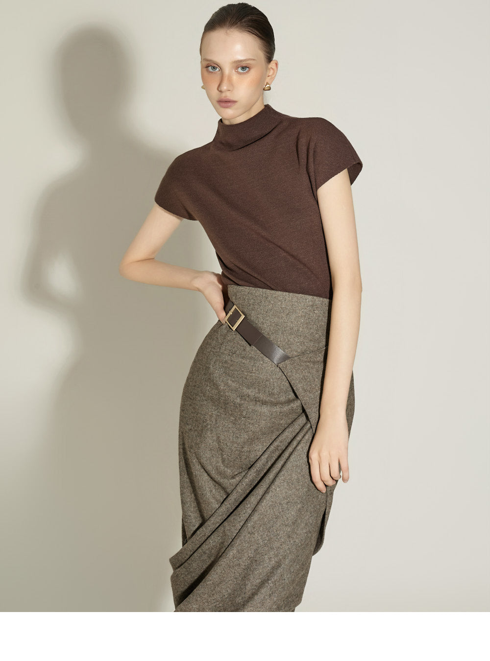 The 174cm model is wearing size ONE in BROWN.