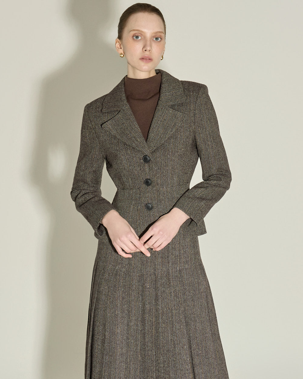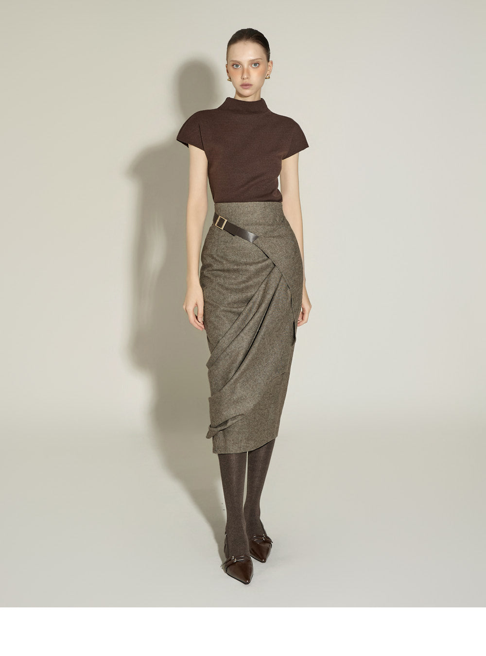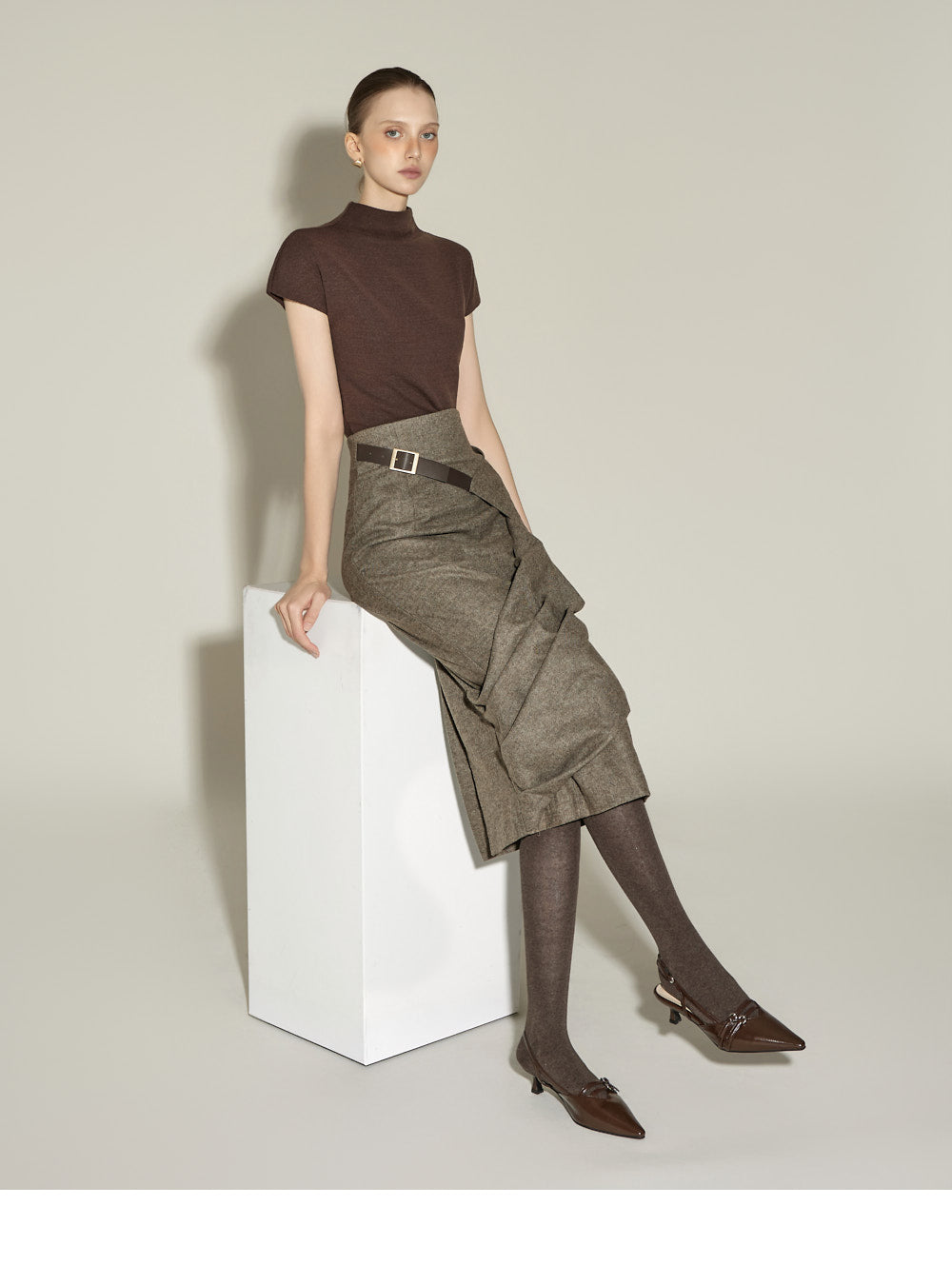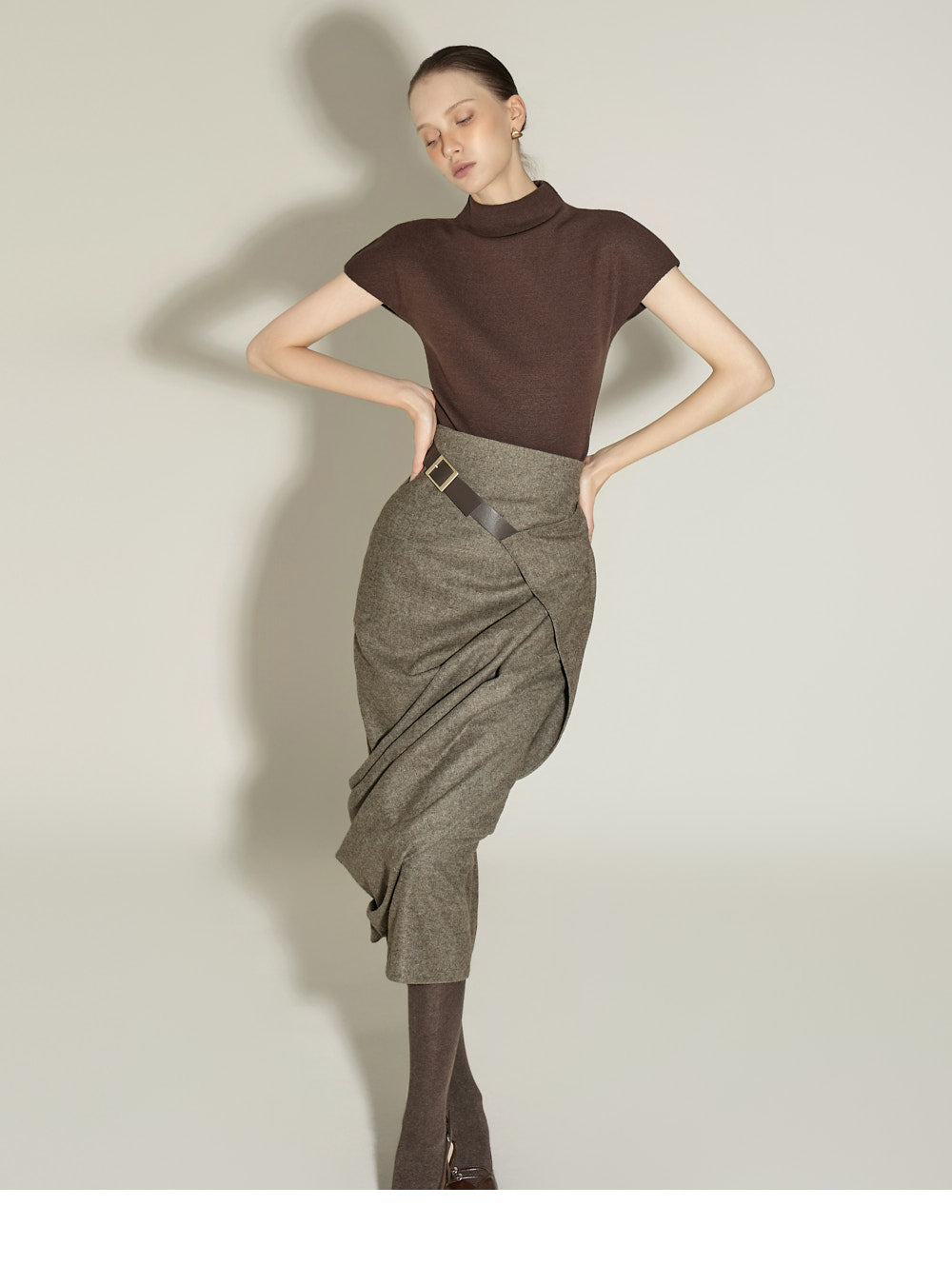 The 174cm model is wearing size ONE in BROWN.