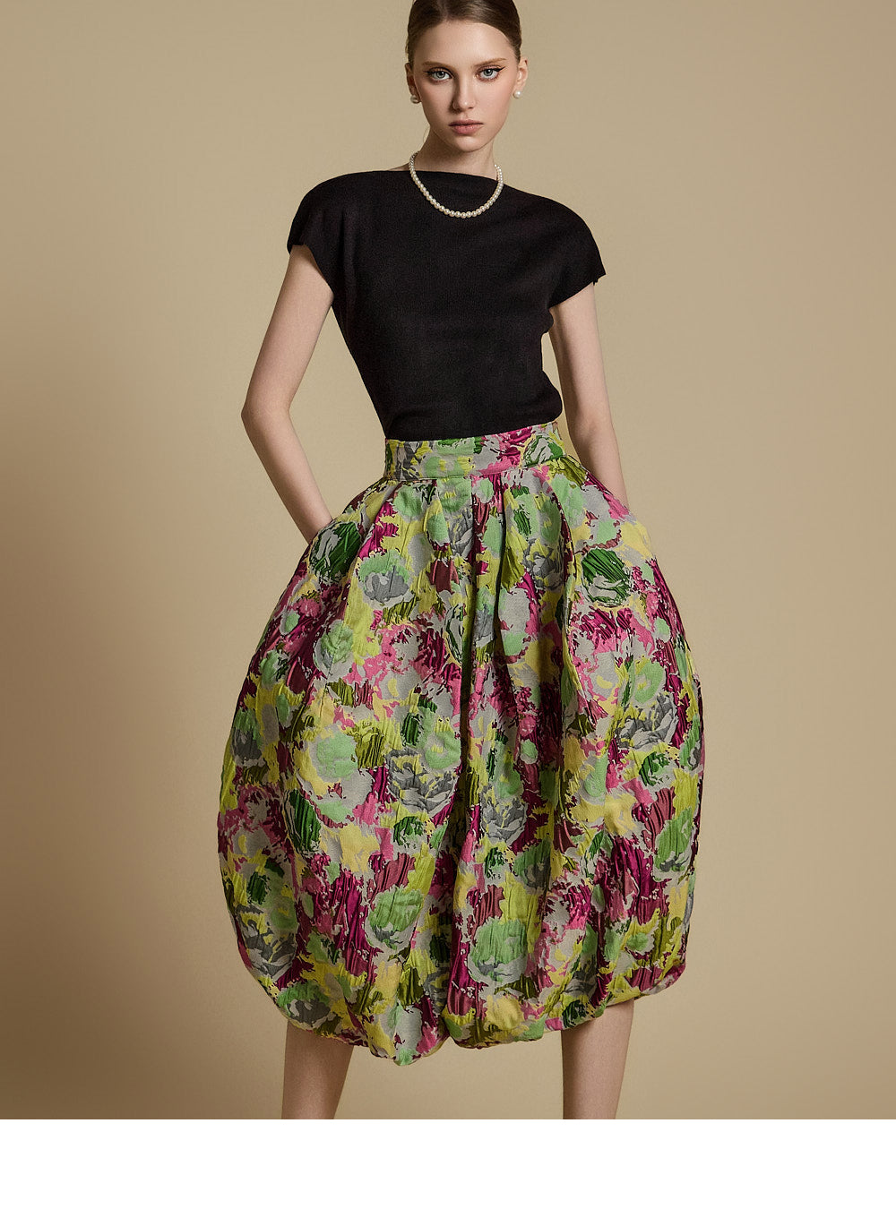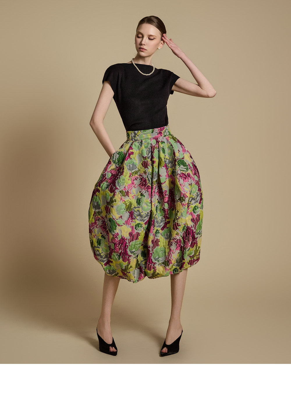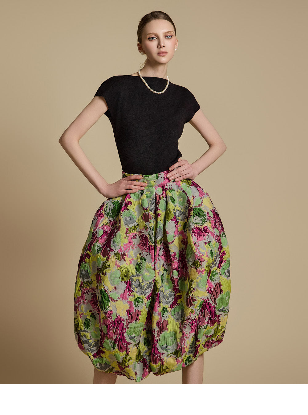 The model is 174cm tall and wearing ONE size in BLACK.