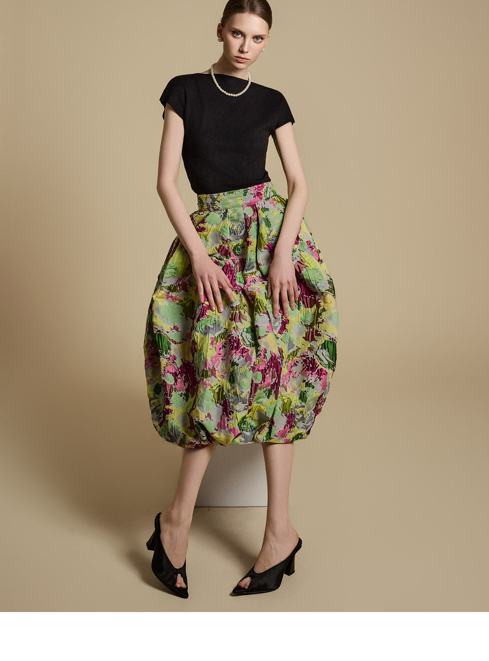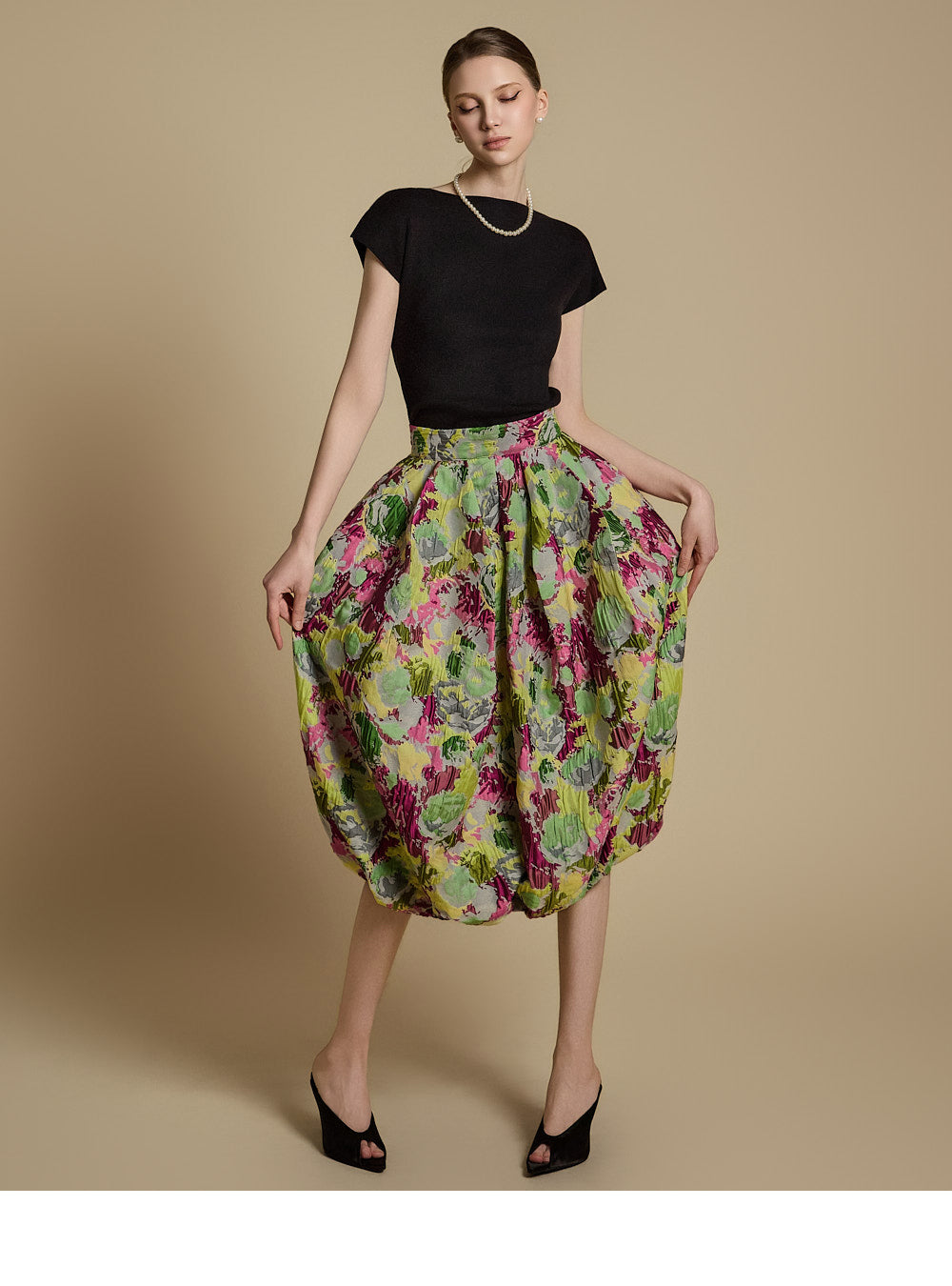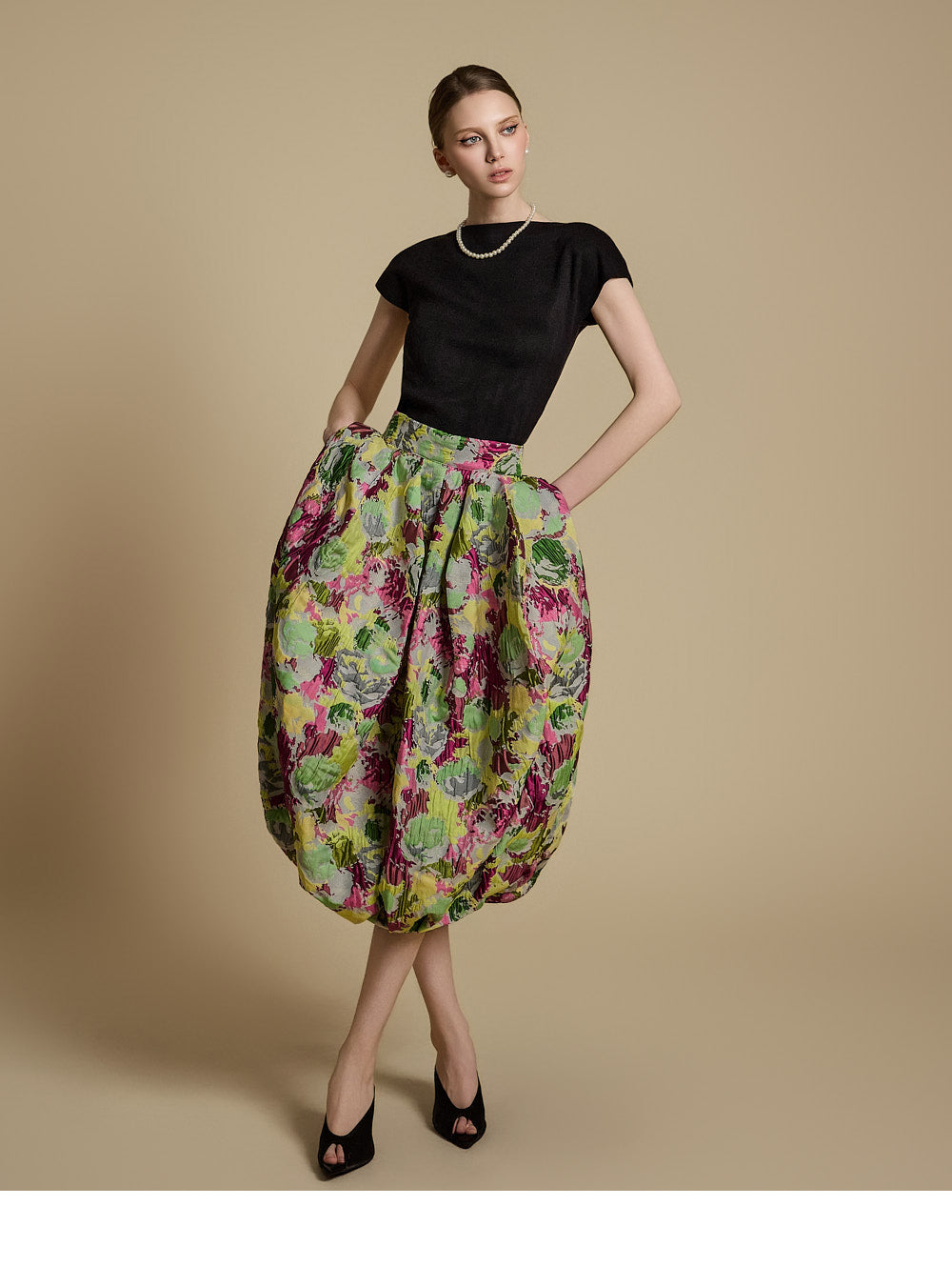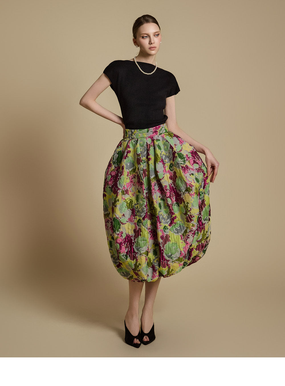 The model is 174cm tall and wearing ONE size in BLACK.