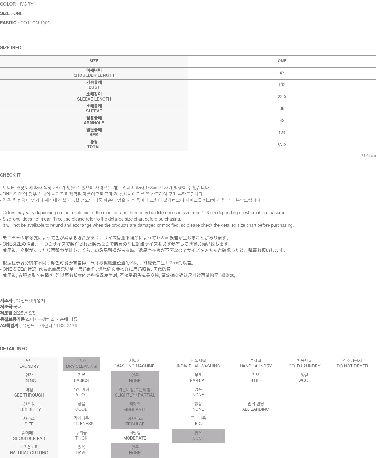 Clothing from DINT Co., Ltd. may become damaged or deformed if machine washed or tumble dried. We strongly recommend following the care instructions provided below.