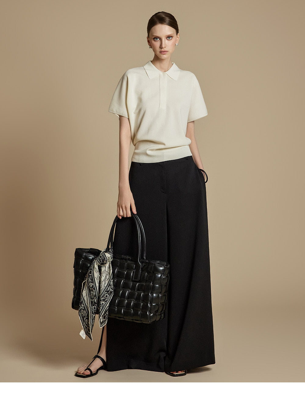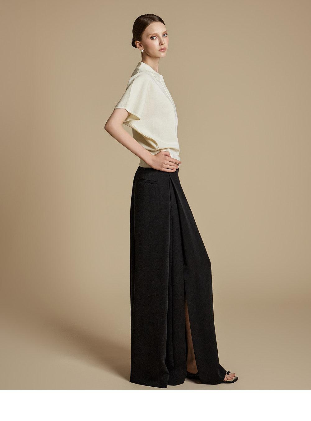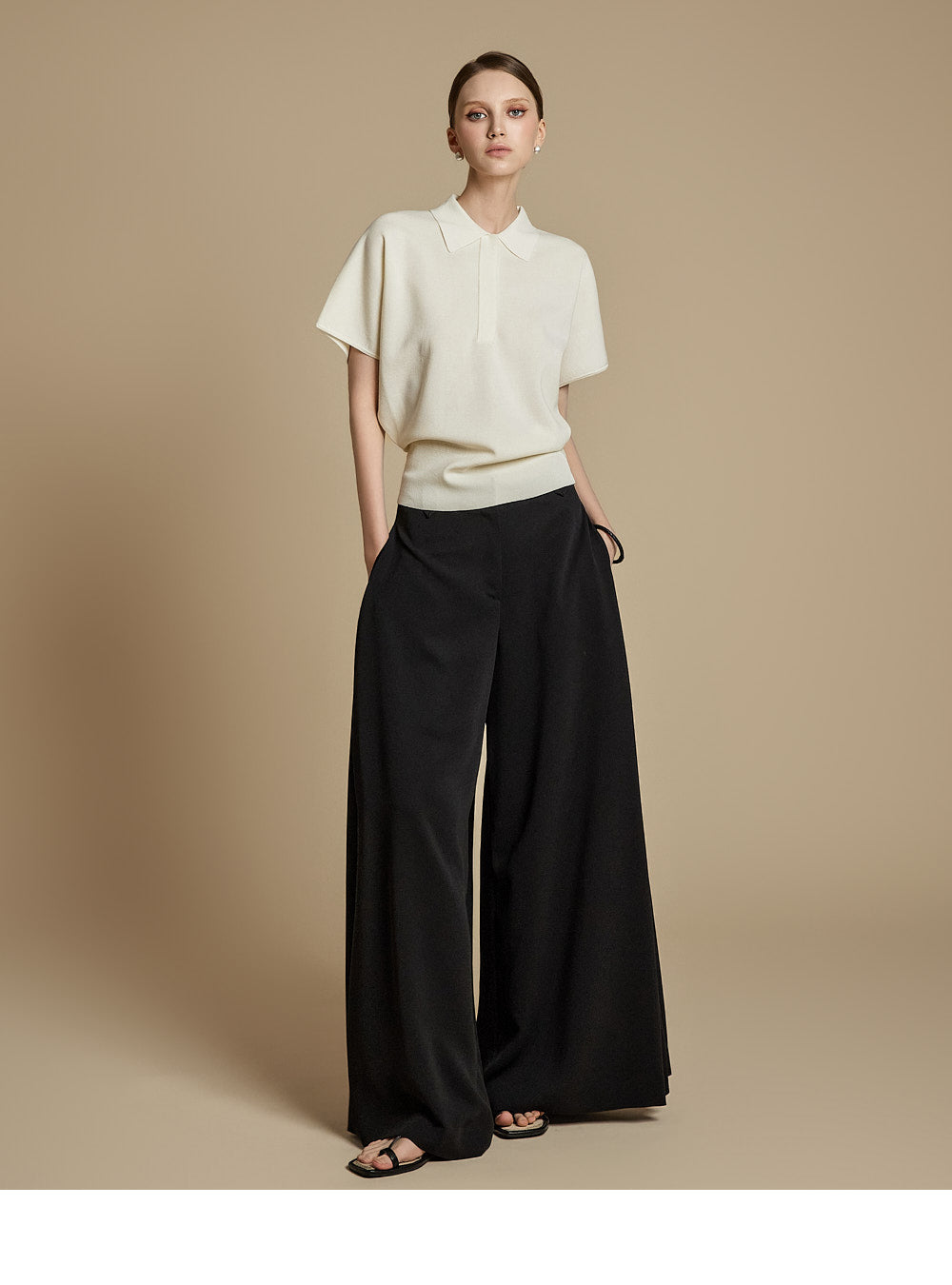 The model is 174cm tall and wears ONE size in IVORY.