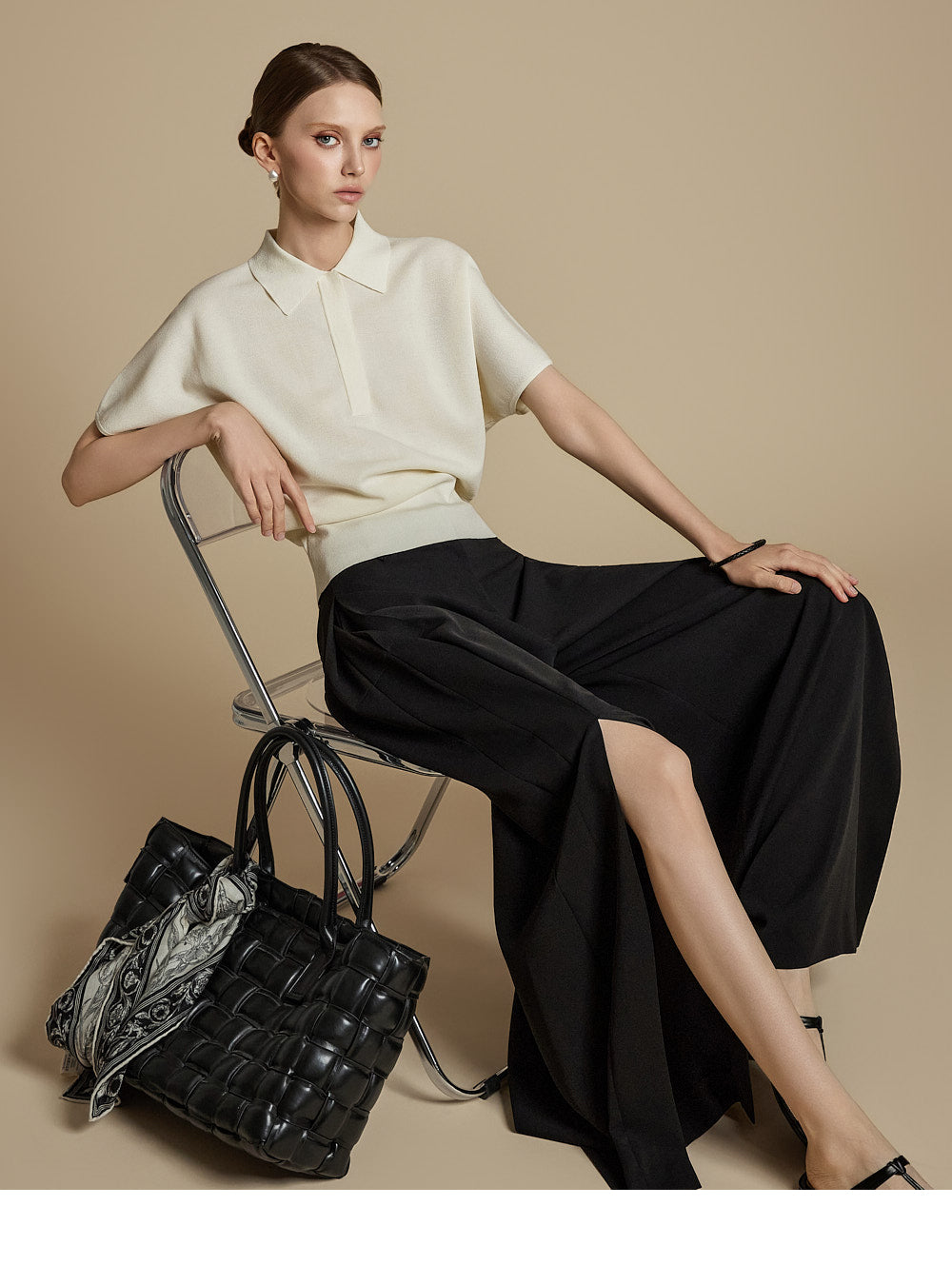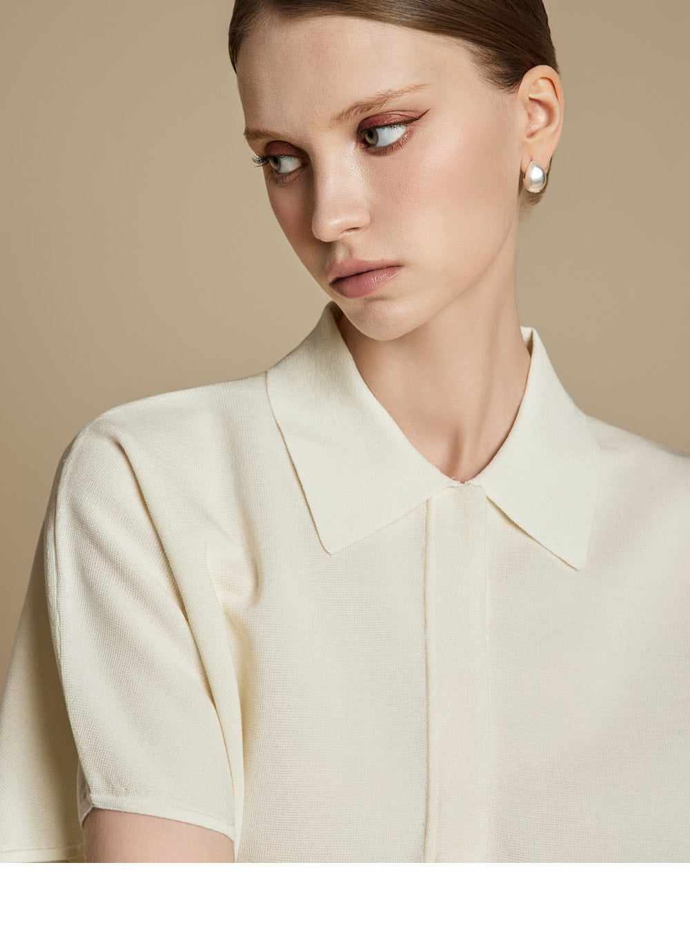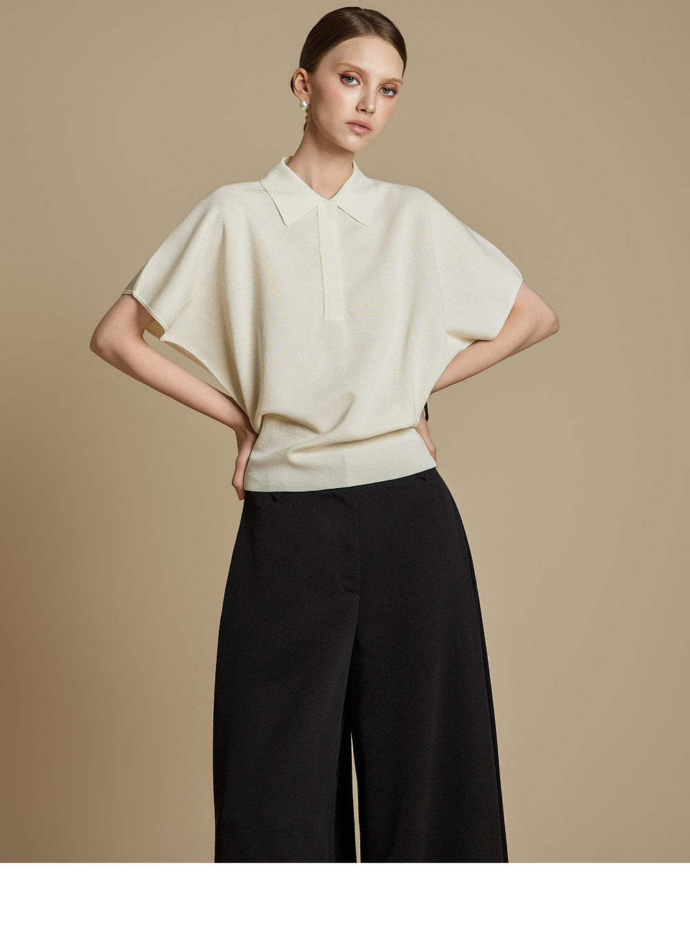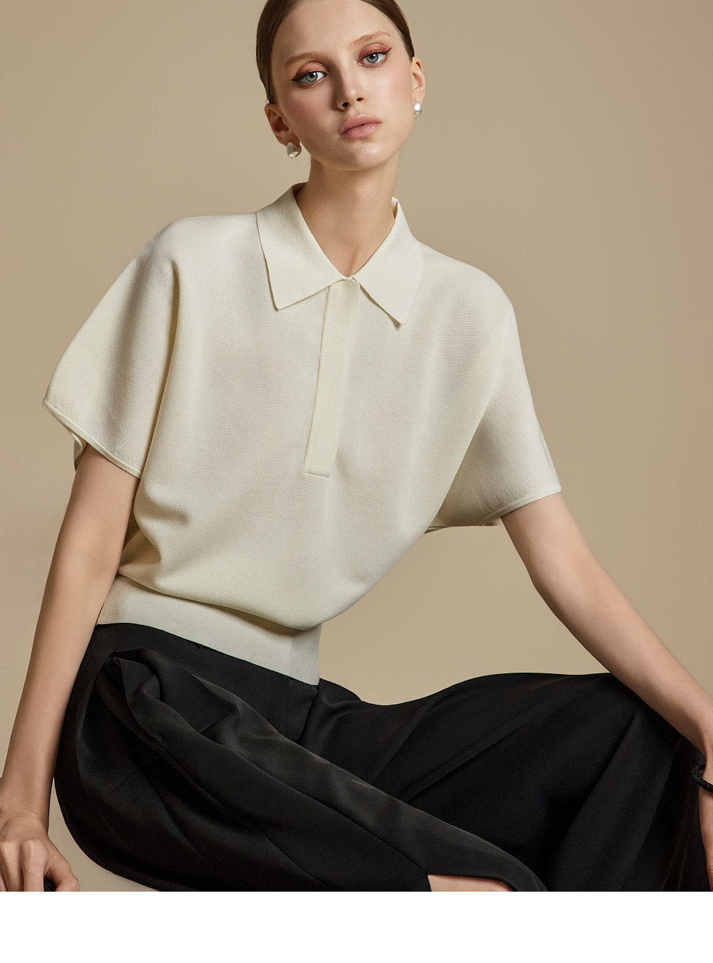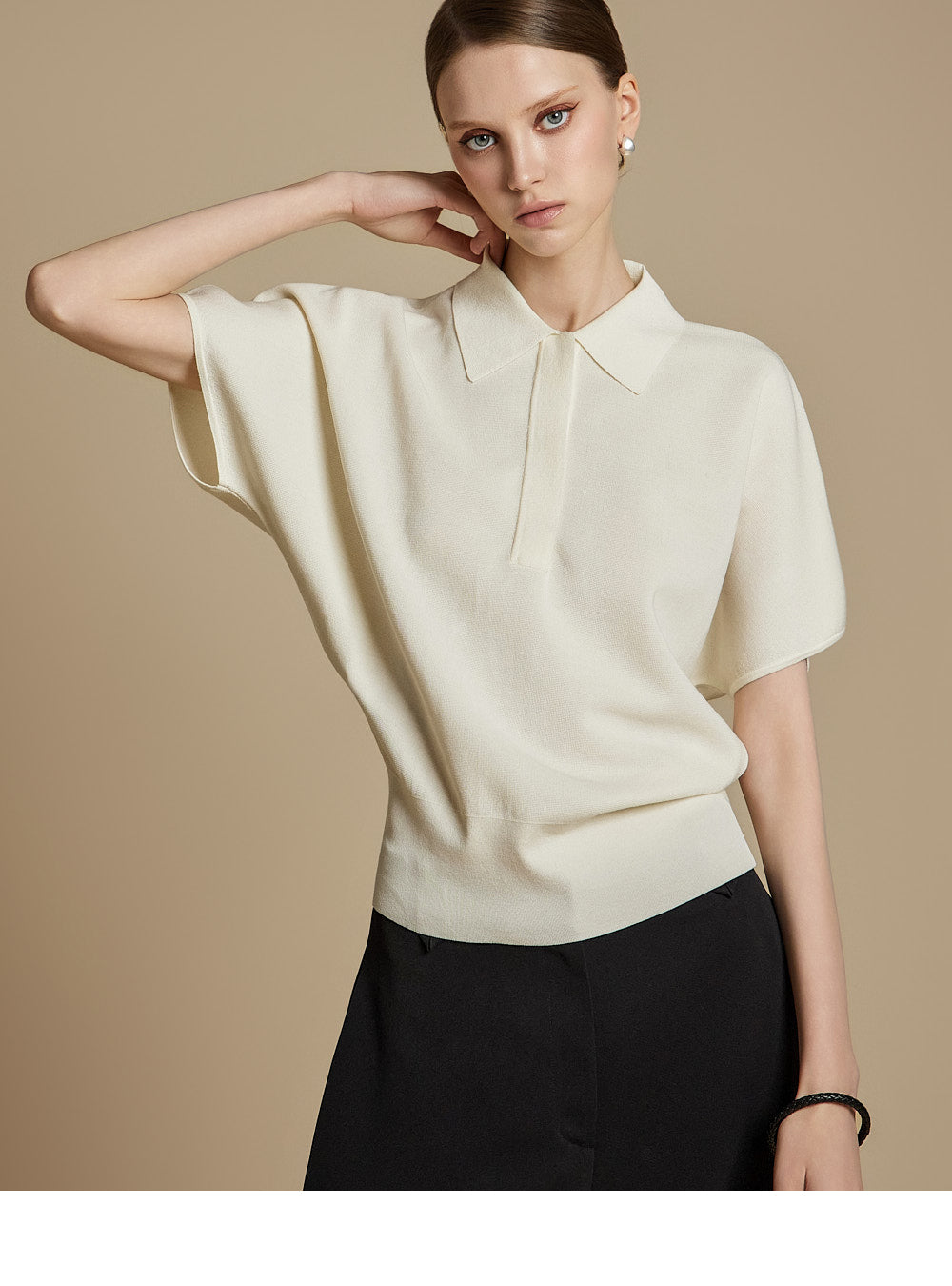 This is a casual mood collared knit top.
