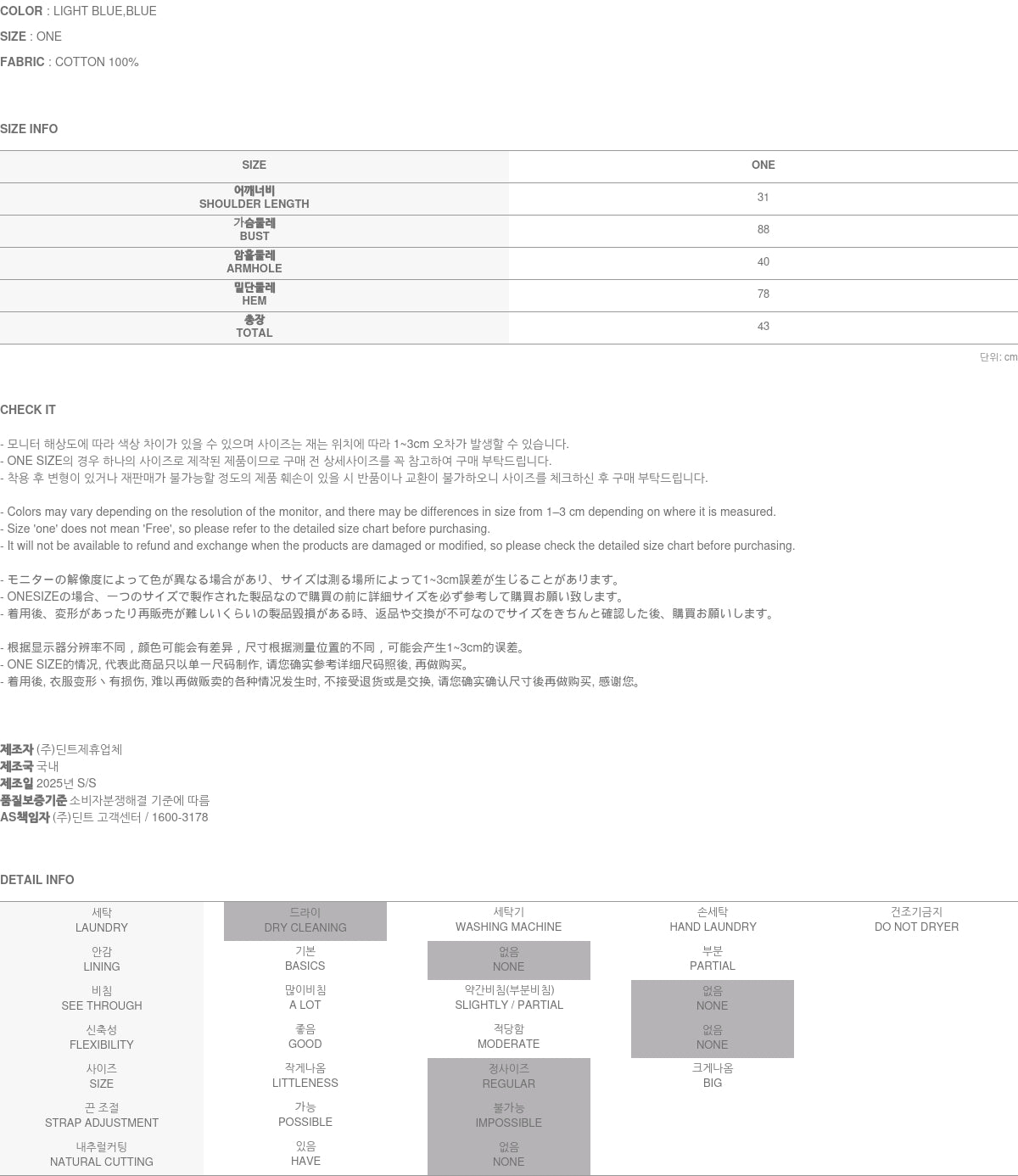 The model is 171CM tall and is wearing ONE size in Light Blue.