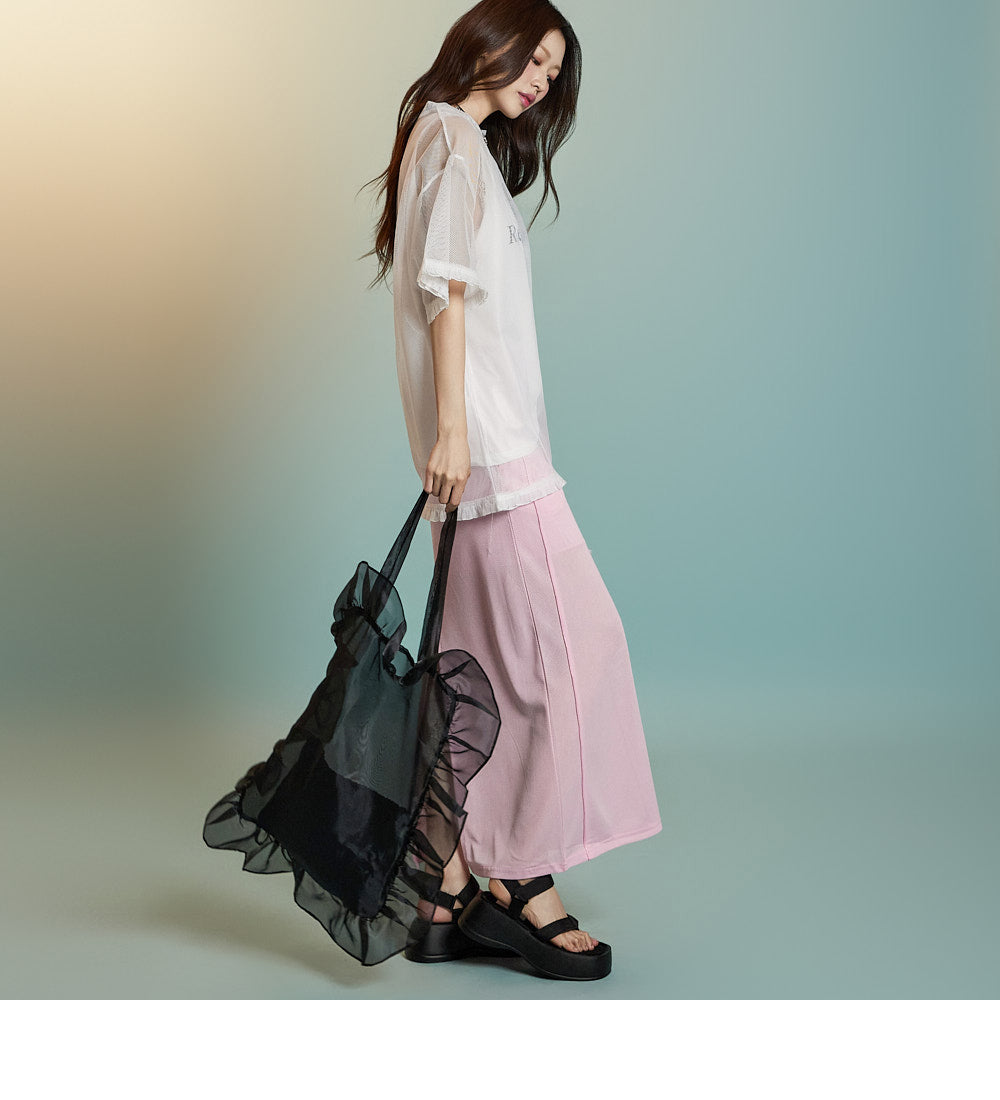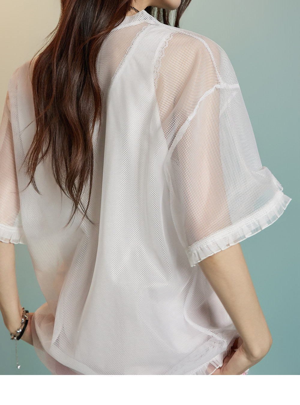 Featuring a relaxed fit with ruffled trim at the cuffs and hem,