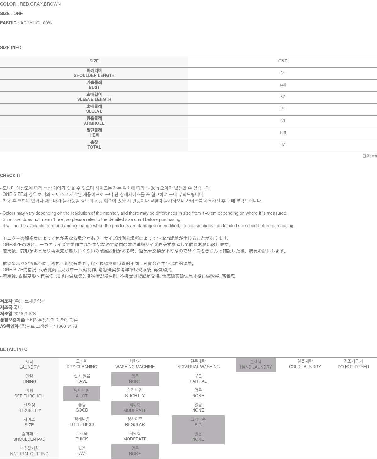 Clothing from DINT Co., Ltd. may become damaged or deformed if machine washed or tumble dried. We strongly recommend following the care instructions provided below.