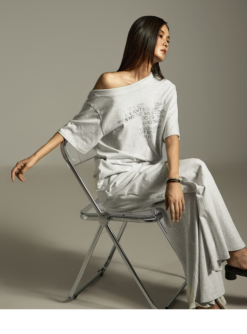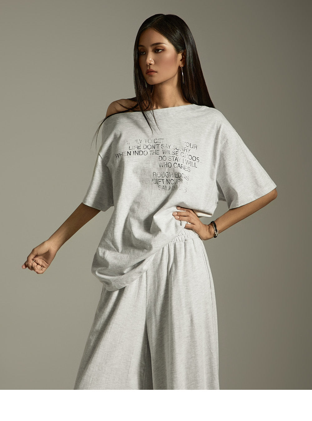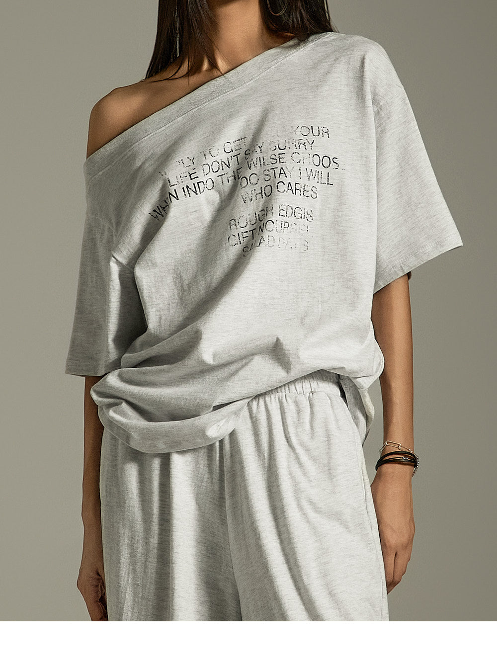 This is a casual and effortlessly stylish asymmetric off-shoulder top.