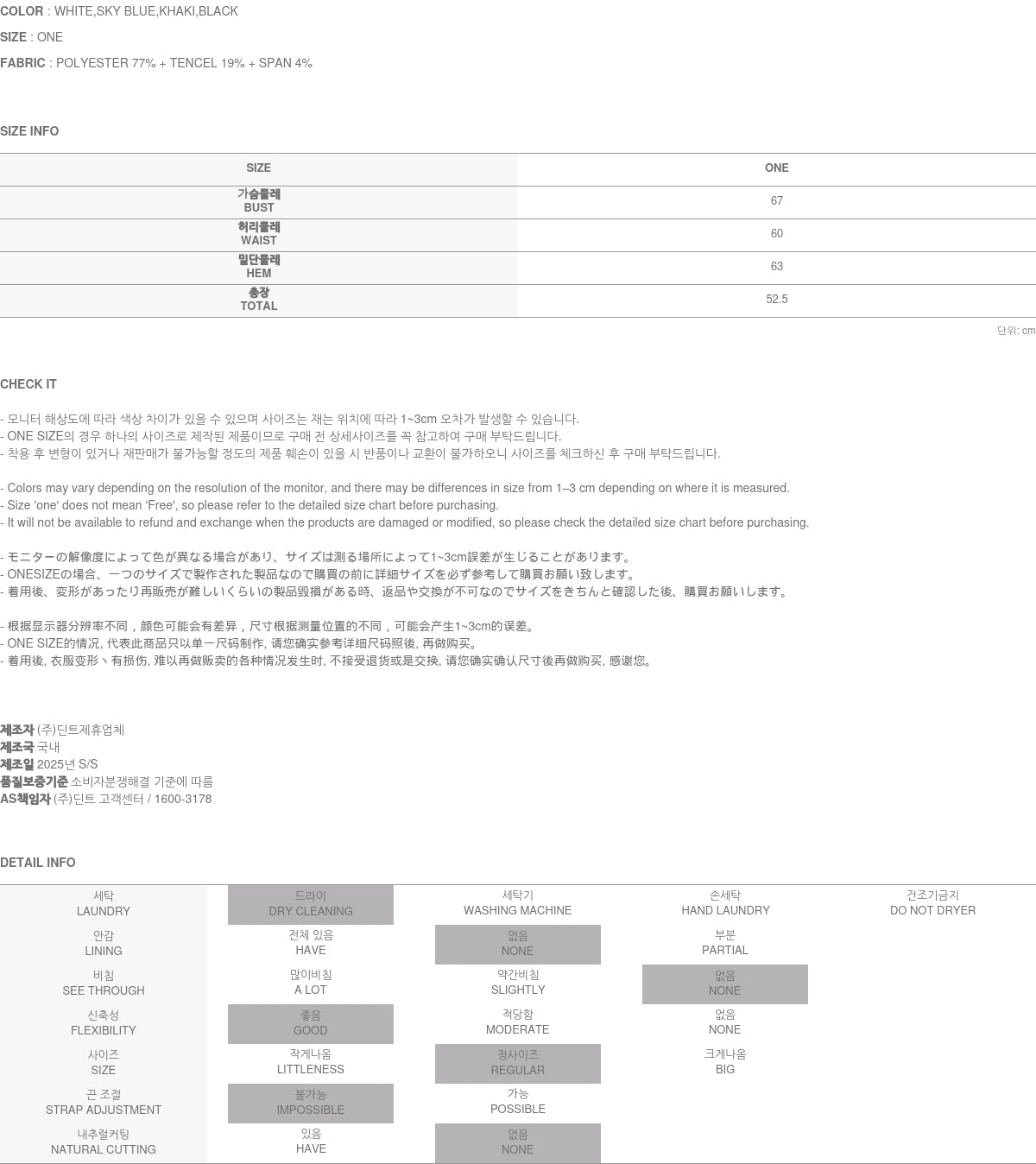 TENCEL™, and spandex, it comes in ONE size with a soft touch and excellent elasticity, ensuring all-day comfort without restriction.
