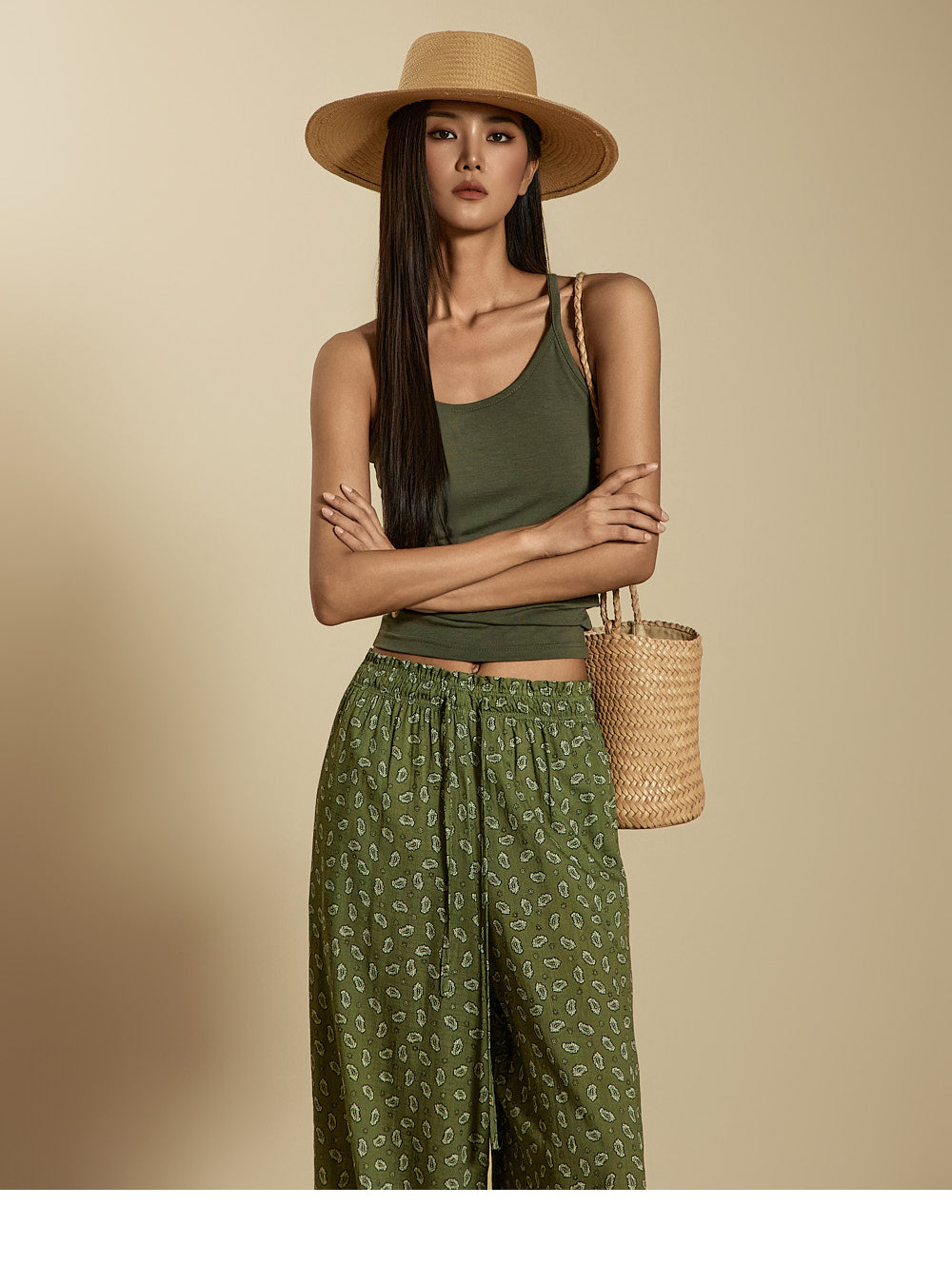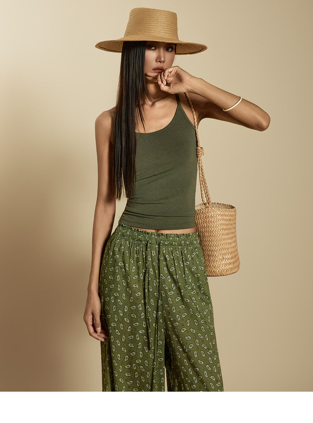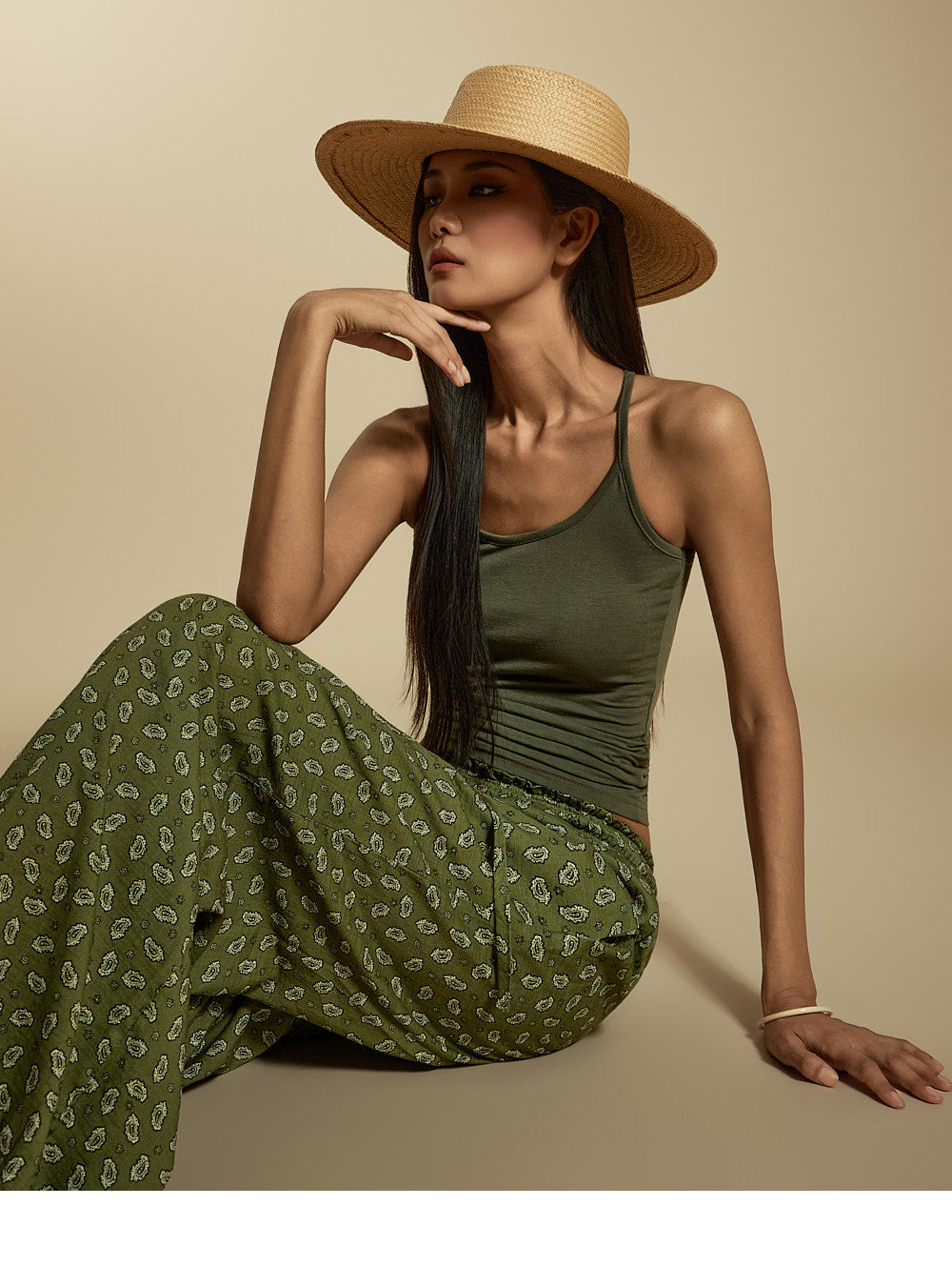 The slim fit and cropped length naturally highlight the body’s silhouette.
