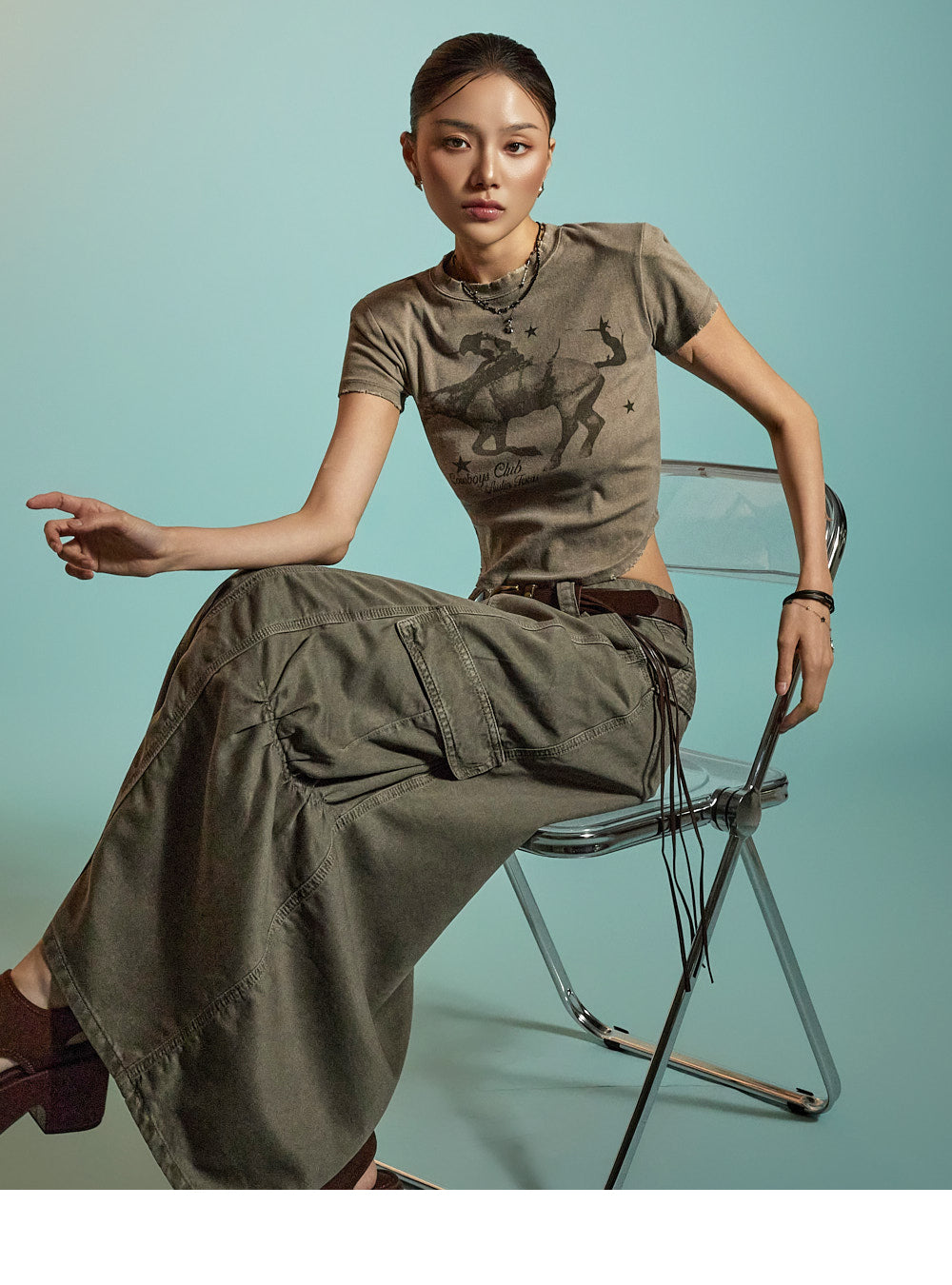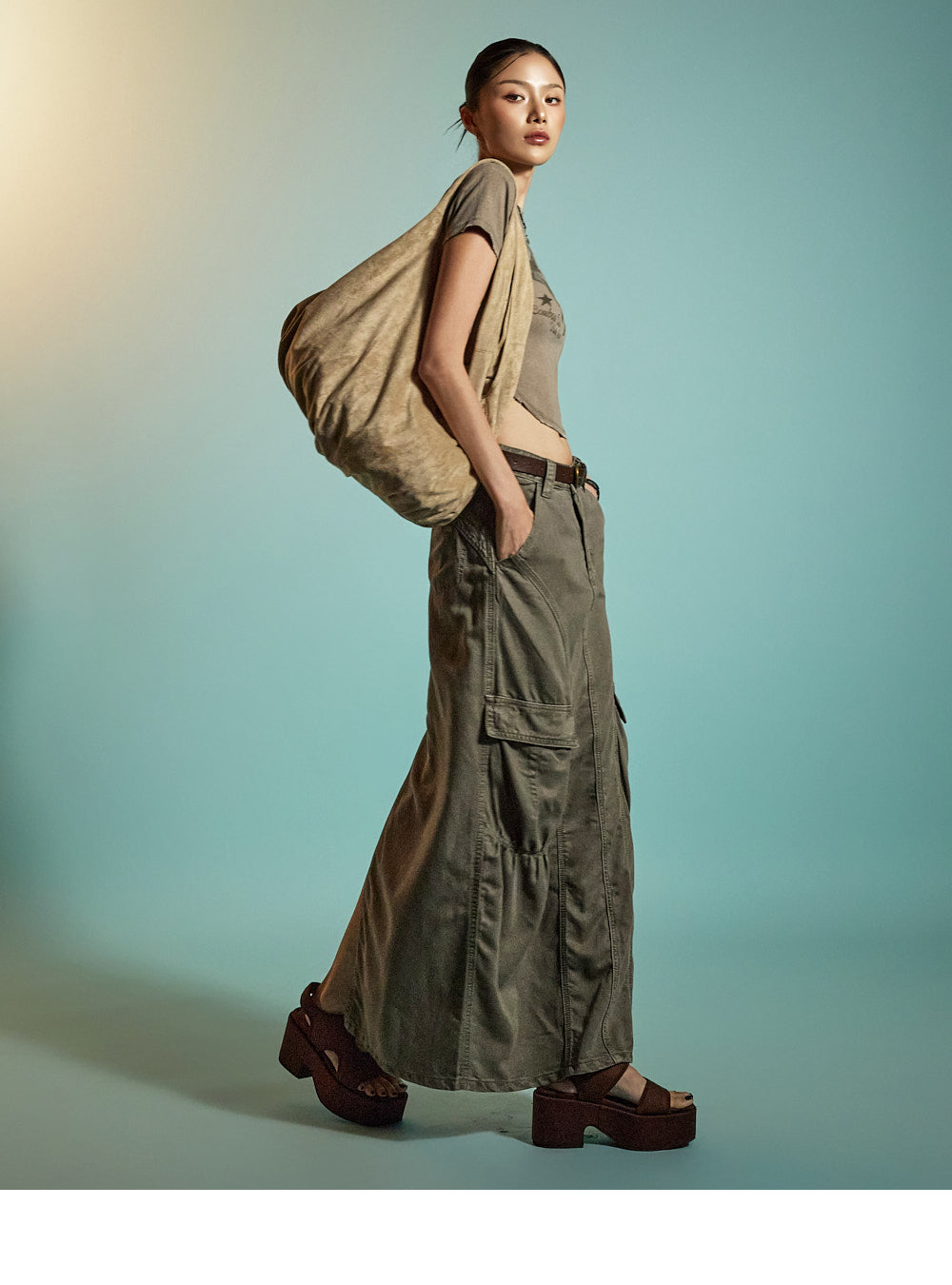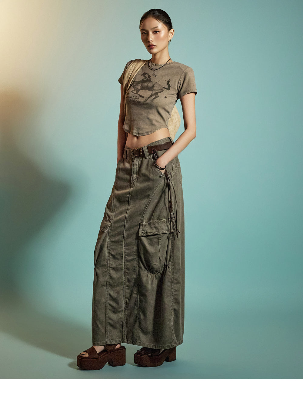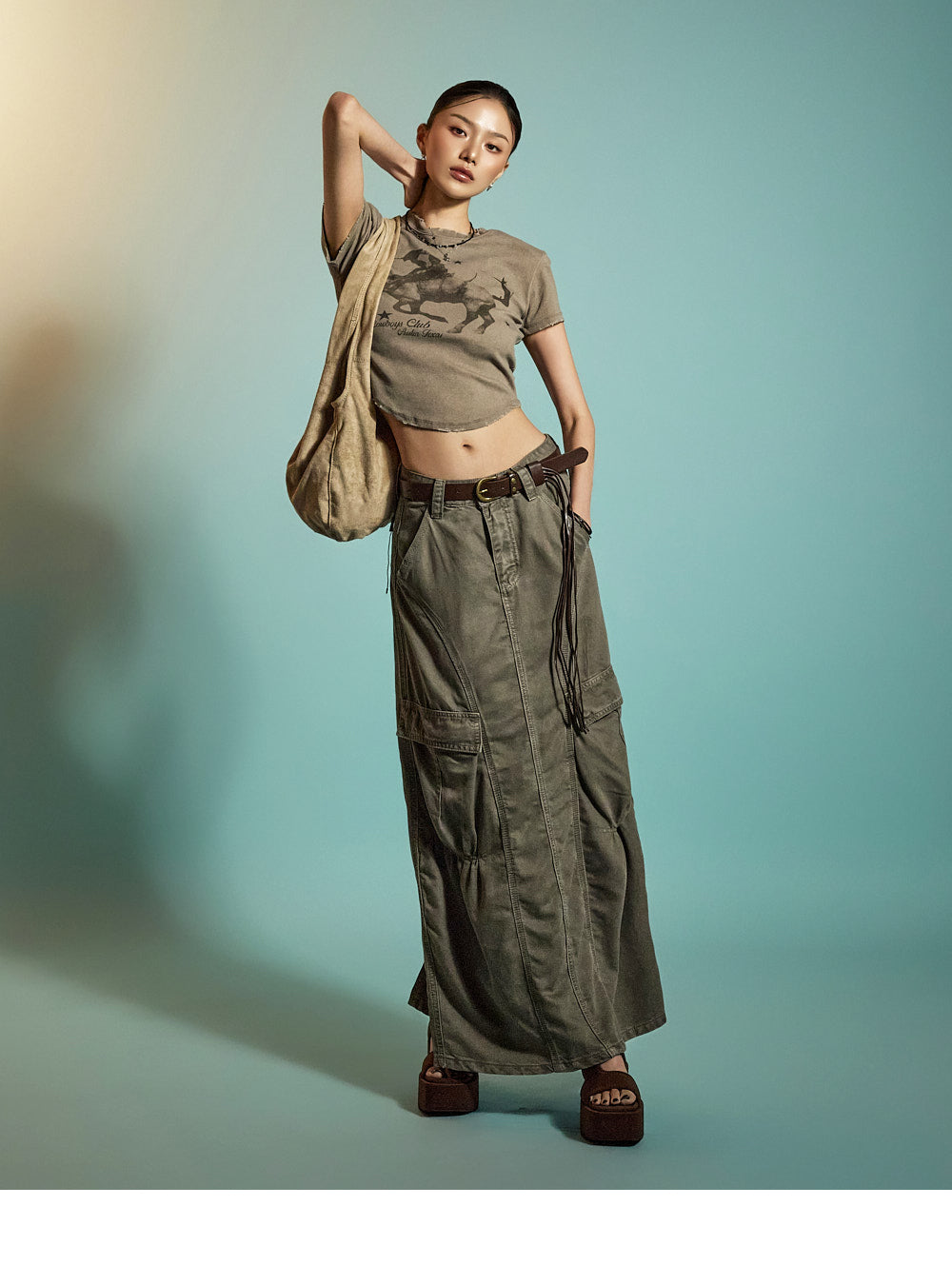 Model is 171CM tall, wearing ONE size in BROWN.
